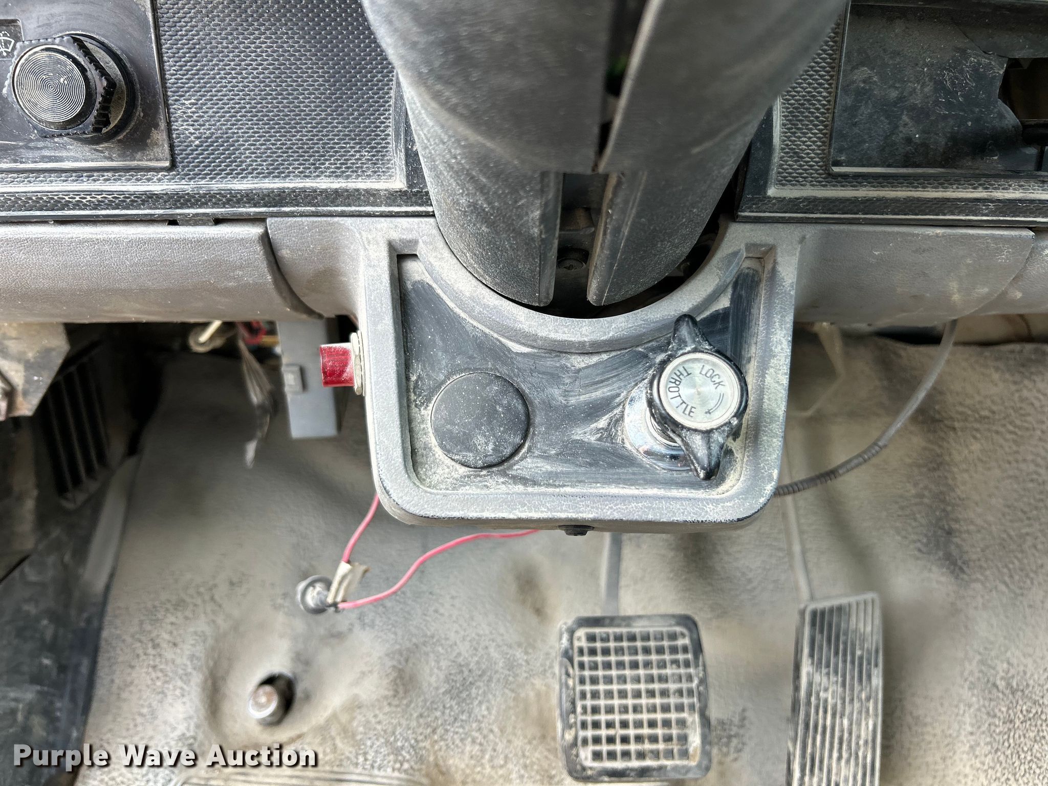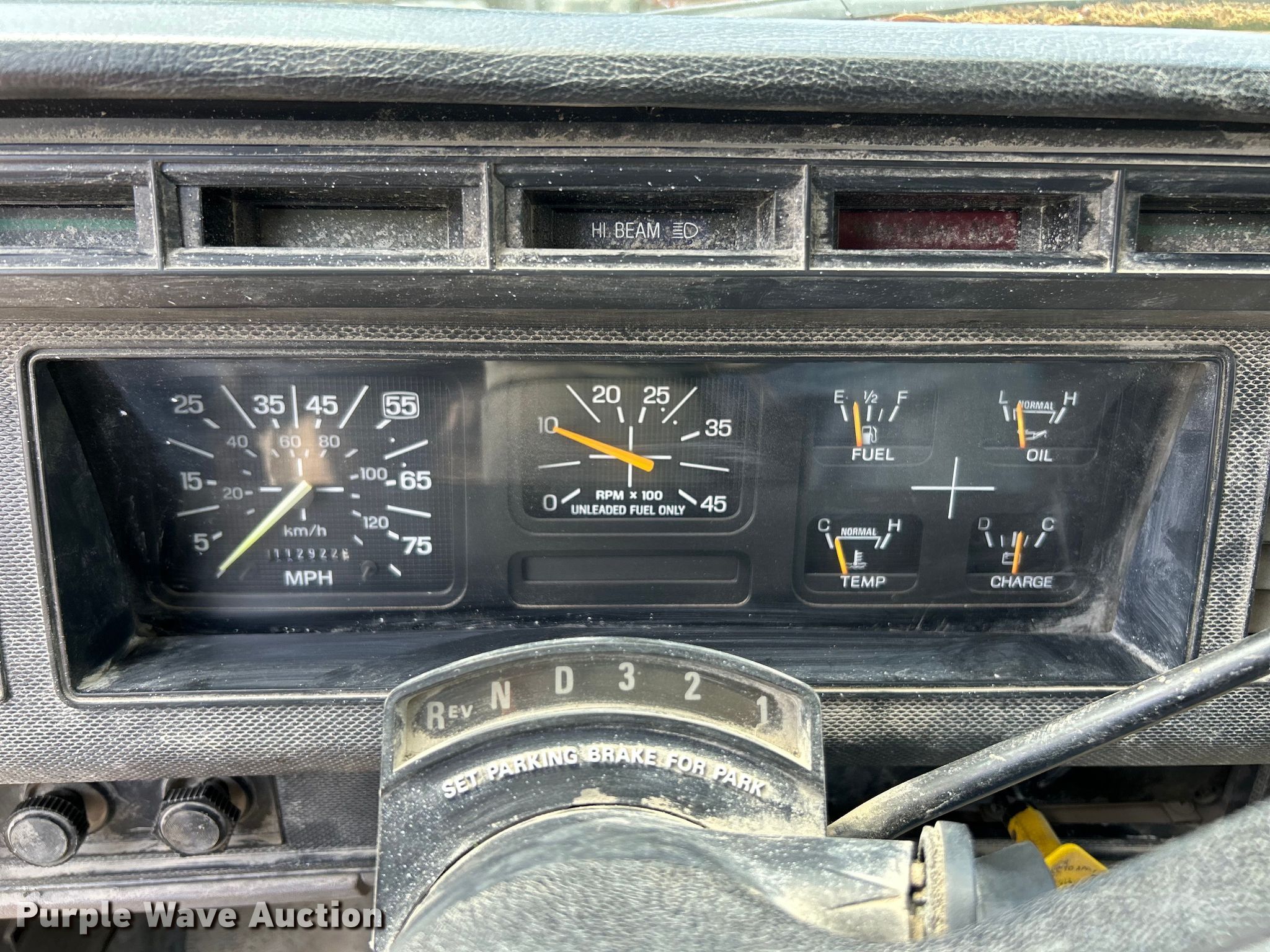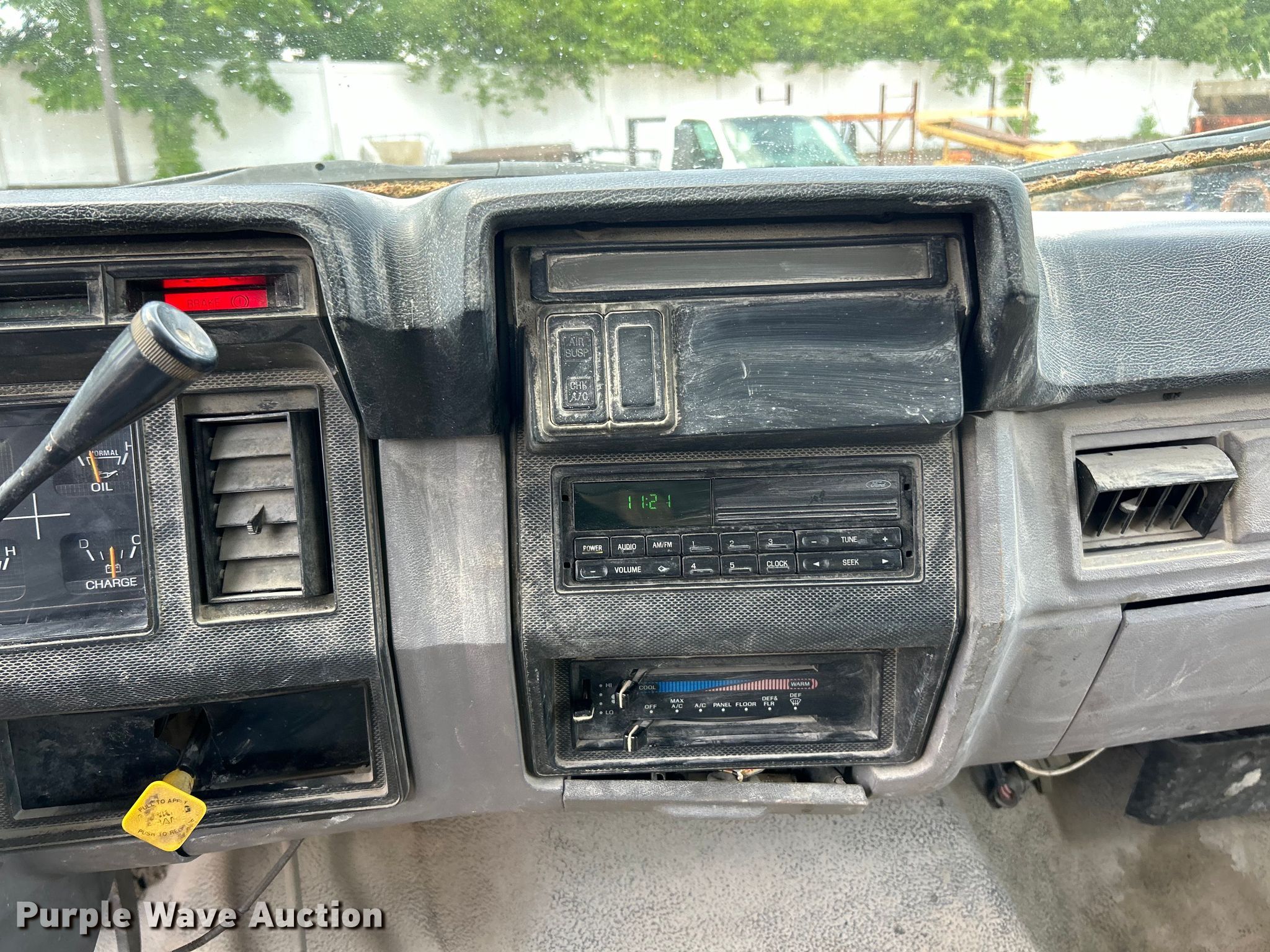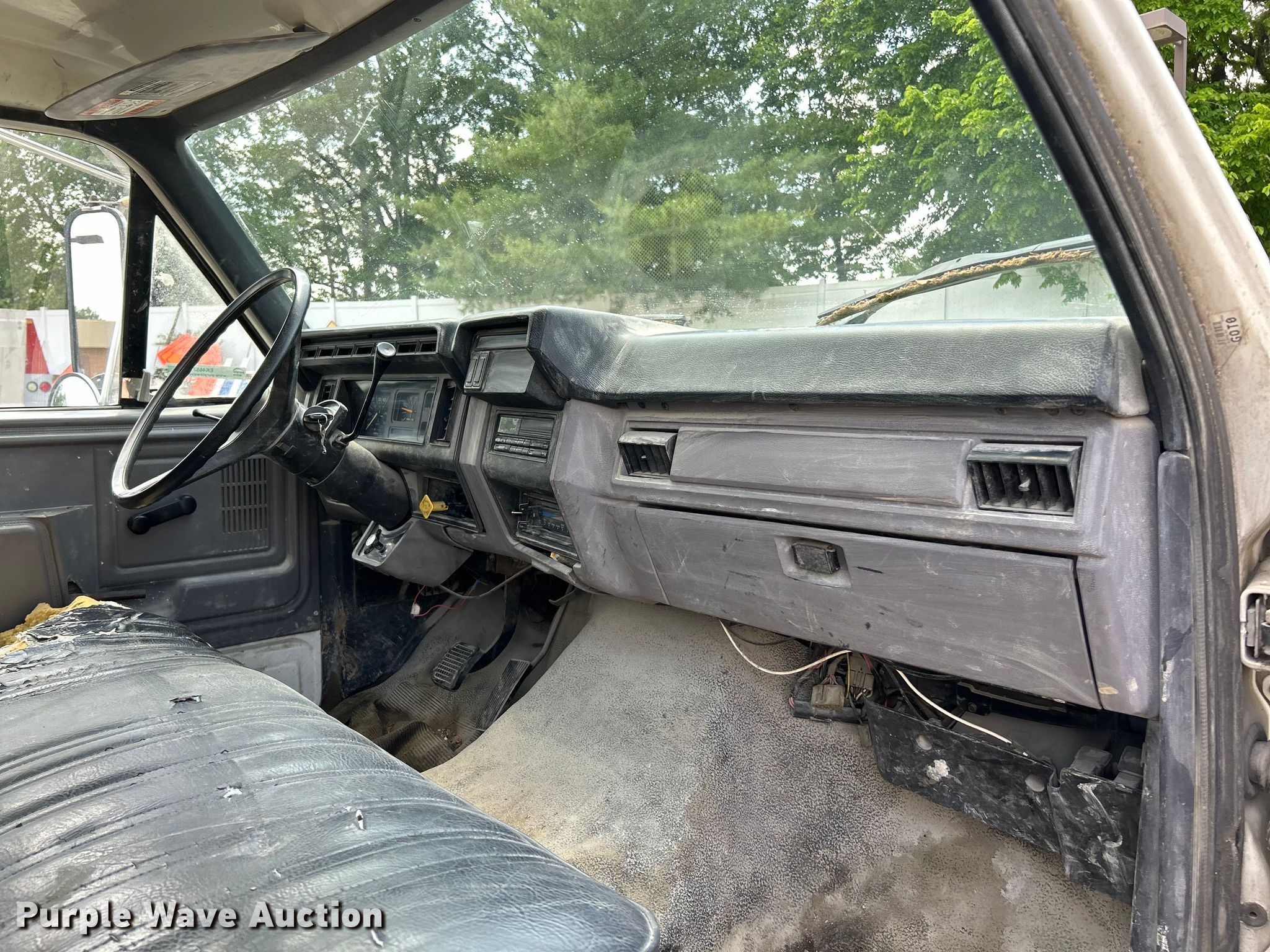 1998 Ford F700 flatbed truck. Miles: 112,923 on odometer, Hours: 8,480 on meter, VIN: 1FDNF70J2WVA19520. Engine Displacement: 7.0L, Cylinders: 8, Fuel type: Gas. Transmission Automatic. Chassis Axles: Single, Suspension: Spring, Brakes: Electric over hydraulic, PTO, GVWR: 26,000 lbs, Wheelbase: 189". Interior AC, heat. Features Dump flatbed 18' 6" L x 96" W, Ram: Single. Tires Front: 275/80R22.5, Rear: 10R22.5. Notes Contents of bed will be removed prior to auction, Dash warning indicator: Brake, Rear brake issues, Unknown operating condition of PTO. Missouri title. Title distribution may be delayed up to 14 days from verification of funds. M&H Concrete Contractors Inc.. St. Peters, MO 63376
