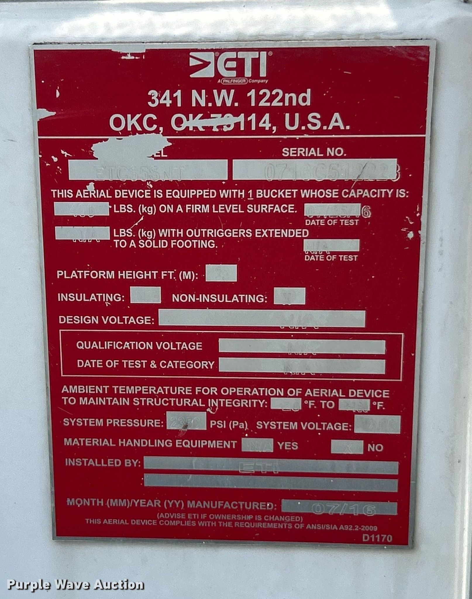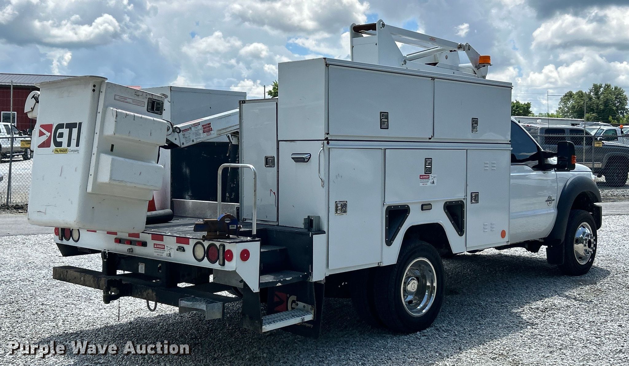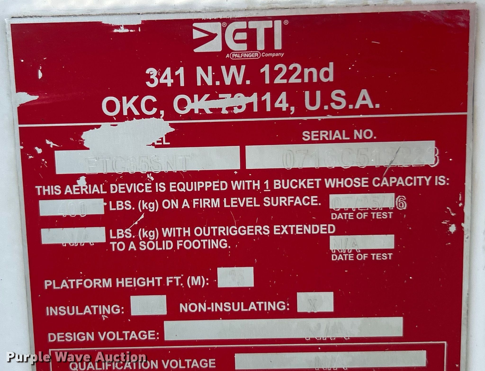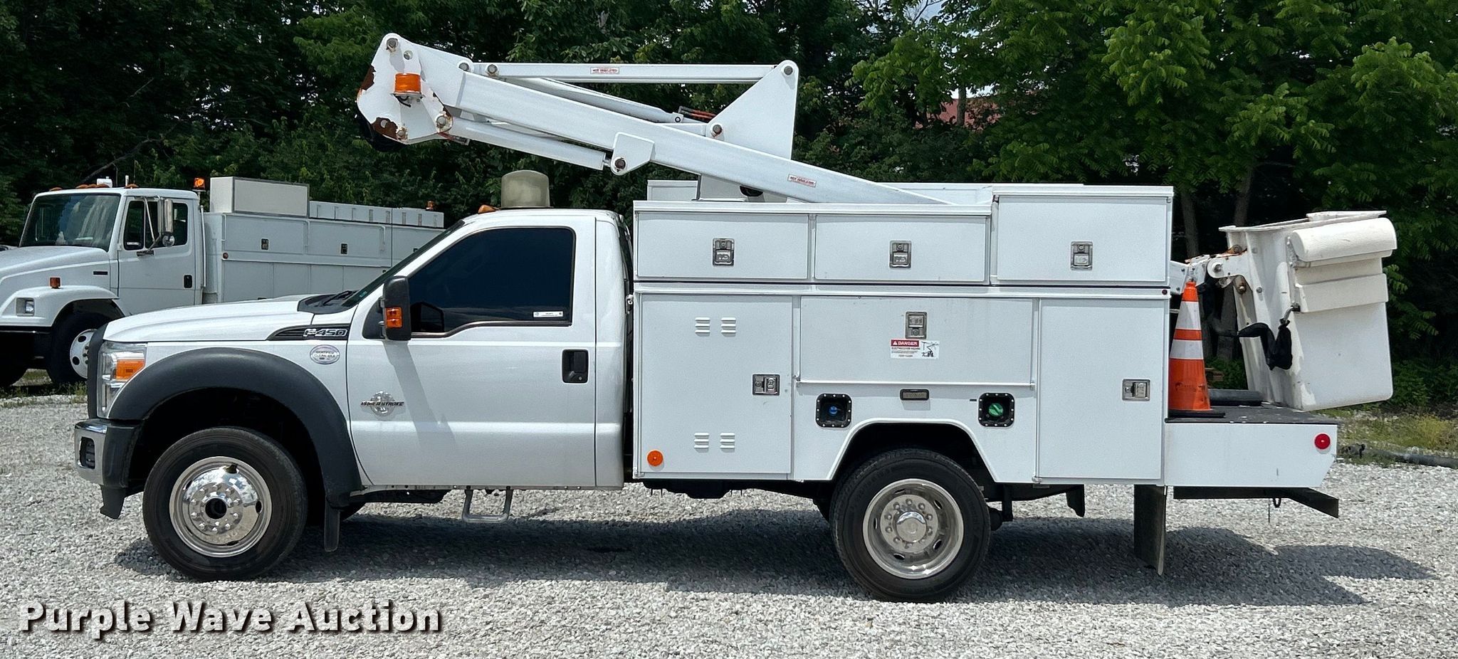 2016 Ford F450 Super Duty XL bucket truck. Miles: 224,750 on odometer, VIN: 1FDUF4HT7GEC69322. Engine Displacement: 6.7L V8 OHV, Cylinders: 8, Fuel type: Diesel. Transmission Automatic. Chassis Four wheel drive, Axles: Single, Suspension: Spring, Brakes: Hydraulic, GVWR: 16,500 lbs, Wheelbase: 141". Interior AC, heat, Heated mirrors, Power windows, power locks, Cruise control, Auxiliary controls. Features Bed ETI, 9' L x 96" W, Boom ETI ETC35SNT, Serial: 0716C512223, Maximum lift capacity: 400 lbs, Maximum lift height: 35', Boom type: Articulating, telescopic, Man basket, Boom controls Ground, Platform/ basket.. Tires Size: 225/70R19.5. Missouri title. Seller is a Missouri licensed motor vehicle dealer. Title will be assigned and distributed by the dealer. Please contact the seller for distribution questions. Title distribution may be delayed up to 30 days from verification of funds. Fruendly Auto Source Inc.. Moscow Mills, MO 63362