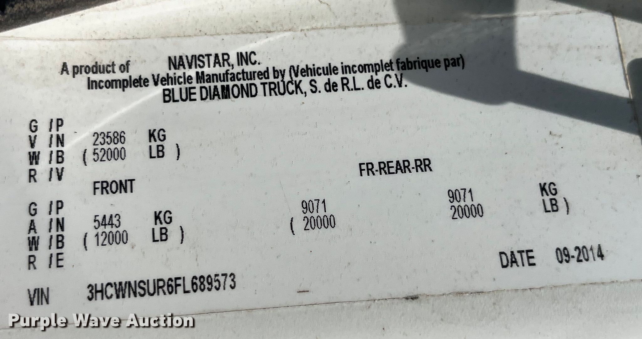 - VIN: 3HCWNSUR6FL689573