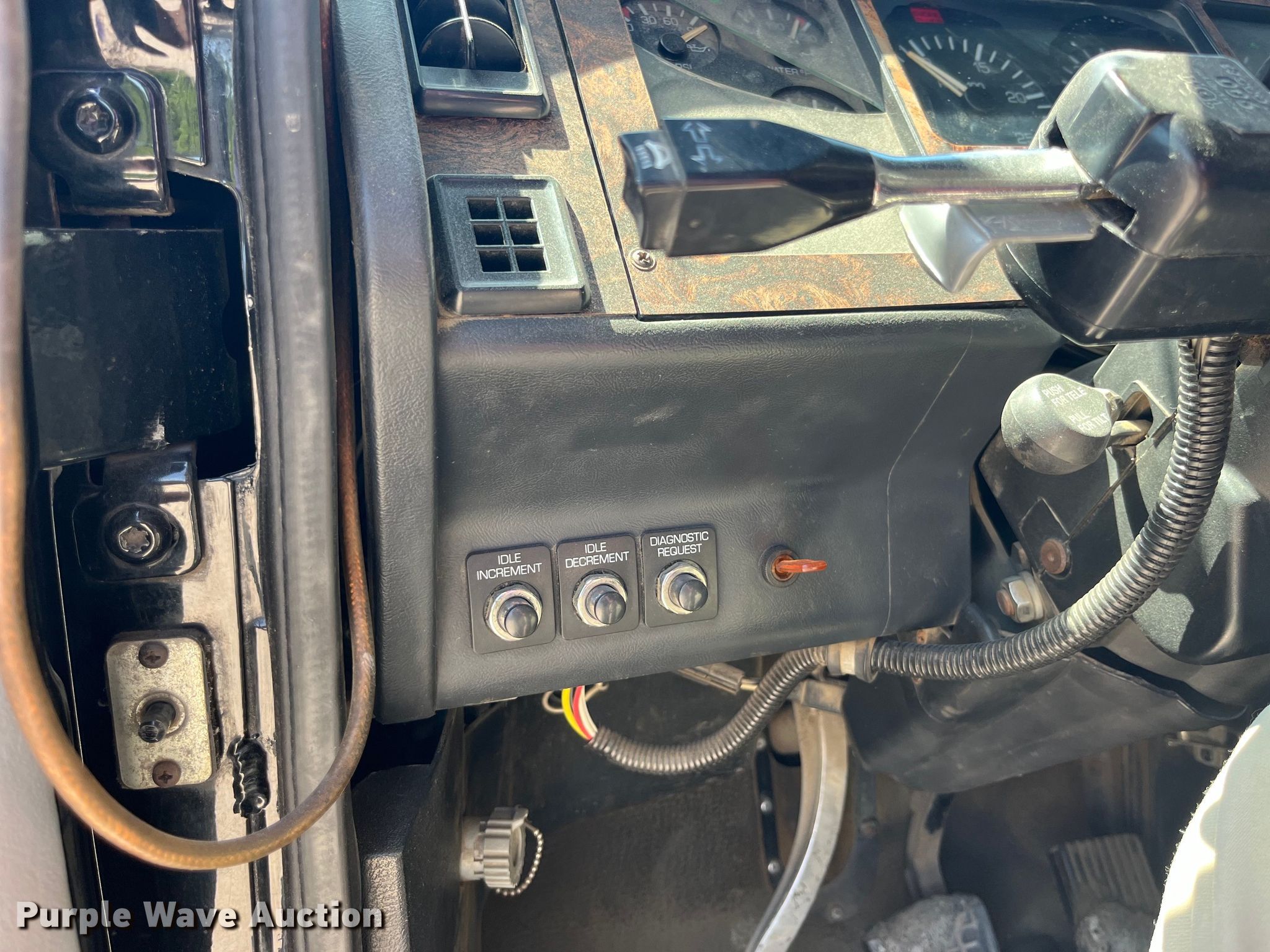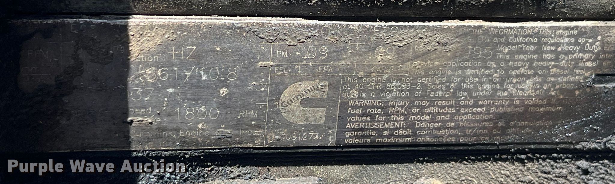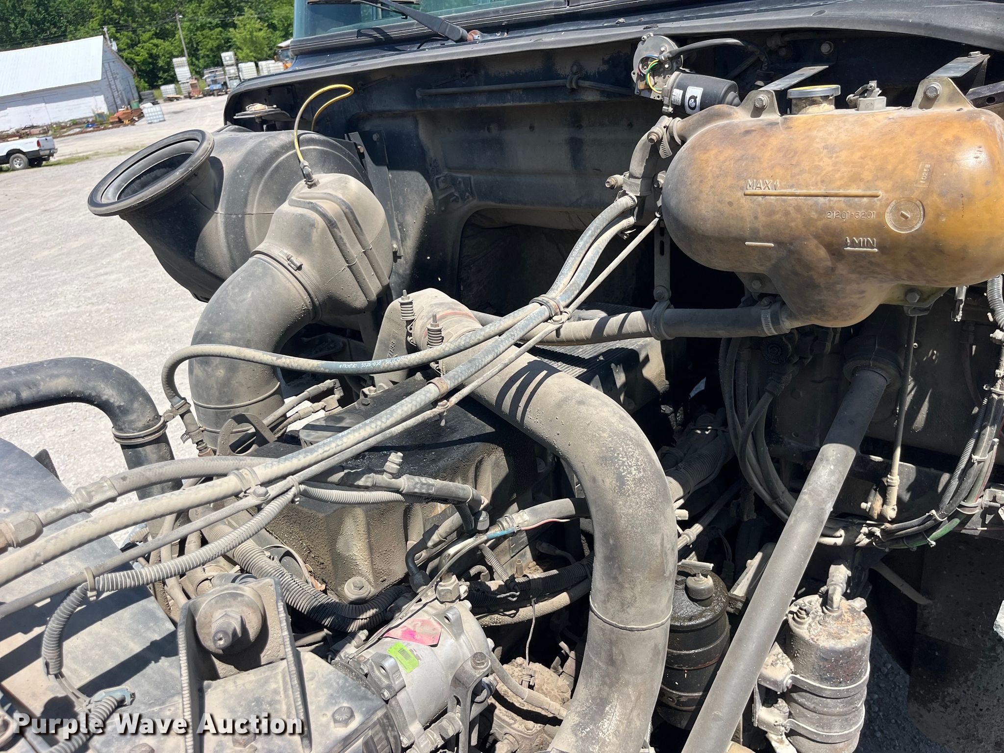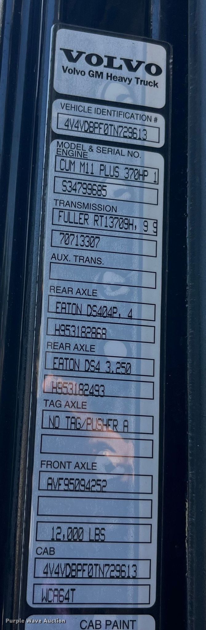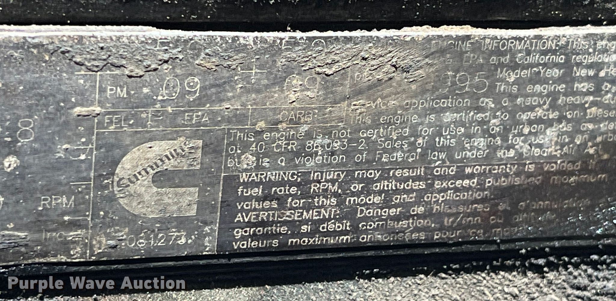 1996 Volvo WCA dump truck. Miles: 516,150 on odometer, Hours: 169 on meter, VIN: 4V4VDBPF0TN729613. Engine Cummins, Displacement: 10.8L, Cylinders: 6, Fuel type: Diesel, Engine brake. Transmission Eaton Fuller, Manual, Speed: 9. Chassis Axles: Triple, Pusher axle, Differential lock: Inter-axle, Suspension: Air, Brakes: Air, PTO, GVWR: 52,000 lbs FAWR: 12,000 lbs, IAWR: 20,000 lbs, RAWR: 20,000 lbs. Interior AC, Heat, Heated mirrors, Cruise control. Features Dump bed 16' 5" L x 8' W, Side height: 64", Side board height: 6", Bed type: Aluminum, Roll tarp, Ram: Single, End gate: Air operated. Tires Size: 11R22.5, Lift axle: 255/70R22.5. Notes Non-operational power passenger window, Dash warning indicator: Engine fluids, Air leak in pusher axle air bag. Missouri title. Trager Limestone LLC. Chillicothe, MO 64601