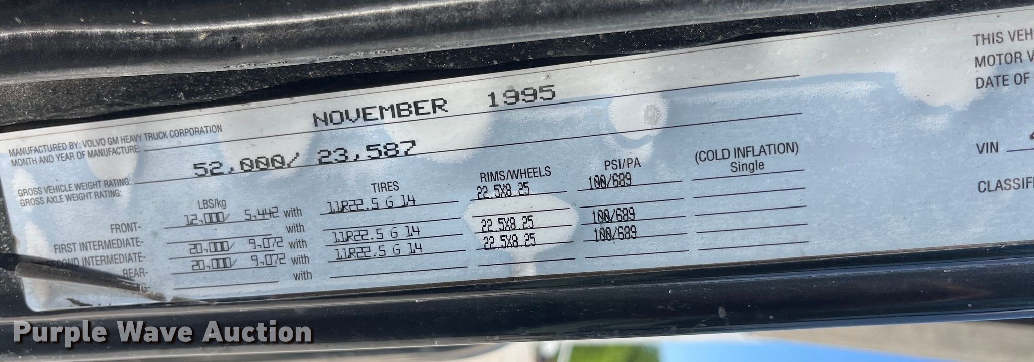 Purple Wave is selling a used Construction Dump Truck in Missouri. This item is a 1996 Volvo WCA dump truck with the following: Miles: 516,150 on odometer, Hours: 169 on meter, VIN: 4V4VDBPF0TN729613