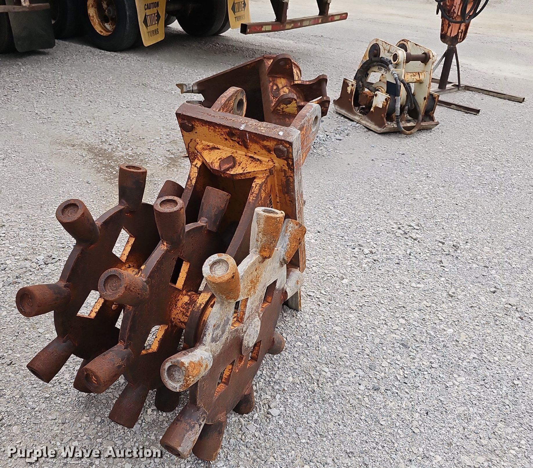 Excavator attachments. Breaker Stand included, Removed from a Case MB550, Vibratory compactor Serial: 750022, 34" L x 24" W, Removed from a Kent HP75, V-bottom excavator bucket Teeth: 7, Width: 24", Compaction wheel Diameter: 30", Width: 22", Removed from a Case 580. Vincentini Plumbing. Omaha, NE 68110