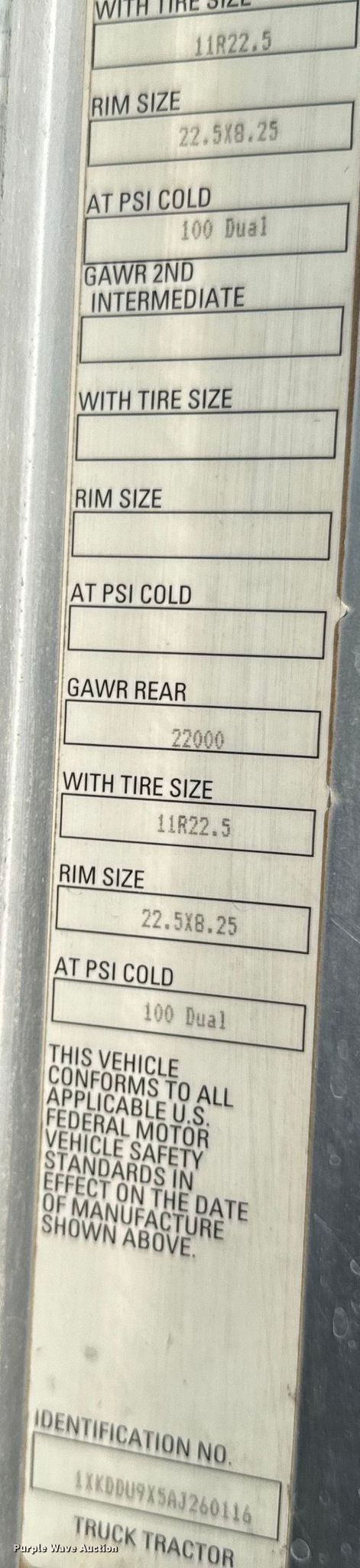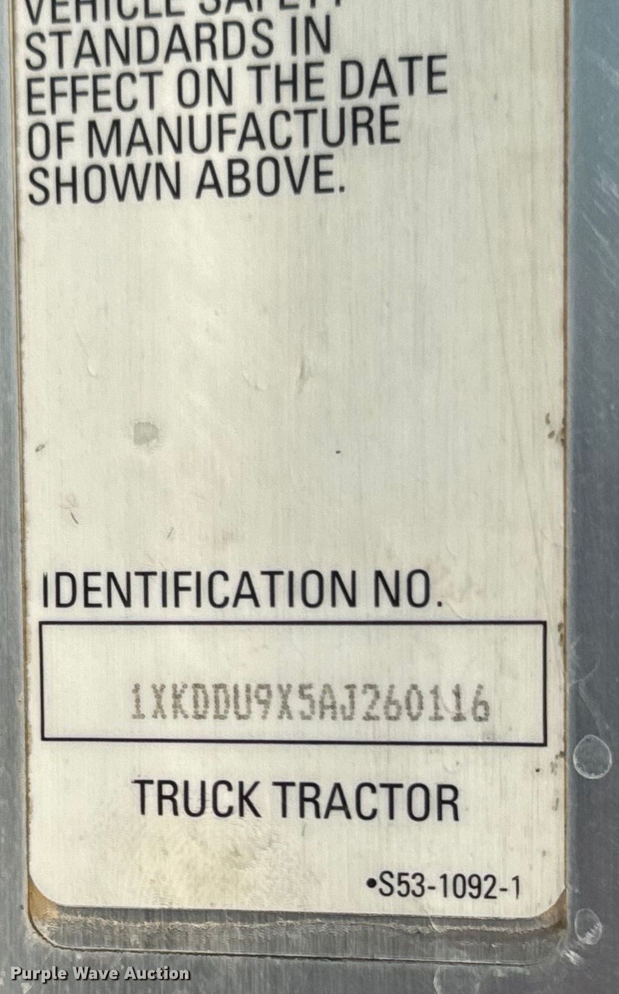 - VIN: 1XKDDU9X5AJ260116