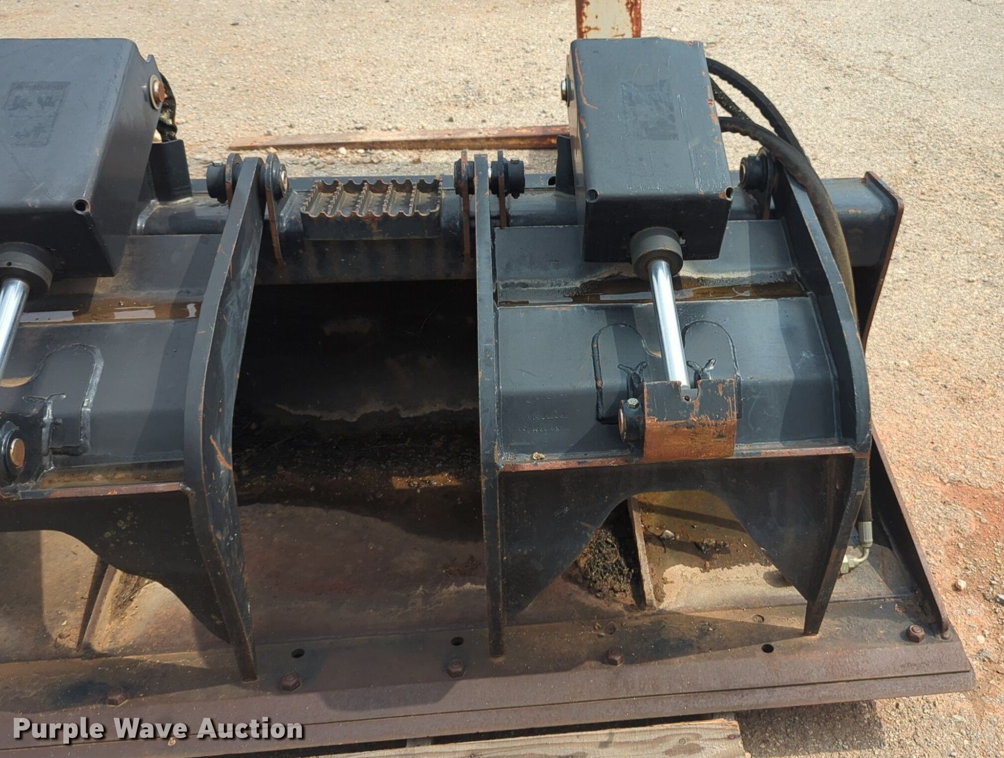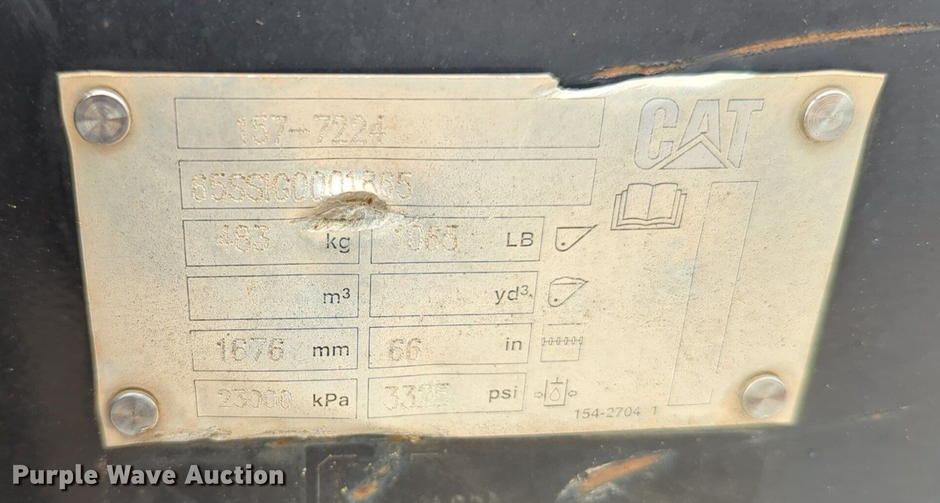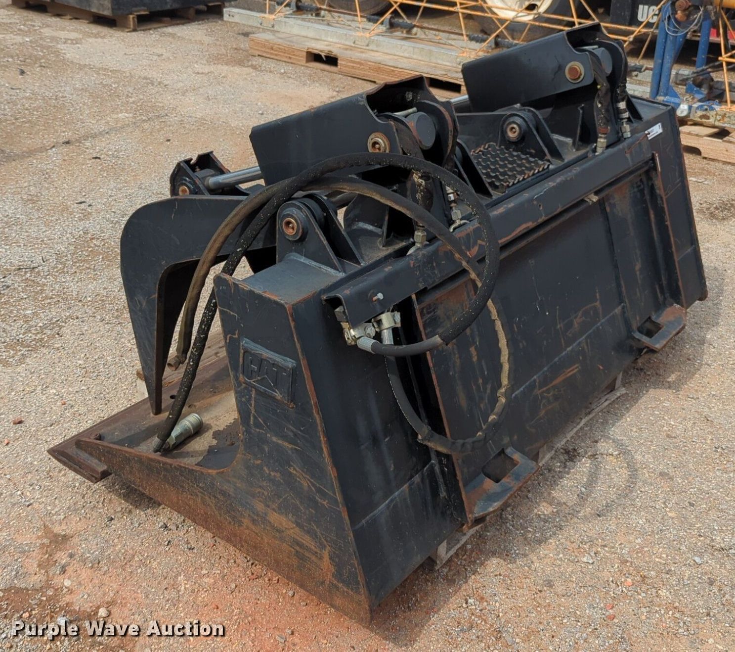 Purple Wave is selling a used Skid Steer Attach. in Oklahoma. This item is a Caterpillar 157-7224 skid steer grapple bucket with the following: Serial: 65SSIG0001865, Width: 66"