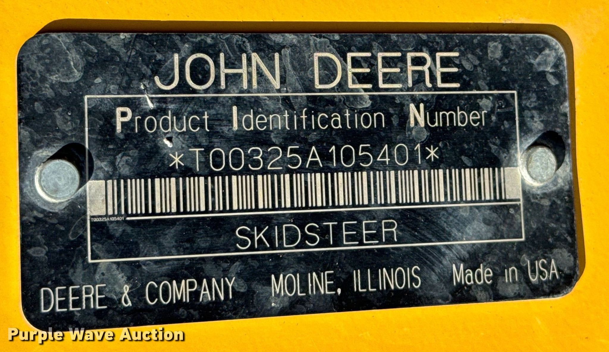 Purple Wave is selling a used Skid Steer Loader in Kansas. This item is a 2005 John Deere 325 skid steer loader with the following: Hours: 1,470 on meter, Serial: T00325A105401