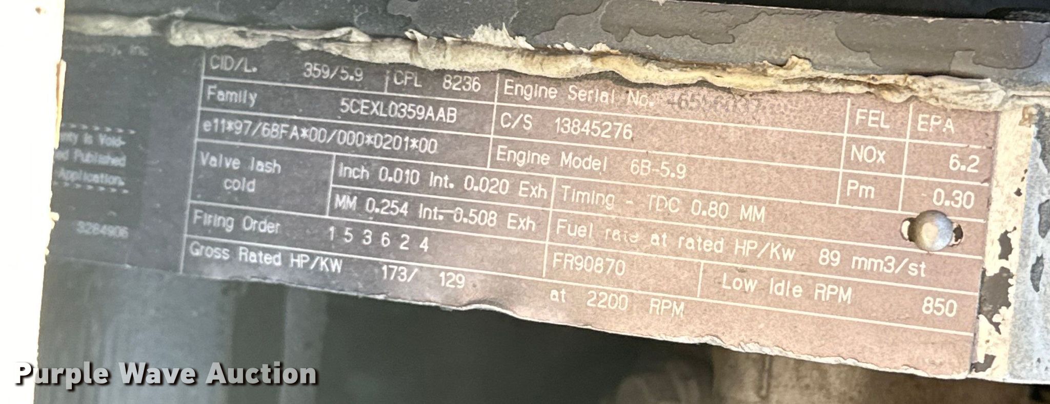2006 Ingersoll Rand DD138 HFA double drum vibratory roller. Hours: 3,755 on meter, Serial: 187434. Engine Cummins 6B-5.9, Serial: 46556037, Displacement: 5.9L, Cylinders: 6, Fuel type: Diesel. Transmission Hydrostatic. Operators station OROPS. Features Drum: Smooth, Vibratory system: Double, Front drum Width: 84", Diameter: 54.5", Rear drum Width: 84", Diameter: 55", Drum scrapers: Front, Rear, Water spray applicator: Front, Rear. Tires Steel wheels. Notes Dead battery. JOB Construction, Inc.. Poteau, OK 74953