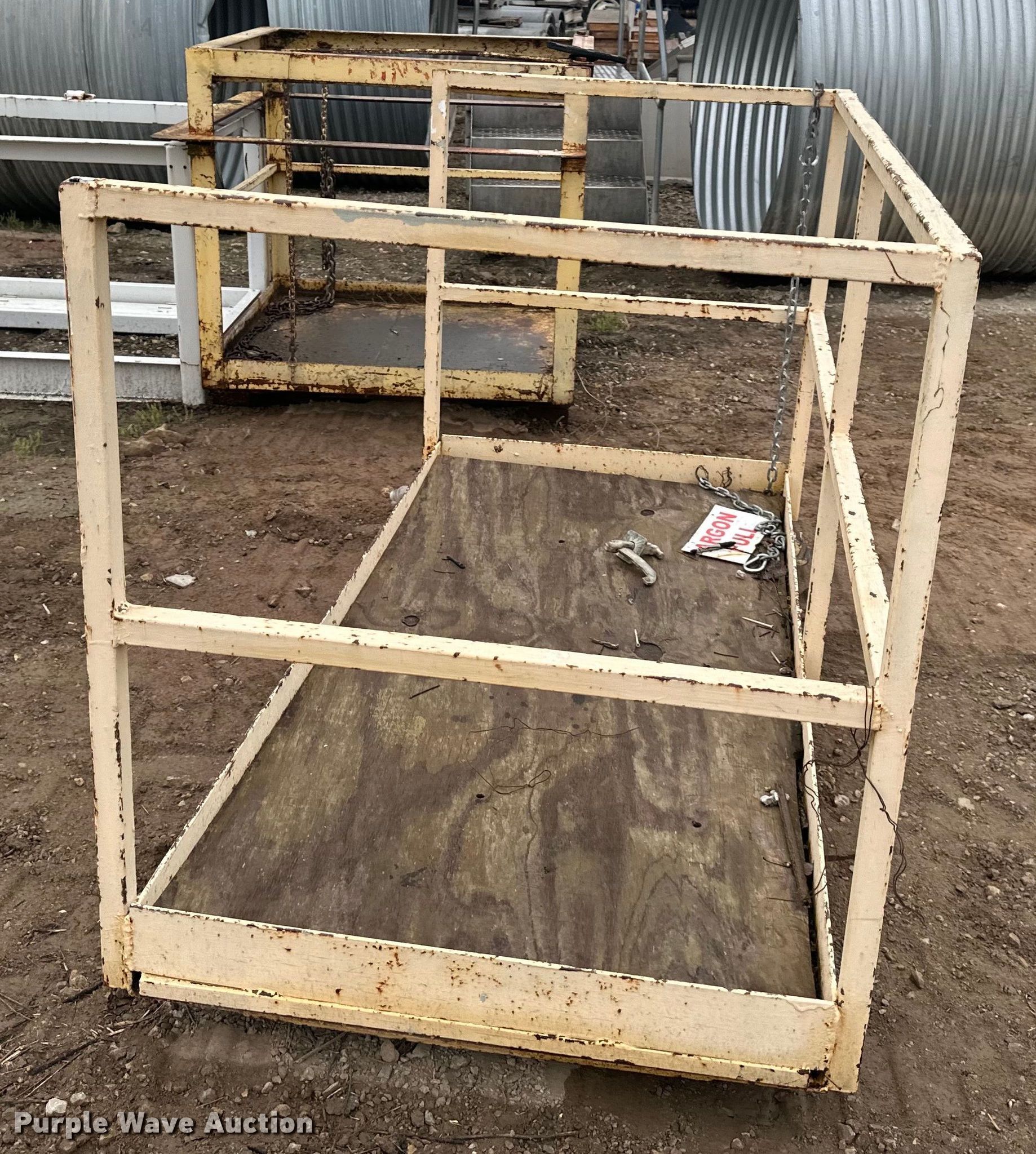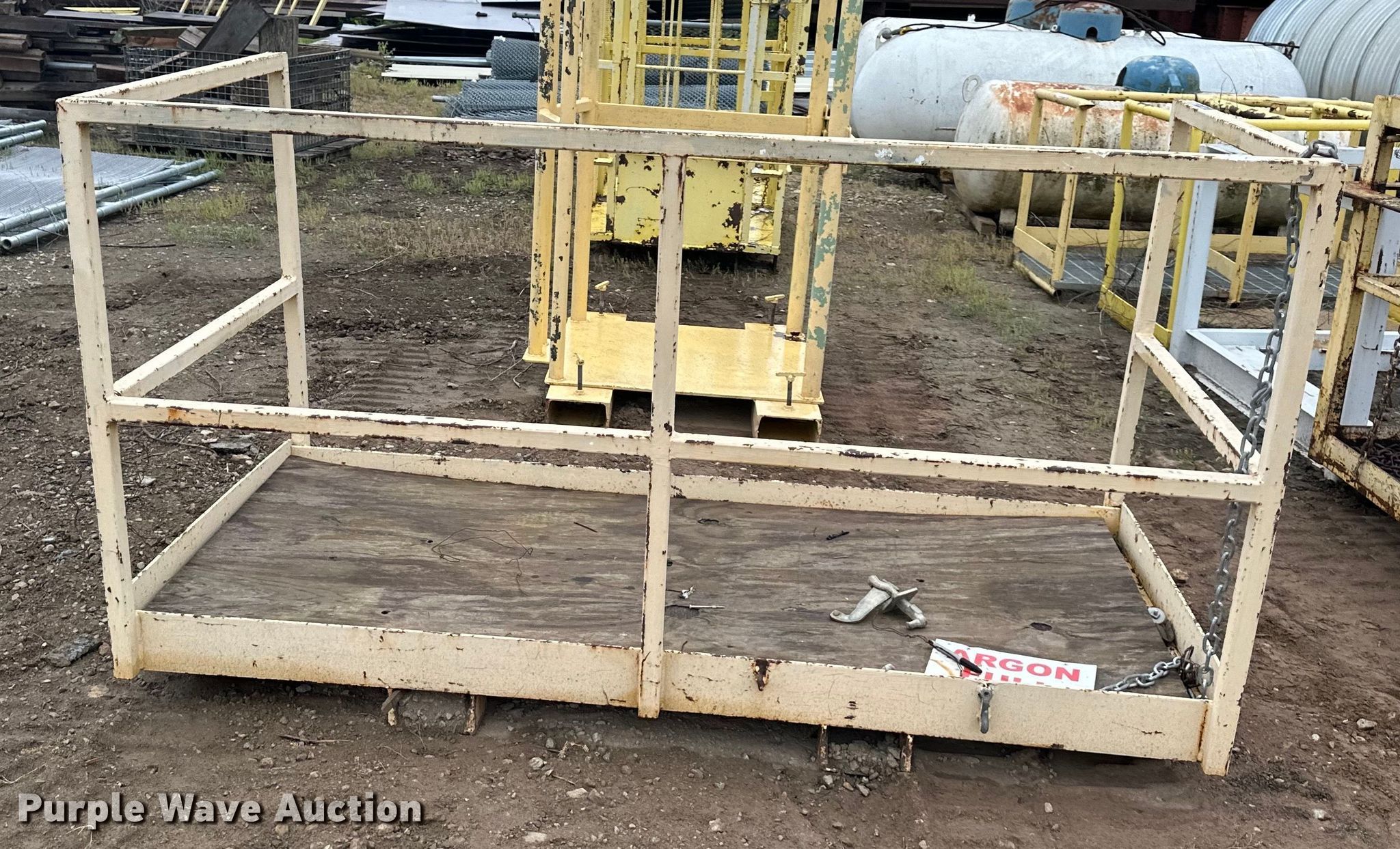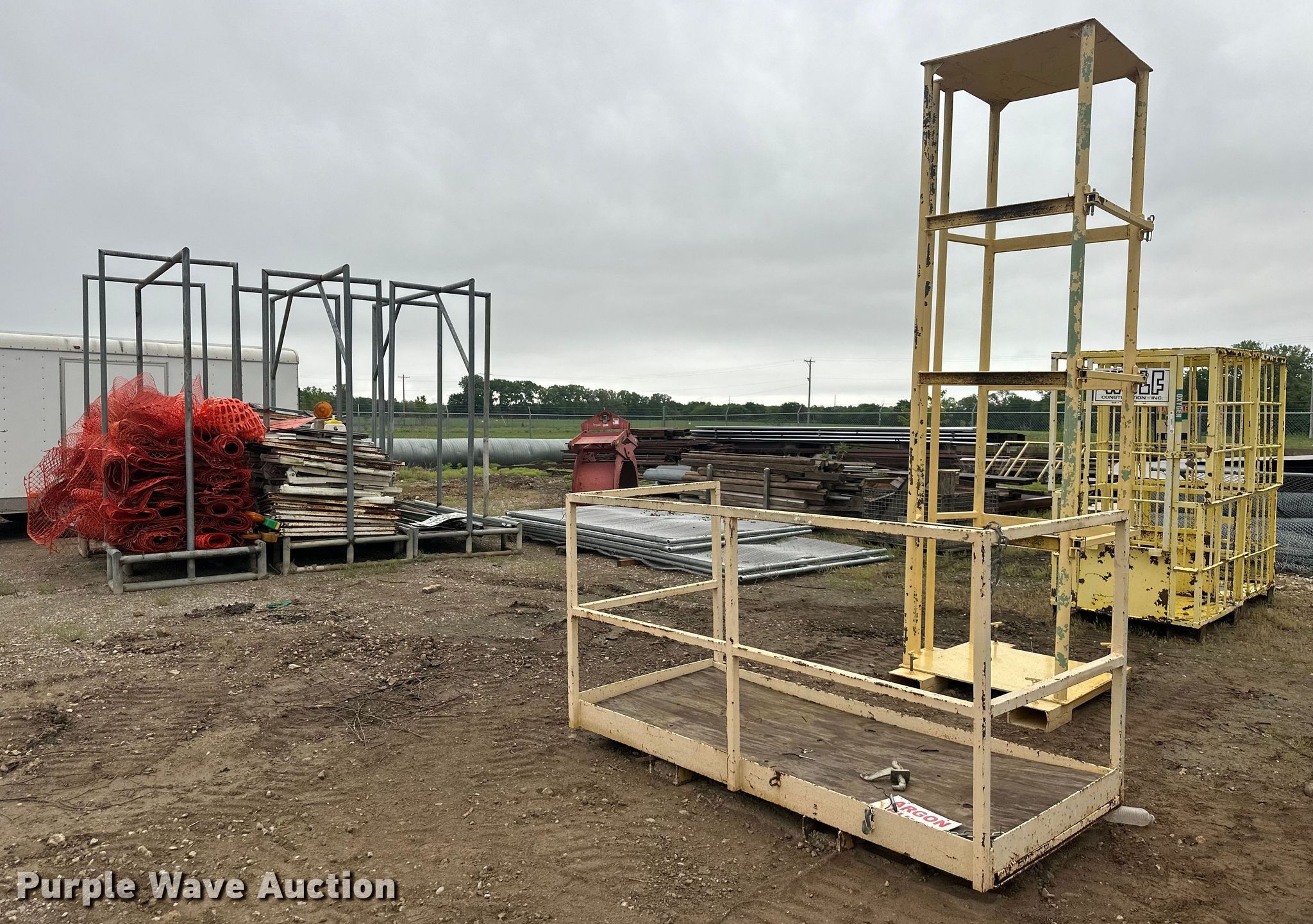 Purple Wave is selling a used Forklift Attach. in Kansas. This item is a Forklift attachments with the following: Man basket, Chain link fence unroller