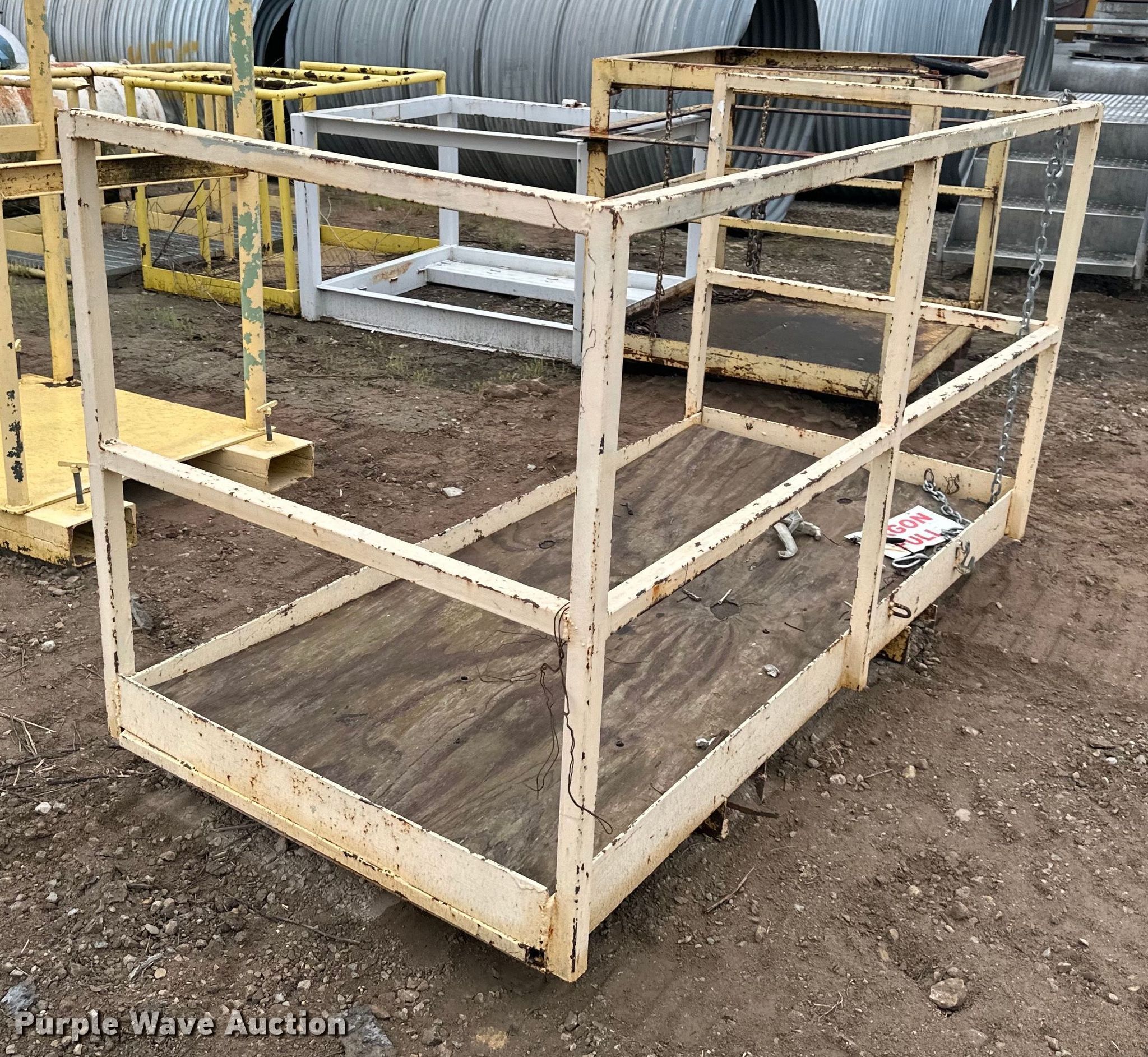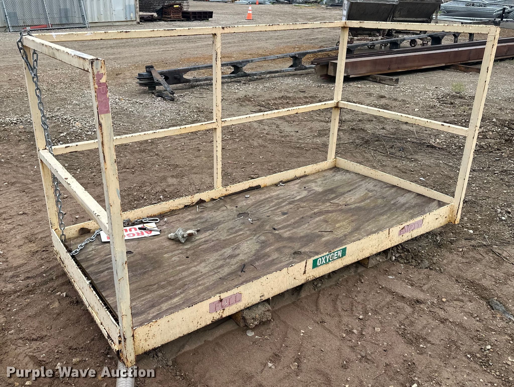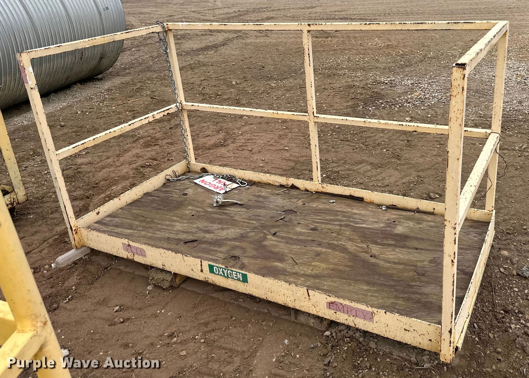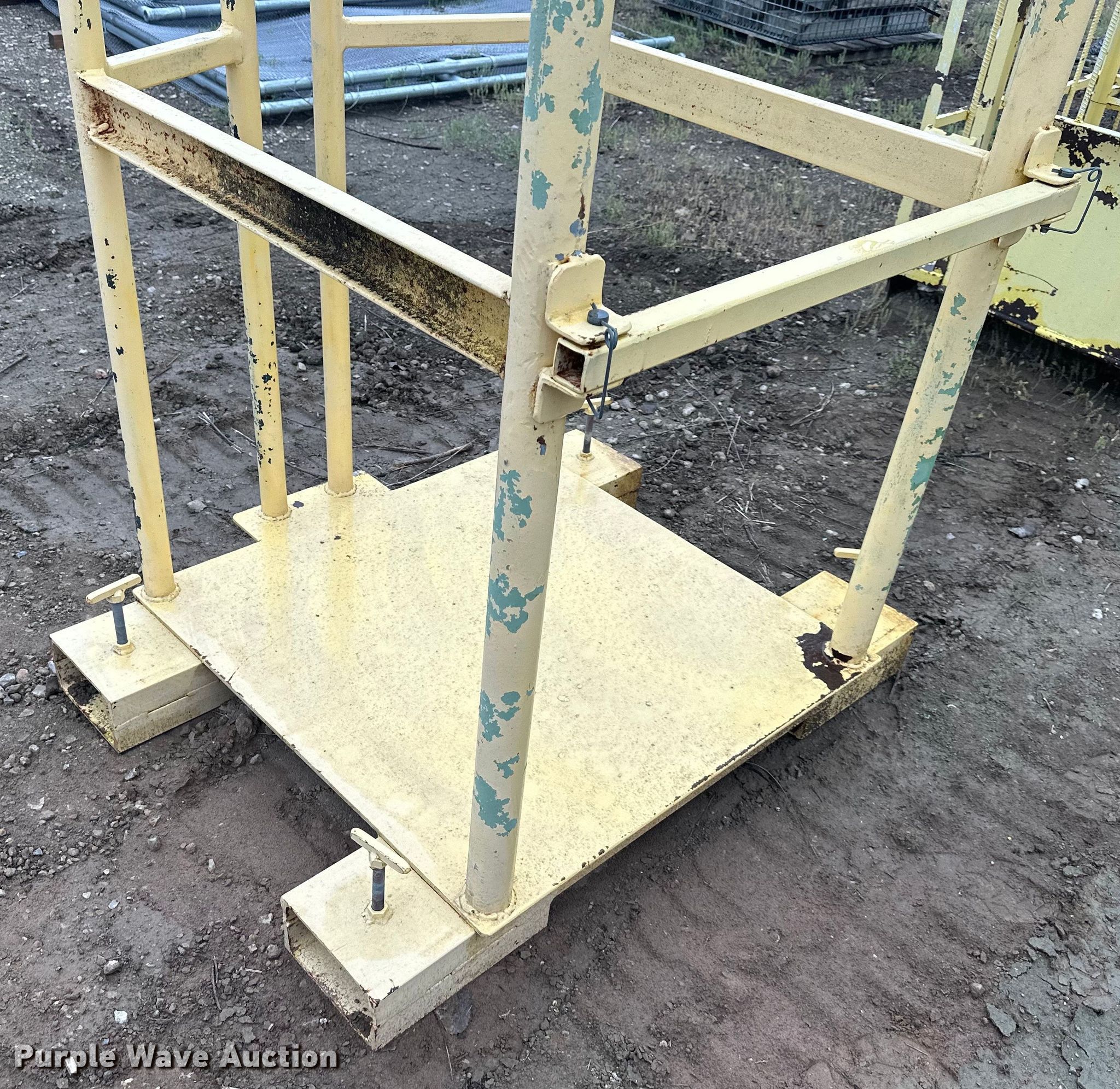 Purple Wave is selling a used Forklift Attach. in Kansas. This item is a Forklift attachments with the following: Man basket, Chain link fence unroller