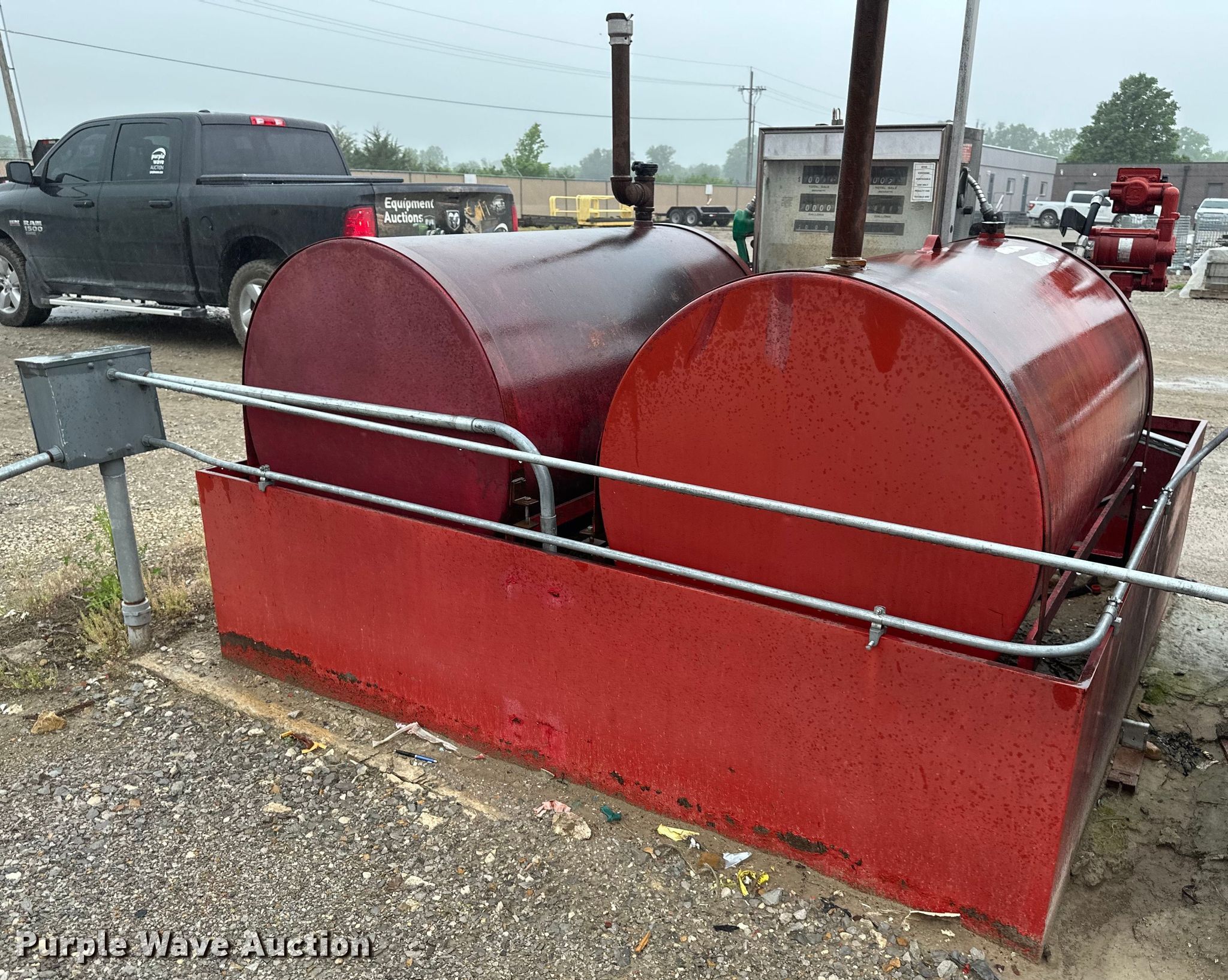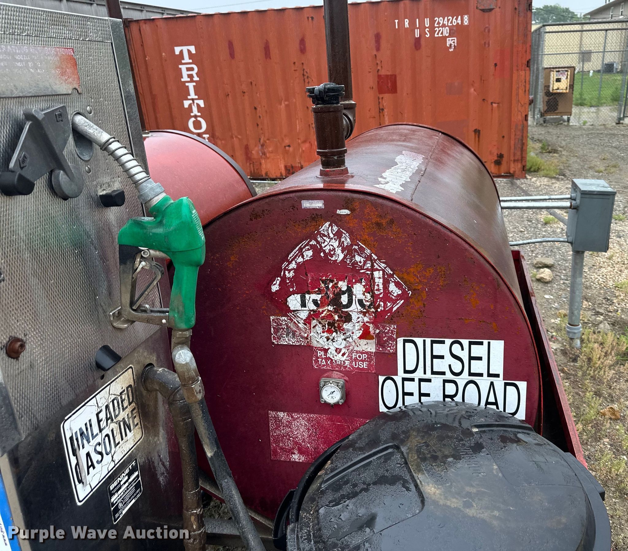 Purple Wave is selling a used Fuel and Lube in Kansas. This item is a (2) fuel tanks with the following: Capacities: Approx. 350 gallons, Fuel tank containment, (2) pumps