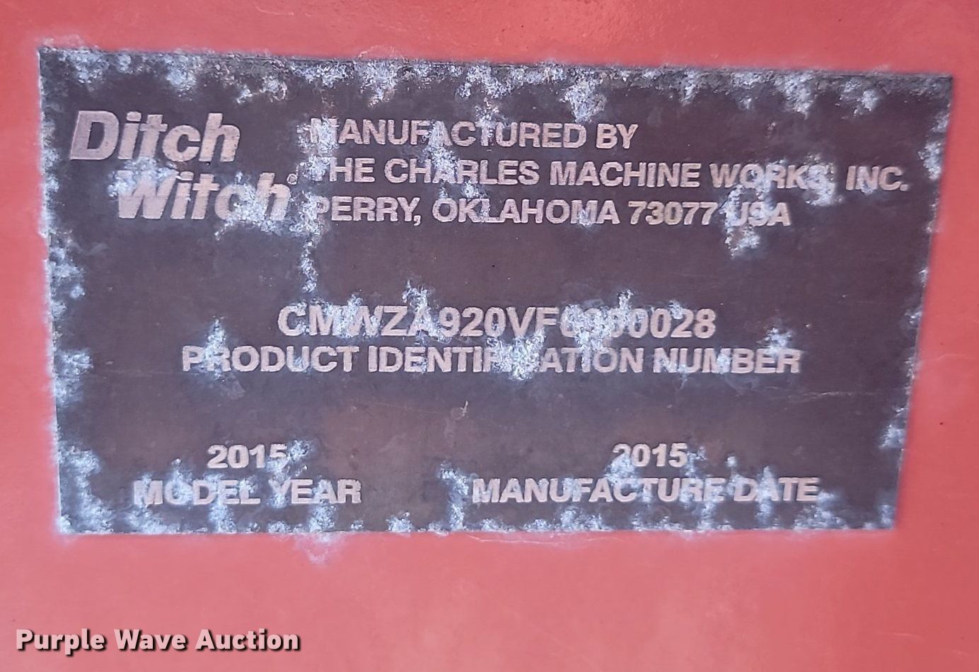 Purple Wave is selling a used Trencher Attach. in South Dakota. This item is a 2015 Ditch Witch A920 backhoe with the following: Bucket, Teeth: 4, Width: 18", Controls: Two-stick, Outriggers, Serial: CMWZA920VF0000028