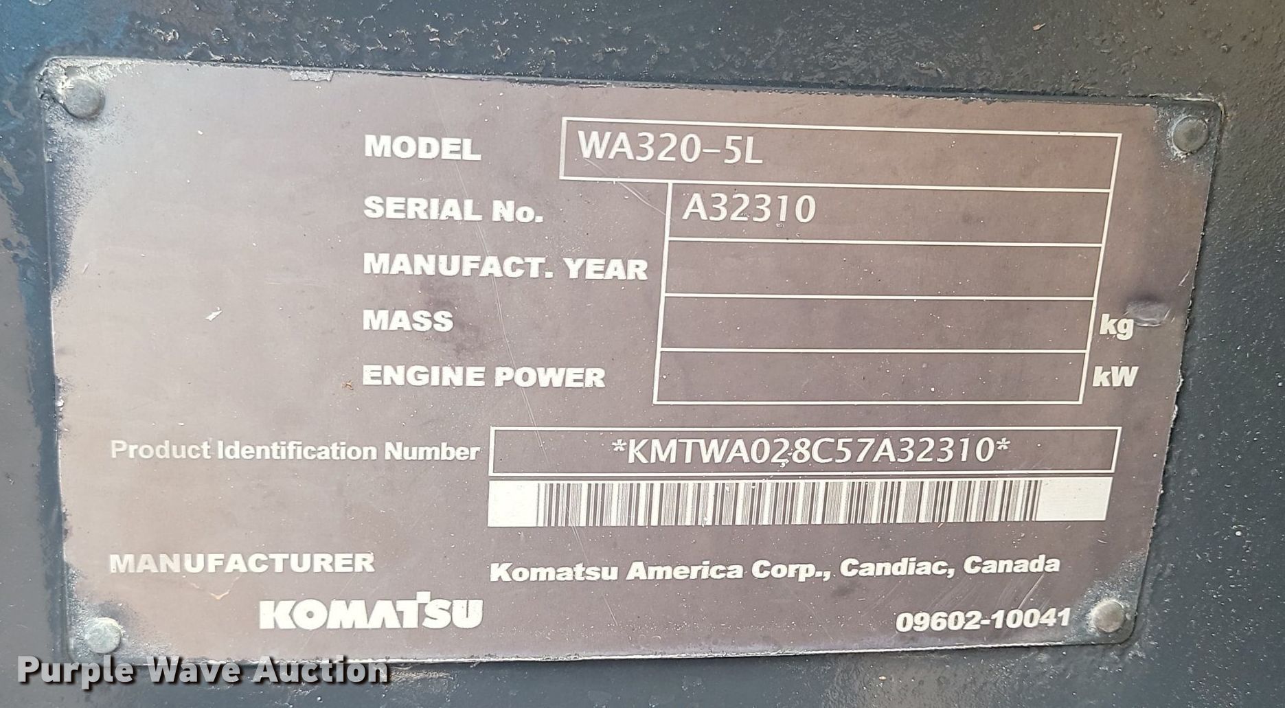 Purple Wave is selling a used Wheel Loader in South Dakota. This item is a 2005 Komatsu WA320 wheel loader with the following: Hours: 3,180 on meter, Serial: KMTWA028C57A32310