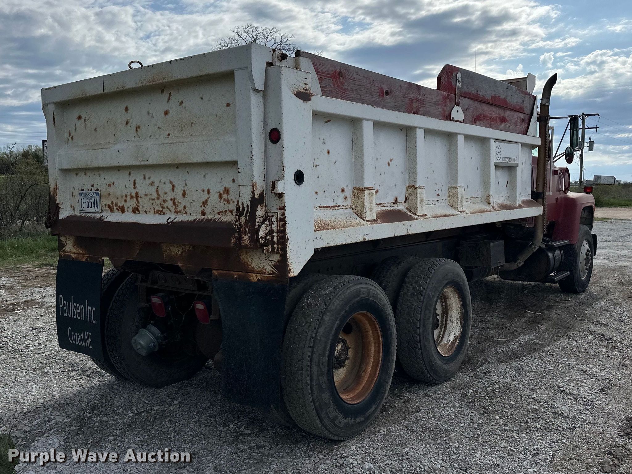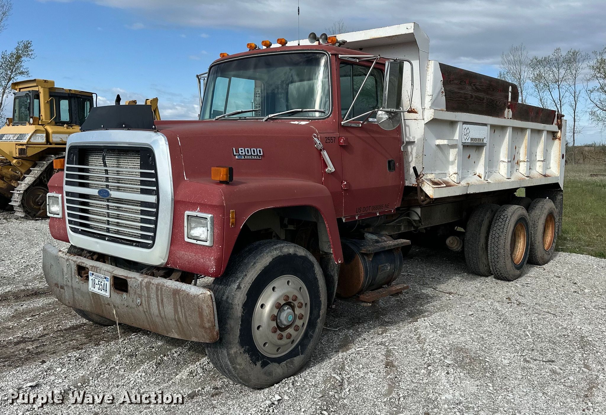 Purple Wave is selling a used Construction Dump Truck in Nebraska. This item is a 1991 Ford L8000 dump truck with the following: Miles: 585,788 on odometer, Hours: 1,049 on meter, VIN: 1FDYU82A5MYA25797