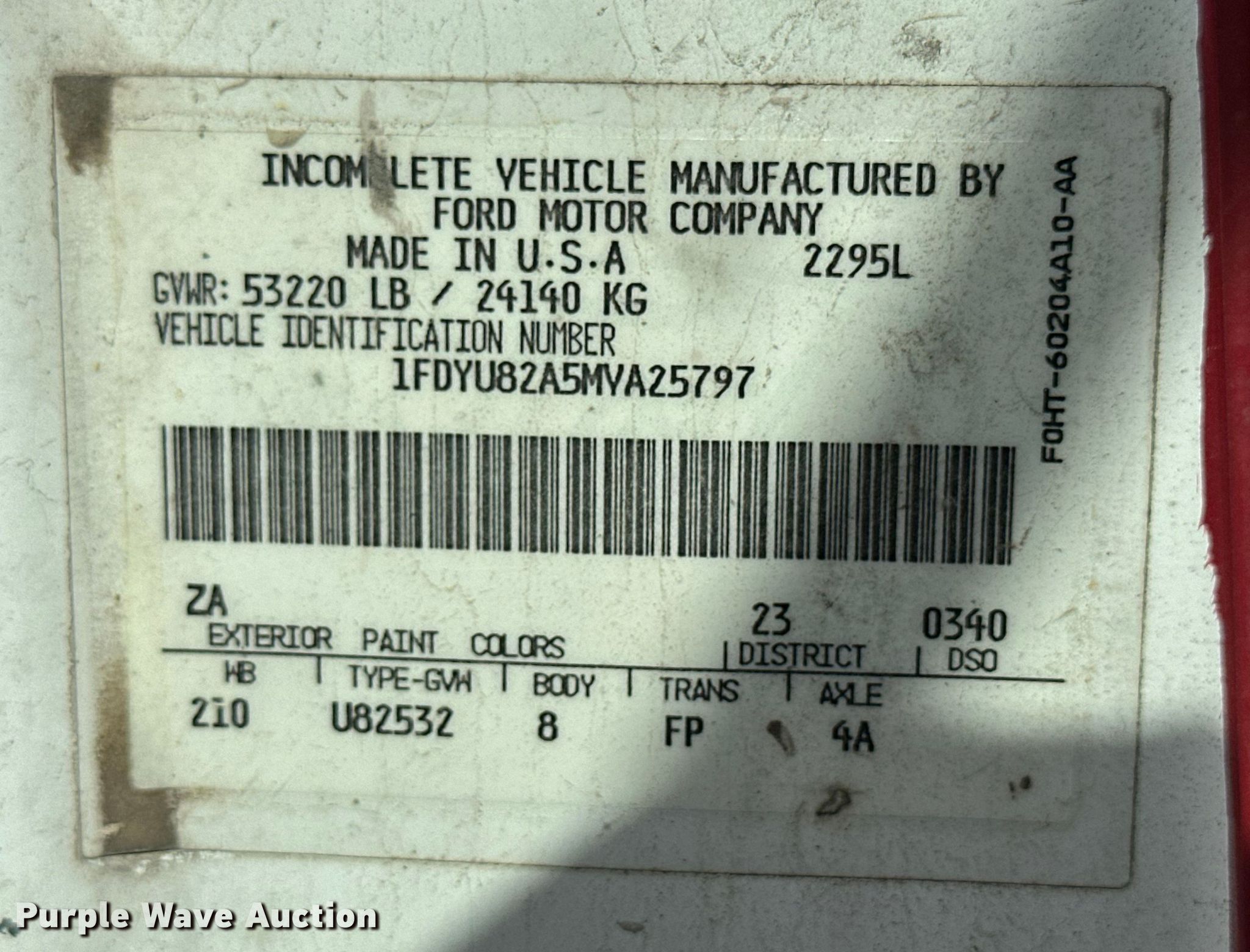 - VIN: 1FDYU82A5MYA25797