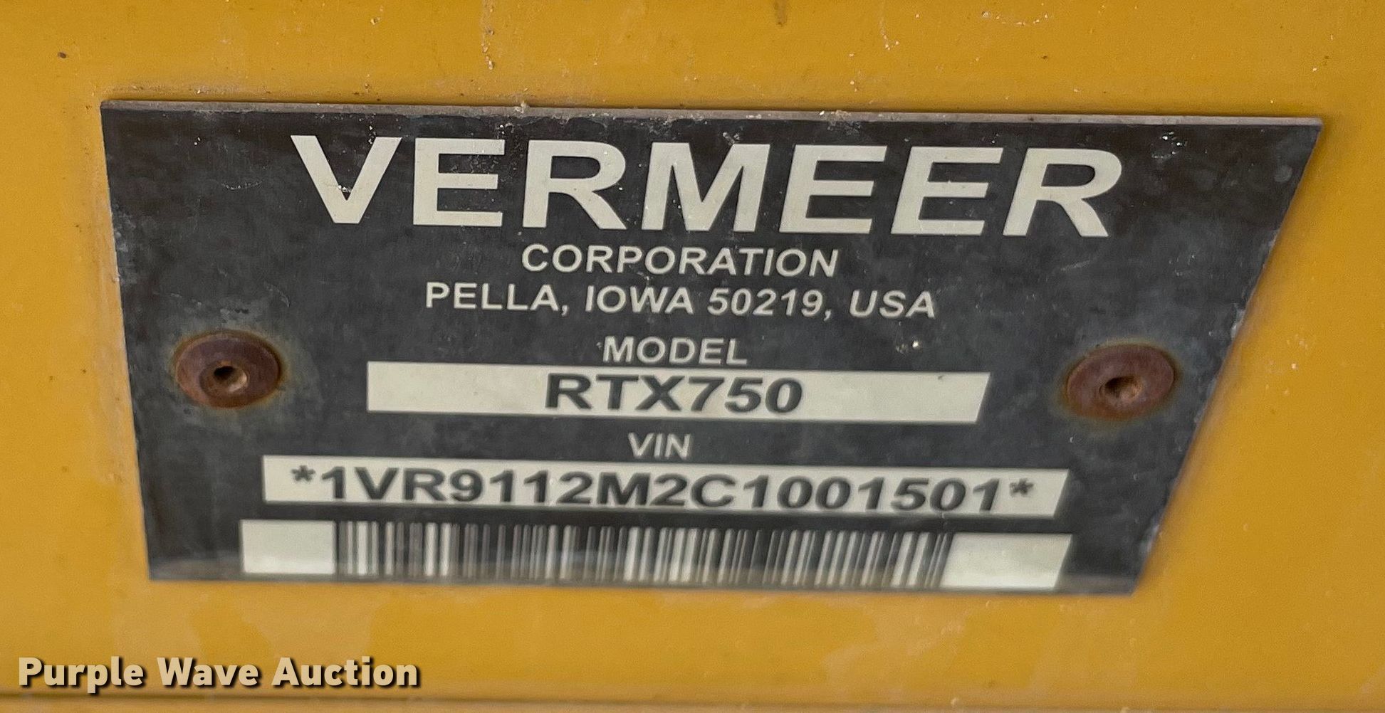 Purple Wave is selling a used Trencher or Rock Saw in Illinois. This item is a 2012 Vermeer RTX750 trencher with the following: Hours: 1,834 on meter, Serial: 1VR9112M2C1001501