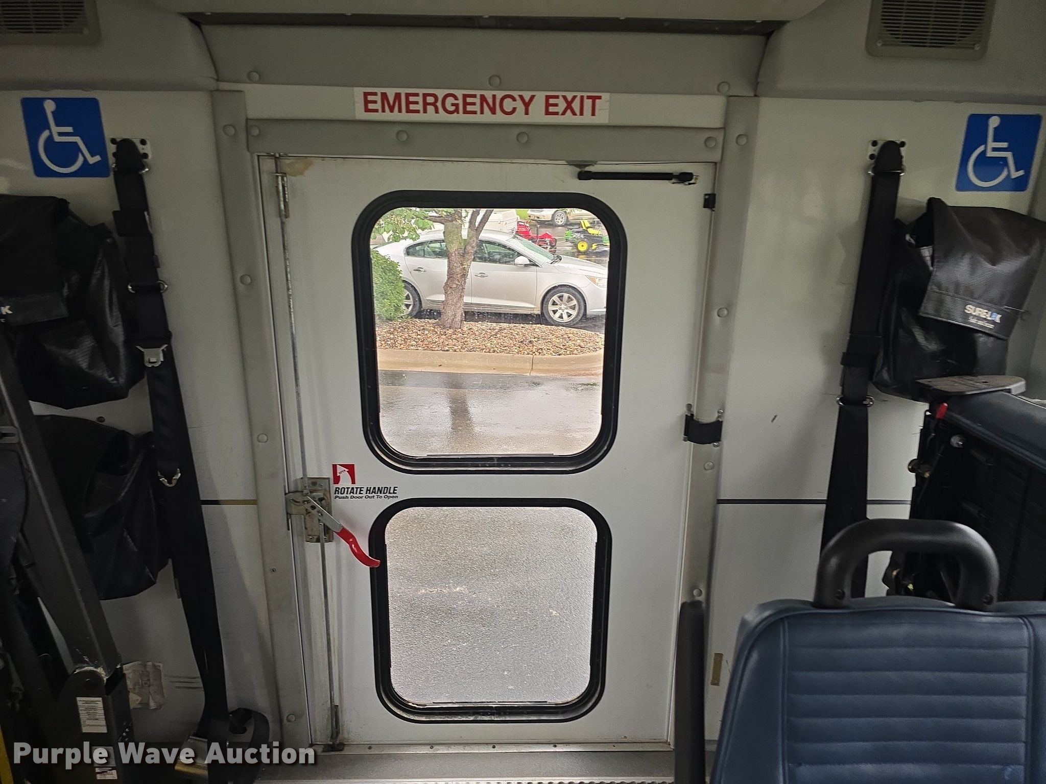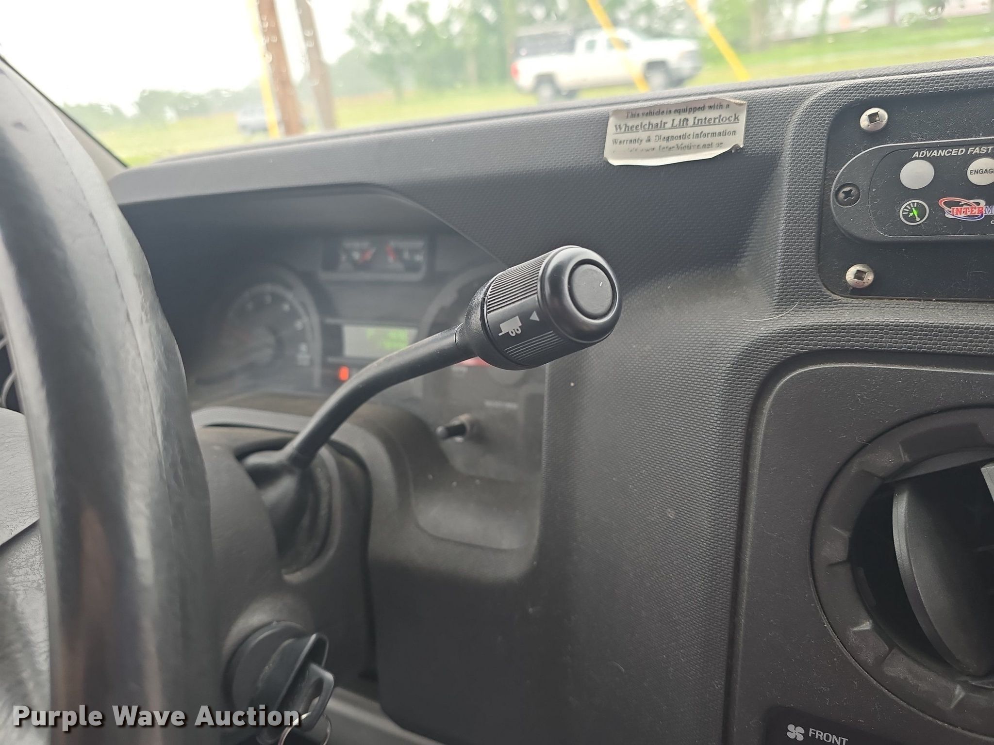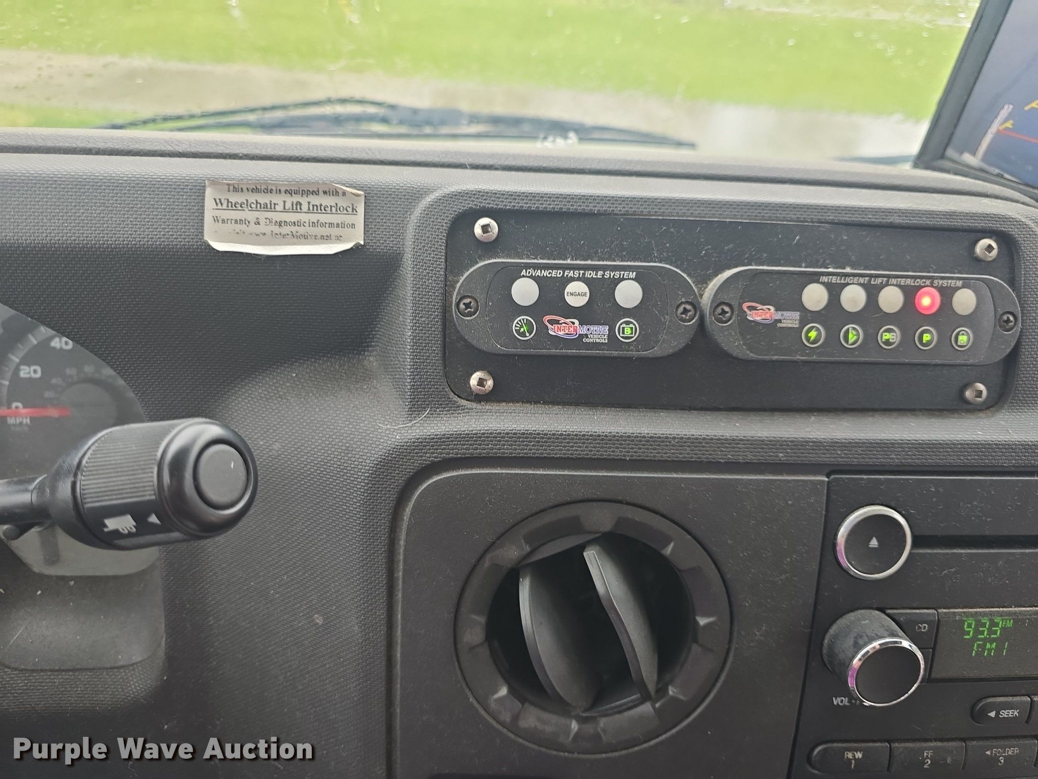 2009 Ford E450 Super Duty shuttle bus. Miles: 178,442 on odometer, Miles or hours may vary, unit still in use, VIN: 1FDFE45S69DA50318, Unit #: 9. Engine Displacement: 6.8L V10 SOHC, Cylinders: 10, Fuel type: Gas. Transmission Automatic. Chassis Axles: Single, Suspension: Spring, Brakes: Hydraulic. Interior AC, Heat, Heated mirrors, Cruise control, Electric passenger sliding door, Passengers: 15, Backup camera, Wheelchair lift. Tires Size: 225/75R16. Notes Seatbelts harness issues, some do not retract, Driver side rear seat issue, will not unfold, Windshield chipped or cracked, Control box missing. Kansas title. Title distribution may be delayed up to 14 days from verification of funds. Manhattan, KS 66502