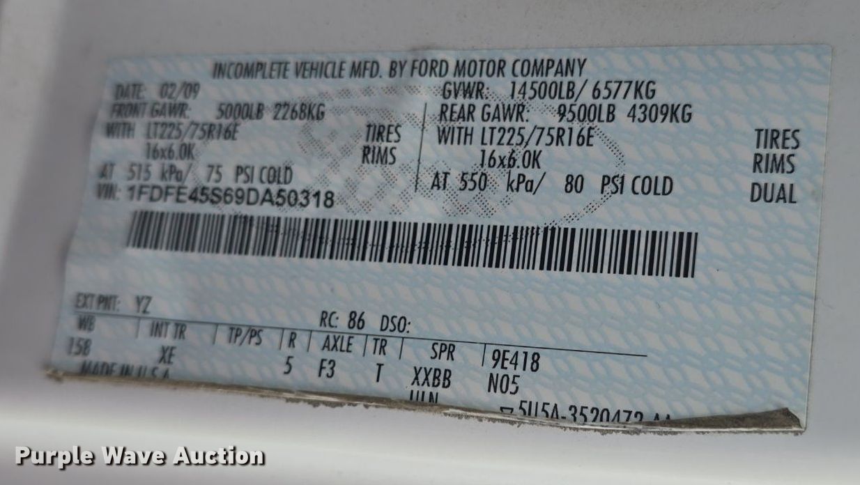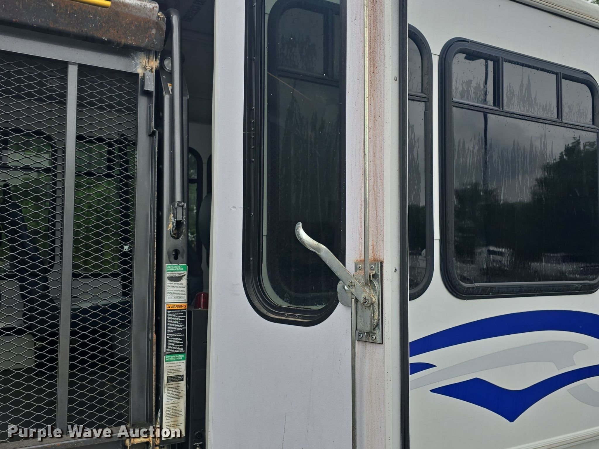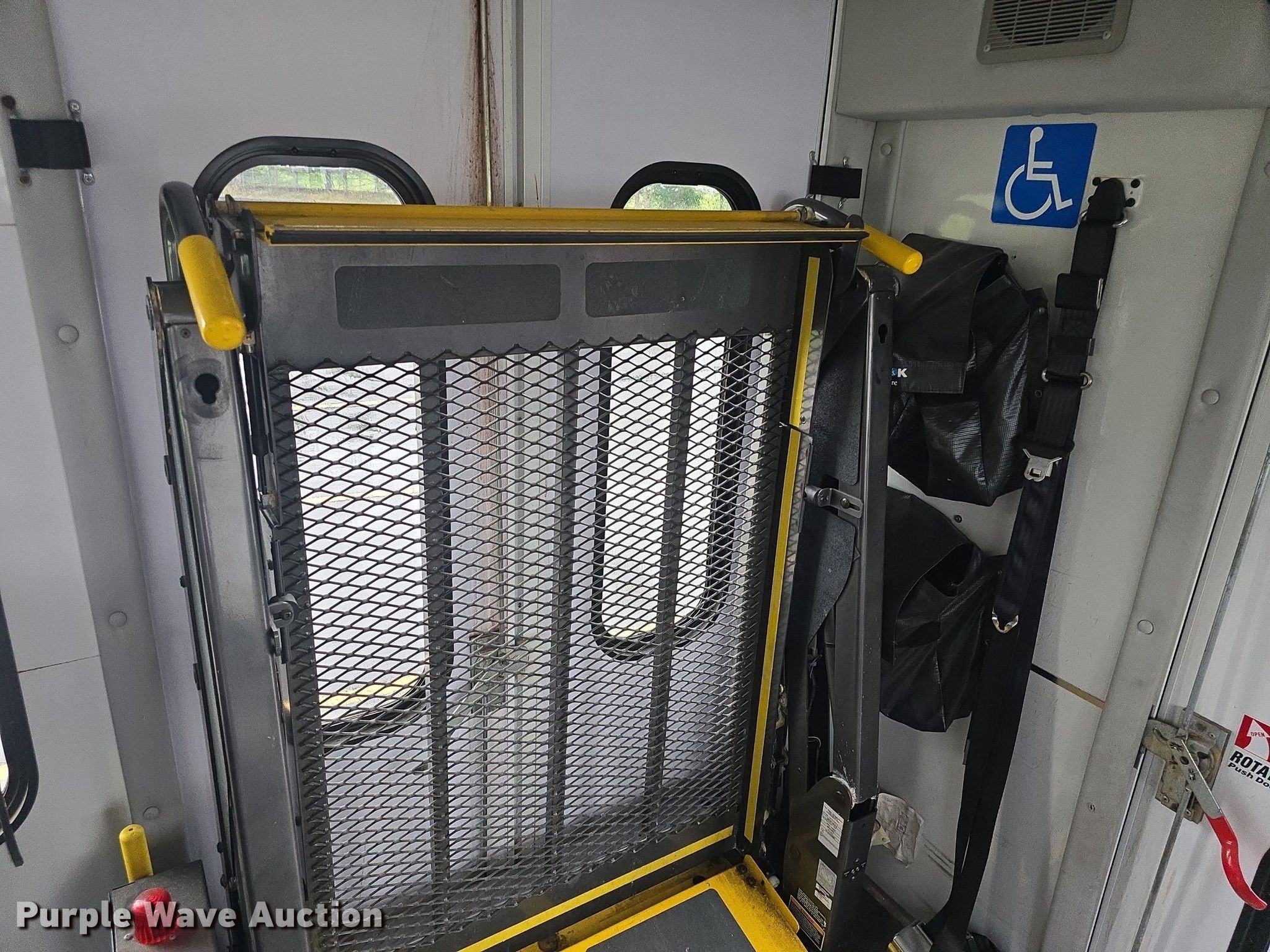 2009 Ford E450 Super Duty shuttle bus. Miles: 178,442 on odometer, Miles or hours may vary, unit still in use, VIN: 1FDFE45S69DA50318, Unit #: 9. Engine Displacement: 6.8L V10 SOHC, Cylinders: 10, Fuel type: Gas. Transmission Automatic. Chassis Axles: Single, Suspension: Spring, Brakes: Hydraulic. Interior AC, Heat, Heated mirrors, Cruise control, Electric passenger sliding door, Passengers: 15, Backup camera, Wheelchair lift. Tires Size: 225/75R16. Notes Seatbelts harness issues, some do not retract, Driver side rear seat issue, will not unfold, Windshield chipped or cracked, Control box missing. Kansas title. Title distribution may be delayed up to 14 days from verification of funds. Manhattan, KS 66502