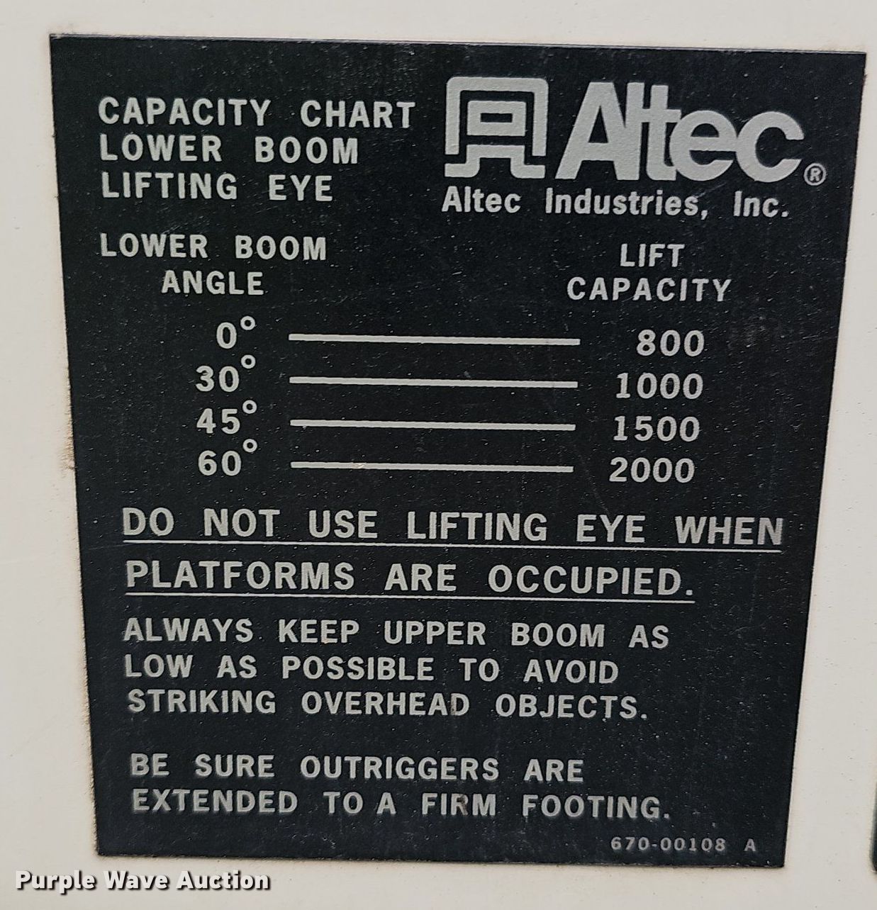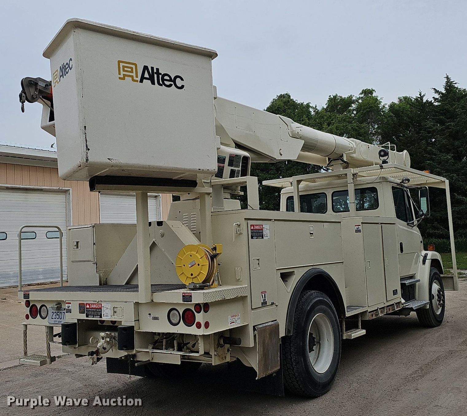 1999 Freightliner FL80 bucket truck. Miles: 3,689 on odometer, Hours: 1,088 on meter, VIN: 1FV6JFBB6XHB04374. Engine Cummins, Displacement: 5.9L, Cylinders: 6, Fuel type: Diesel. Transmission Automatic. Chassis Axles: Single, Suspension: Spring, Brakes: Air, PTO, GVWR: 35,000 lbs, Wheelbase: 188". Interior Heat, Cruise control. Features Bed Altec, Serial: 37-70130, 15' L x 93" W, Boom Altec AM855, Serial: 0200BB1861, Mast height: 55', Maximum lift capacity: 700 lbs, Boom type: Articulating, Insulated, Man basket, Boom controls Ground, Platform/ basket, Material handler. Tires Size: 11R22.5. Nebraska title. Seller is a government entity who will be assigning and distributing the title. Please contact the seller for distribution questions. Village of DeWitt. De Witt, NE 68341