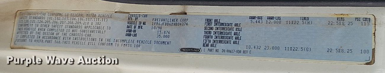 Purple Wave is selling a used Bucket Truck in Nebraska. This item is a 1999 Freightliner FL80 bucket truck with the following: Miles: 3,689 on odometer, Hours: 1,088 on meter, VIN: 1FV6JFBB6XHB04374