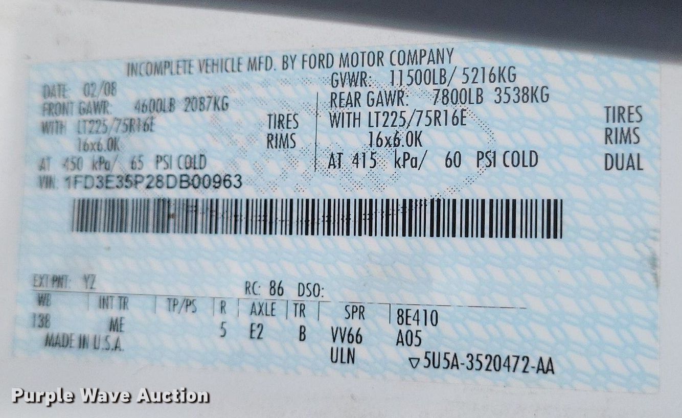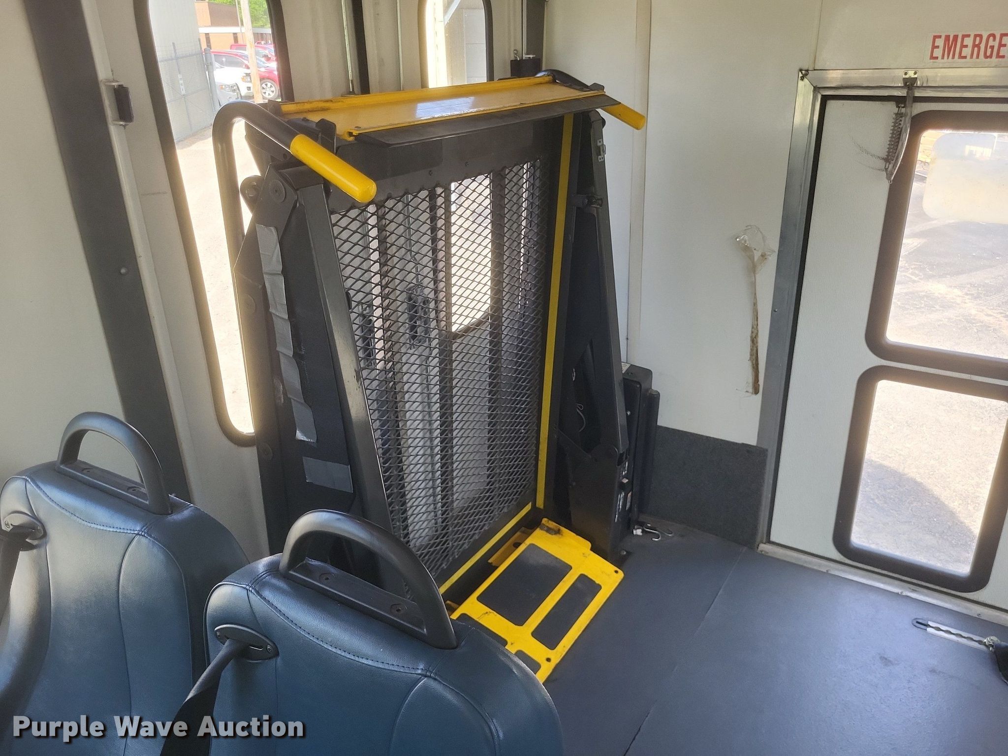 2008 Ford E350 Super Duty shuttle bus. Miles: 160,579 on odometer, VIN: 1FD3E35P28DB00963. Engine Displacement: 6.0L, Cylinders: 8, Fuel type: Diesel. Transmission Automatic. Chassis Axles: Single, Suspension: Spring, Brakes: Hydraulic, GVWR: 11,500 lbs. Interior AC, Heat, Cruise control, Auxiliary controls, Passengers: 8, Adult seats: 8, Wheelchair lift. Tires Size: LT225/75R16. Notes Non-operational wheelchair lift. Missouri title. Dunklin County Transit. Malden, MO 63863
