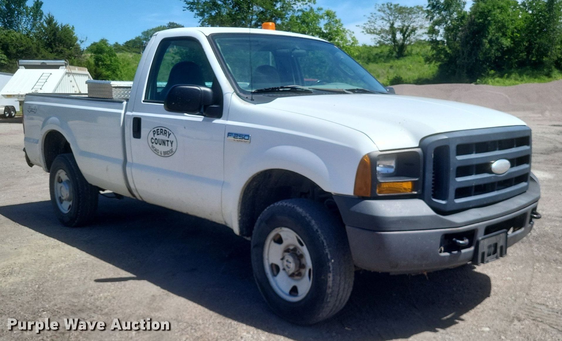 2006 Ford F250 Super Duty XL pickup truck. Miles: 156,460 on odometer, VIN: 1FTNF21586ED27848. Engine Displacement: 5.4L V8 SOHC, Cylinders: 8, Fuel type: Gas. Transmission Automatic, Four wheel drive. Interior AC, heat. Tires Size: 245/75R17. Notes Brake controller, Dash warning indicator: Check engine. Missouri title. Title distribution may be delayed up to 14 days from verification of funds. PERRY COUNTY, MO. Perryville, MO 63775