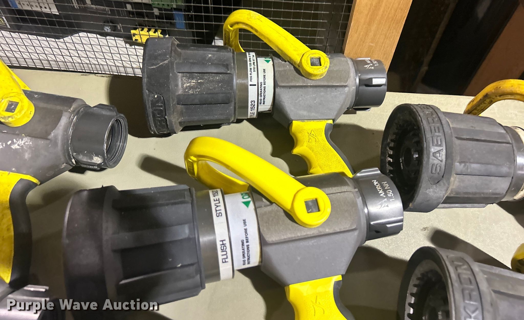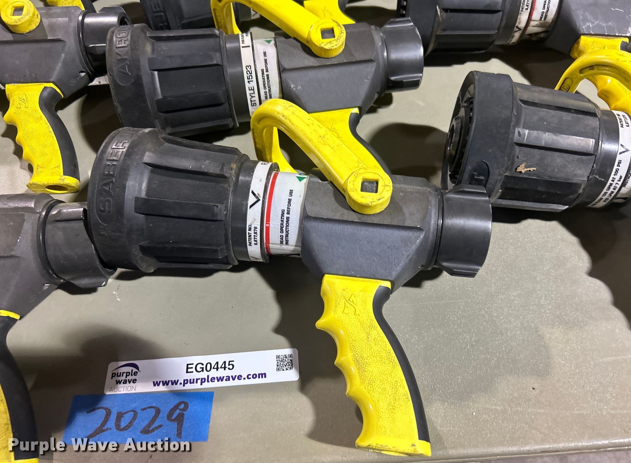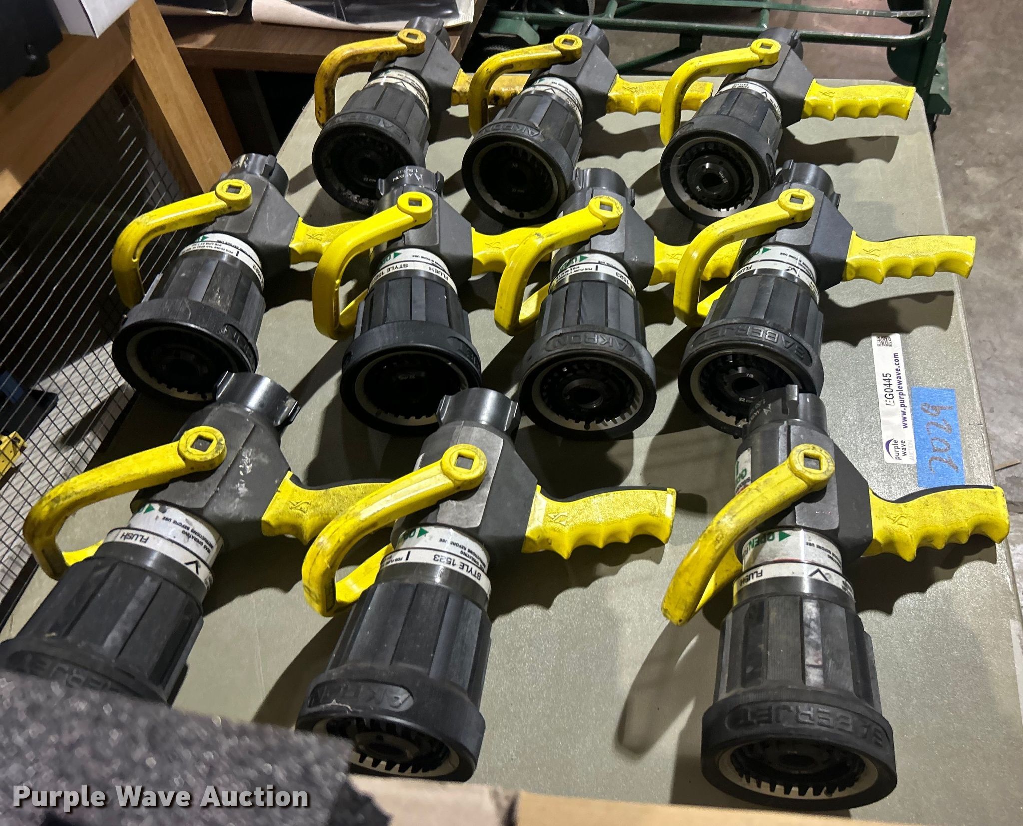Purple Wave is selling a used Lawn and Garden in Oklahoma. This item is a (10) Akron Brass 2-1/2" Saberjet nozzles with the following: Unit #: 2029