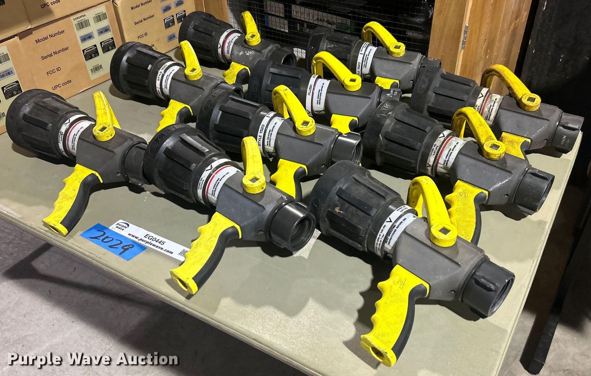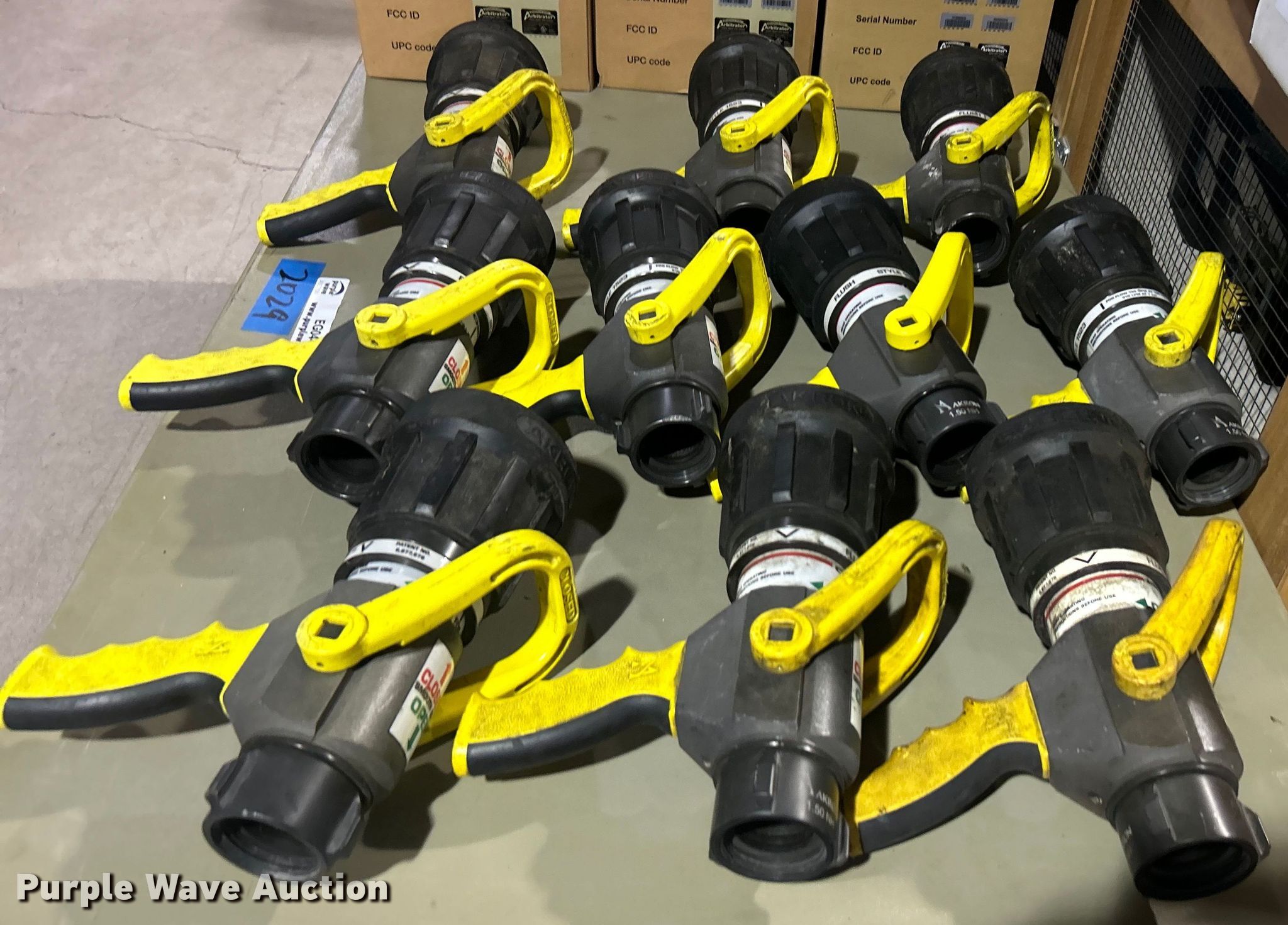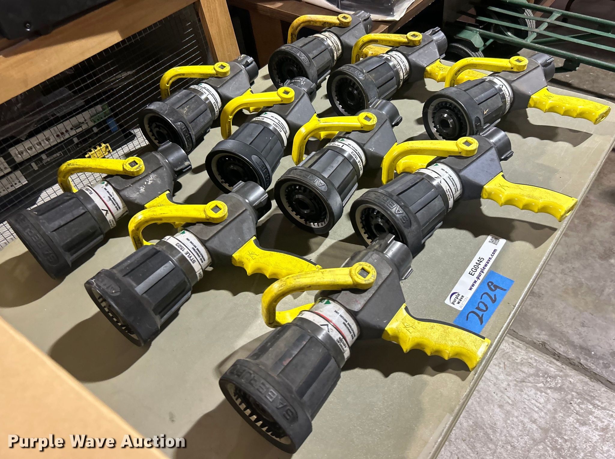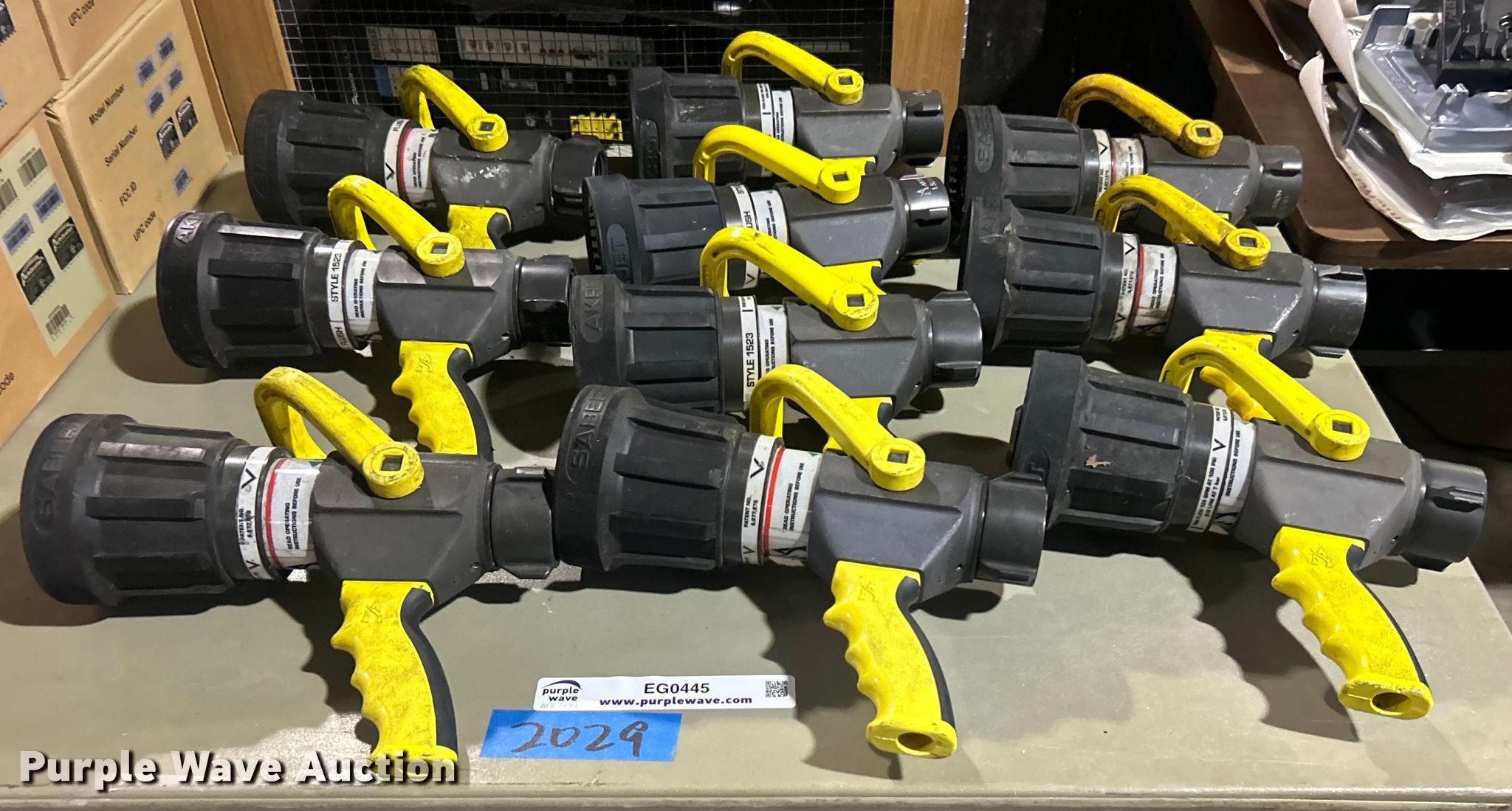Purple Wave is selling a used Lawn and Garden in Oklahoma. This item is a (10) Akron Brass 2-1/2" Saberjet nozzles with the following: Unit #: 2029