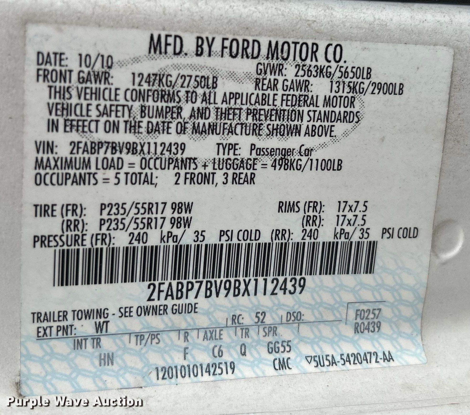 - VIN: 2FABP7BV9BX112439