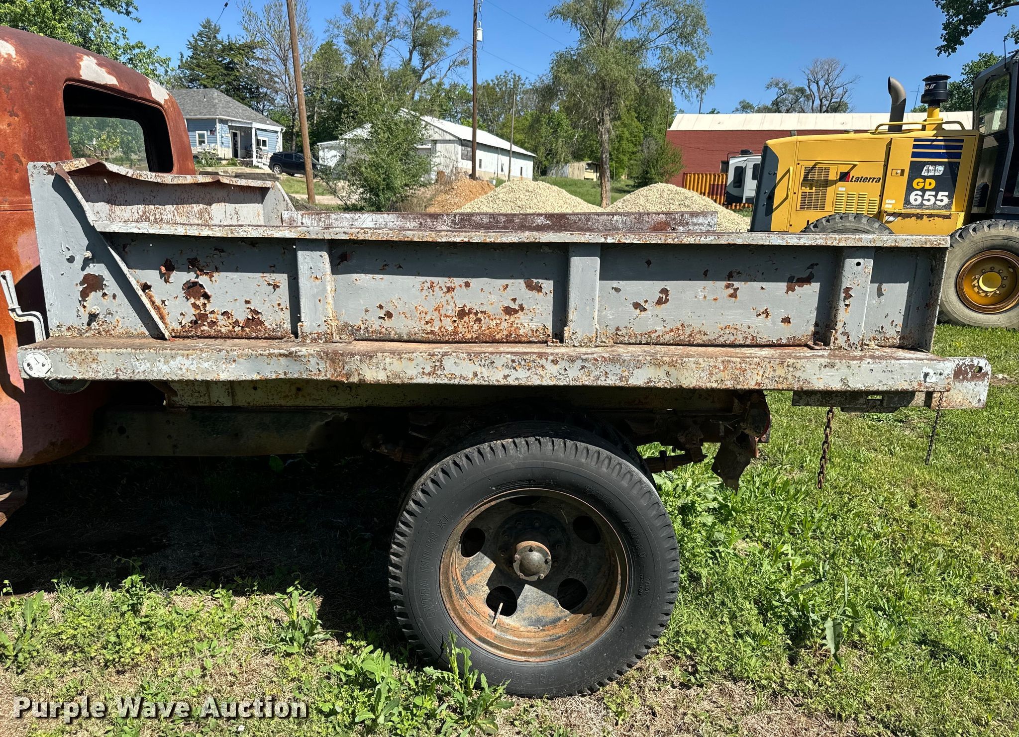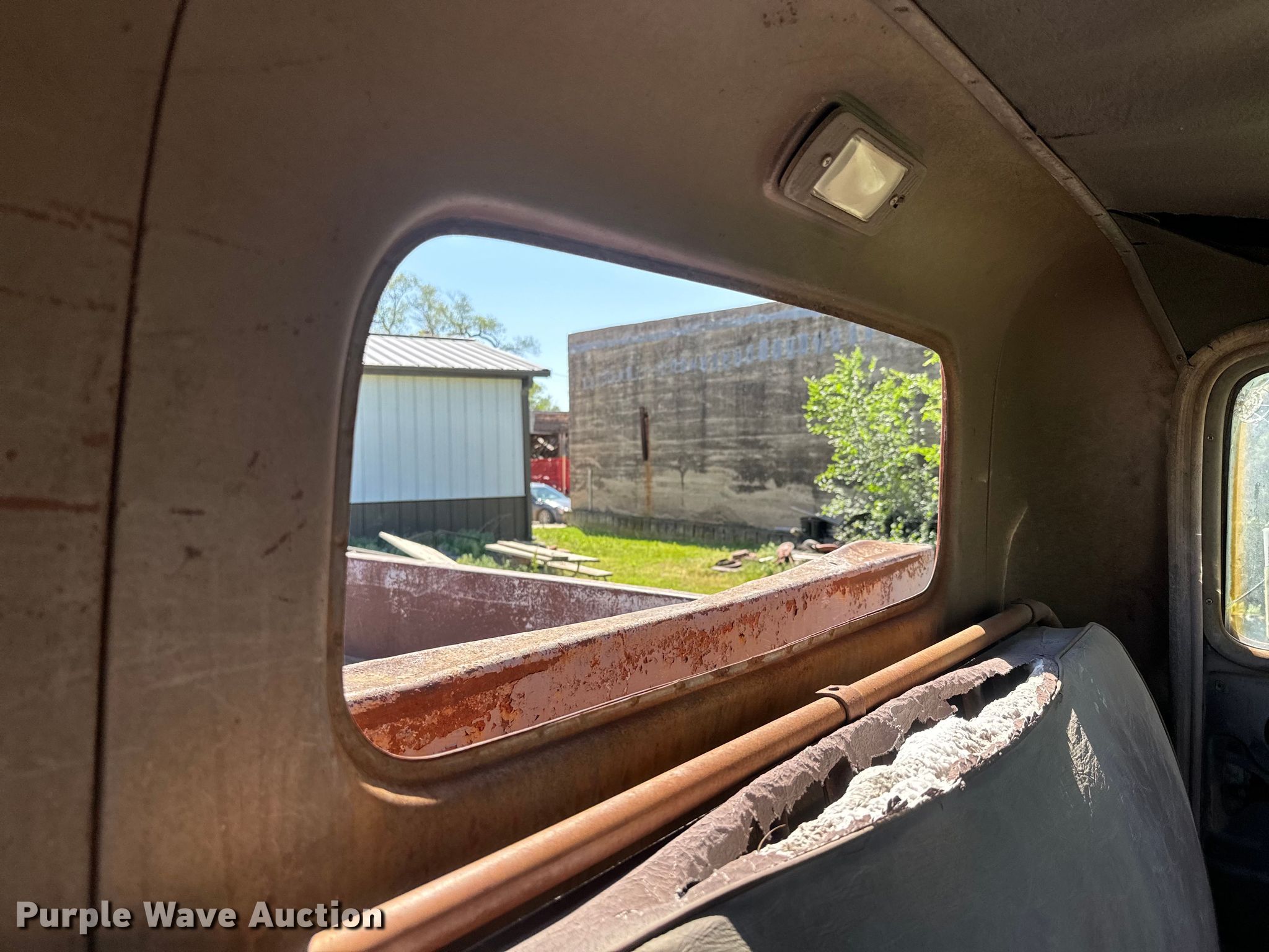 1950 Chevrolet 4100 dump truck. Miles: 21,471 on odometer, VIN: 5TJB1108. Engine Cylinders: 6, Fuel type: Gas. Transmission Manual, Speed: 4. Features Dump bed 8' L x 78.5" W. Tires Size: 7.50-20. Notes Rear glass missing, Non-operational unit. Kansas antique title. City of Beverly. Beverly, KS 67423