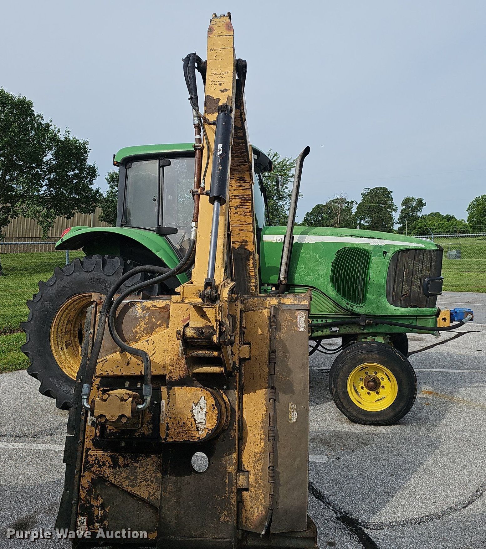 2006 John Deere 6615 tractor. Hours: 29 on meter, Actual hours unknown, Serial: L06615B484585, Unit #: 652. Engine Cylinders: 6, Fuel type: Diesel. Transmission Synchro, 16F - 16R, Left-hand reverser, Differential lock. Operators station AC, Heat. Features PTO: 540, Seven pin outlet, Hydraulic remote sets Rear: 1, Side boom rotary mower Width: 55". Tires Front: 225/90R16, Rear: 460/85R34, Wheel weights: 1. Notes Mower spindle issues, loose. Greene County, MO. Springfield, MO 65803
