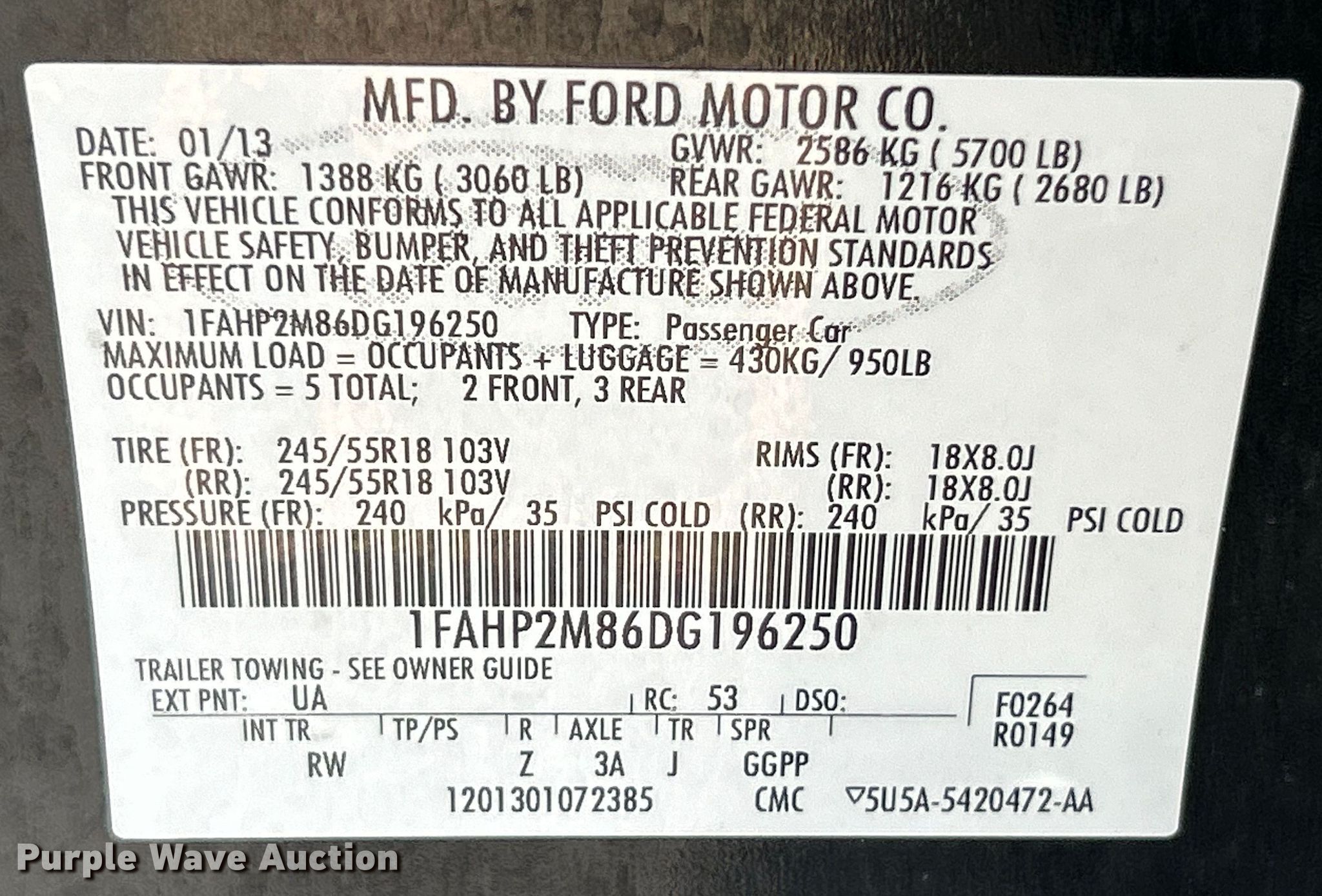 Purple Wave is selling a used Passenger Vehicle in Missouri. This item is a 2013 Ford Taurus Police Interceptor with the following: Miles: 54,499 on odometer, VIN: 1FAHP2M86DG196250