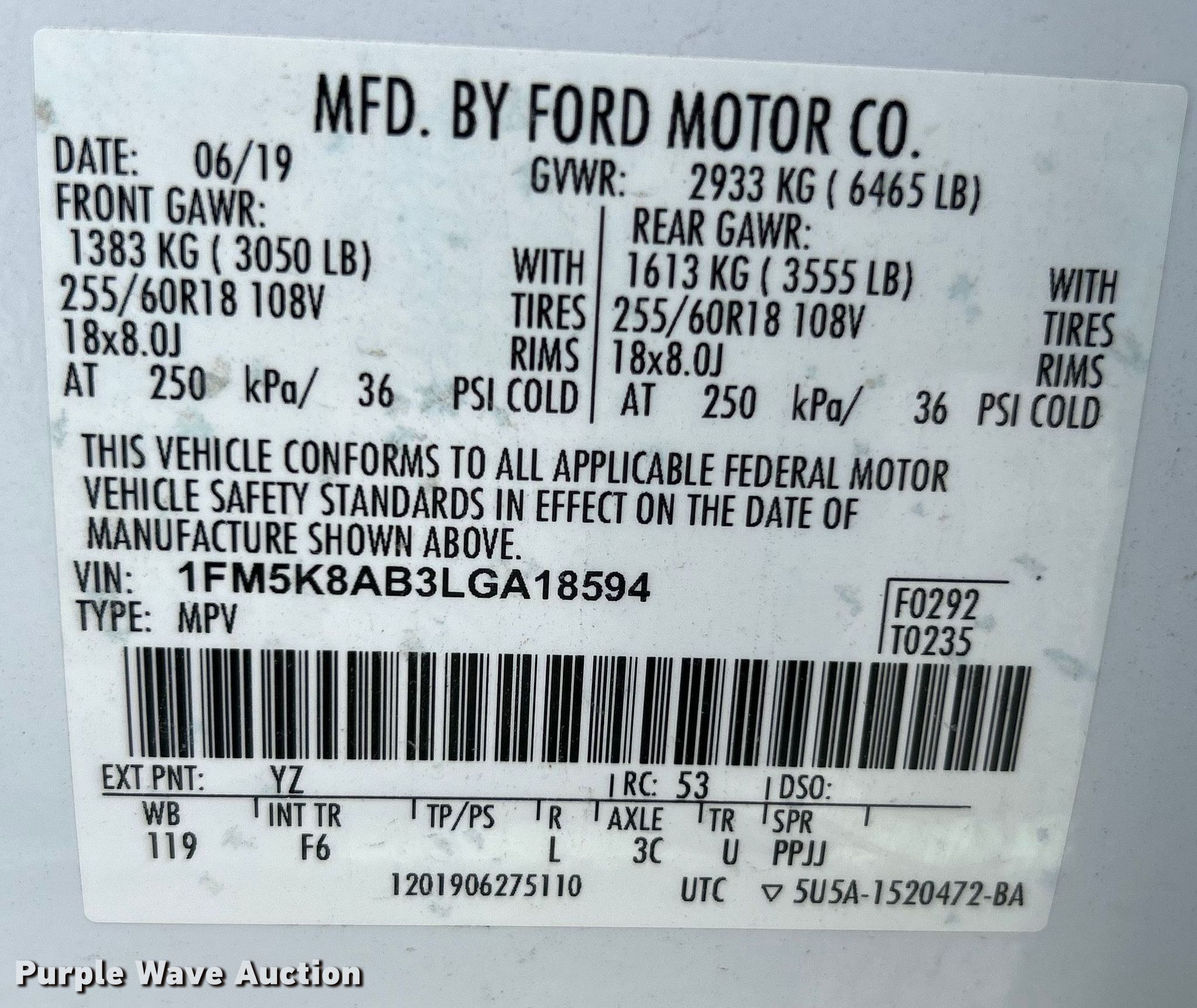 - VIN: 1FM5K8AB3LGA18594