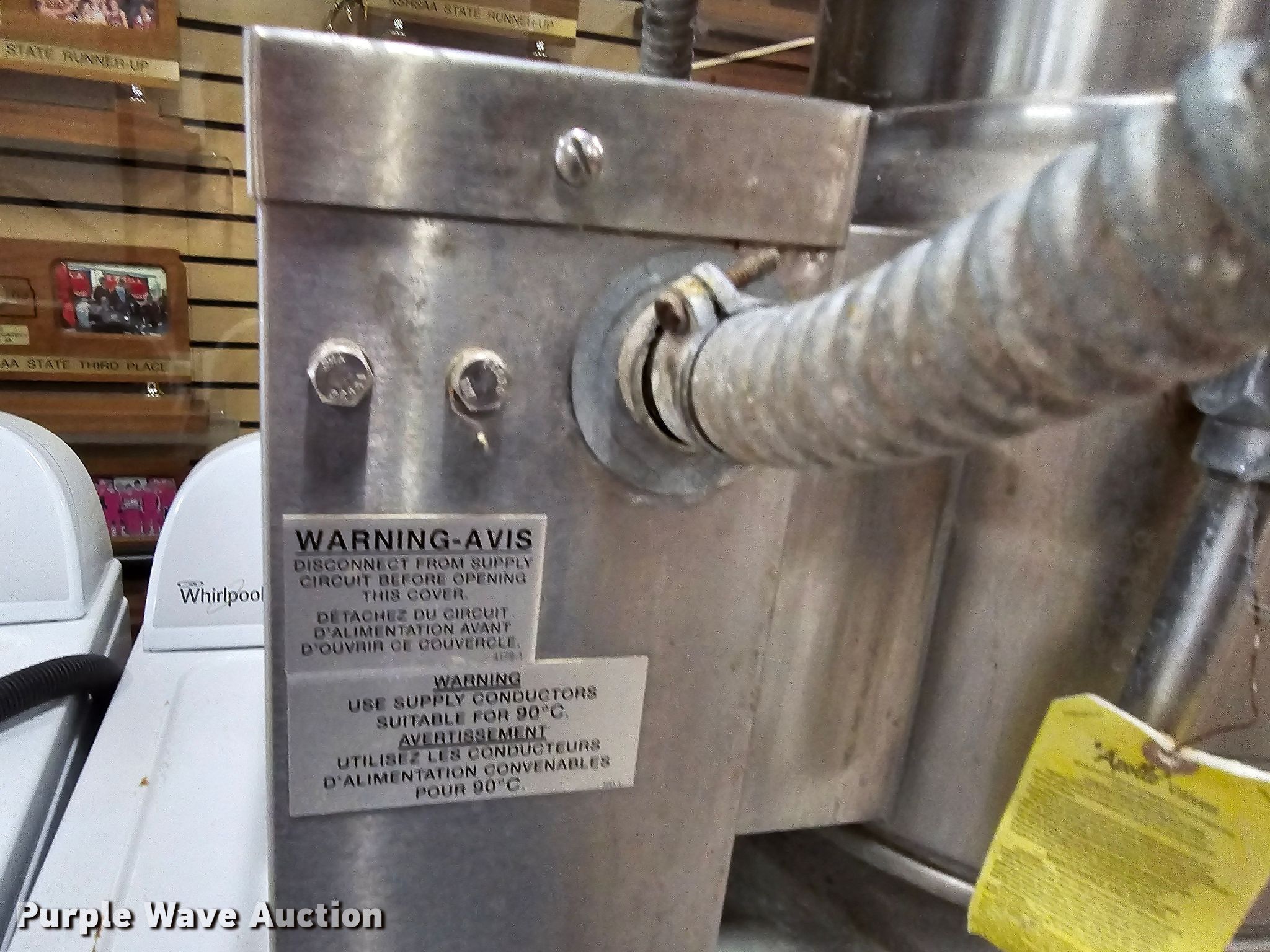 Purple Wave is selling a used Restaurant Equip. in Kansas. This item is a 2007 Intek IEC-6TW steam kettle with the following: Serial: 76242-11CC-5509, Phase: Three, No plug end