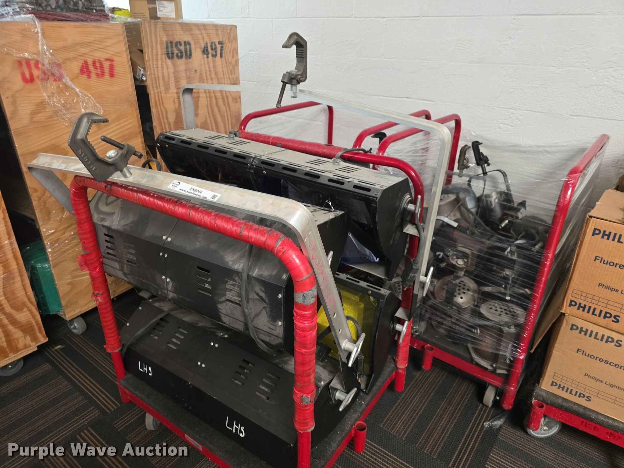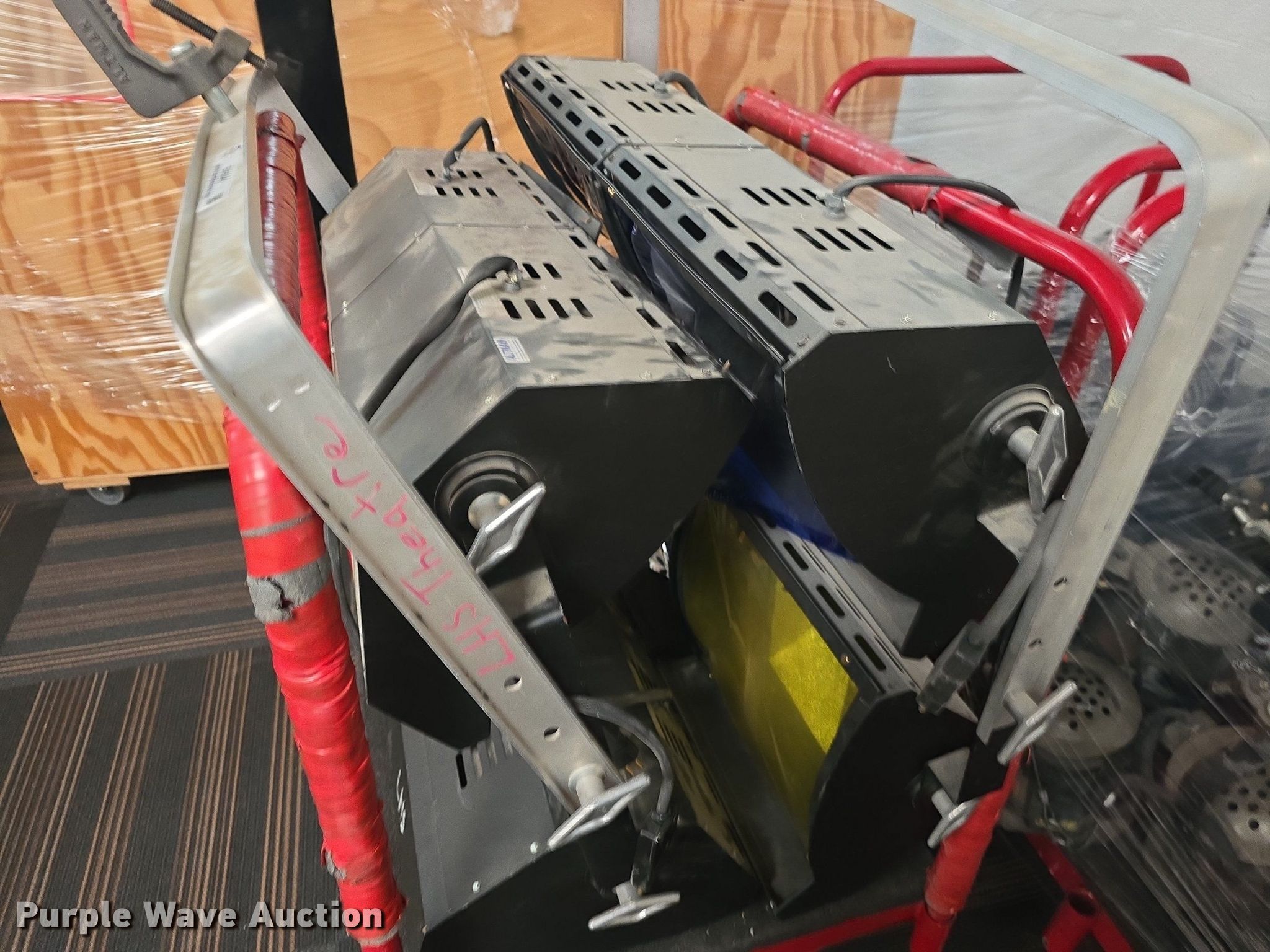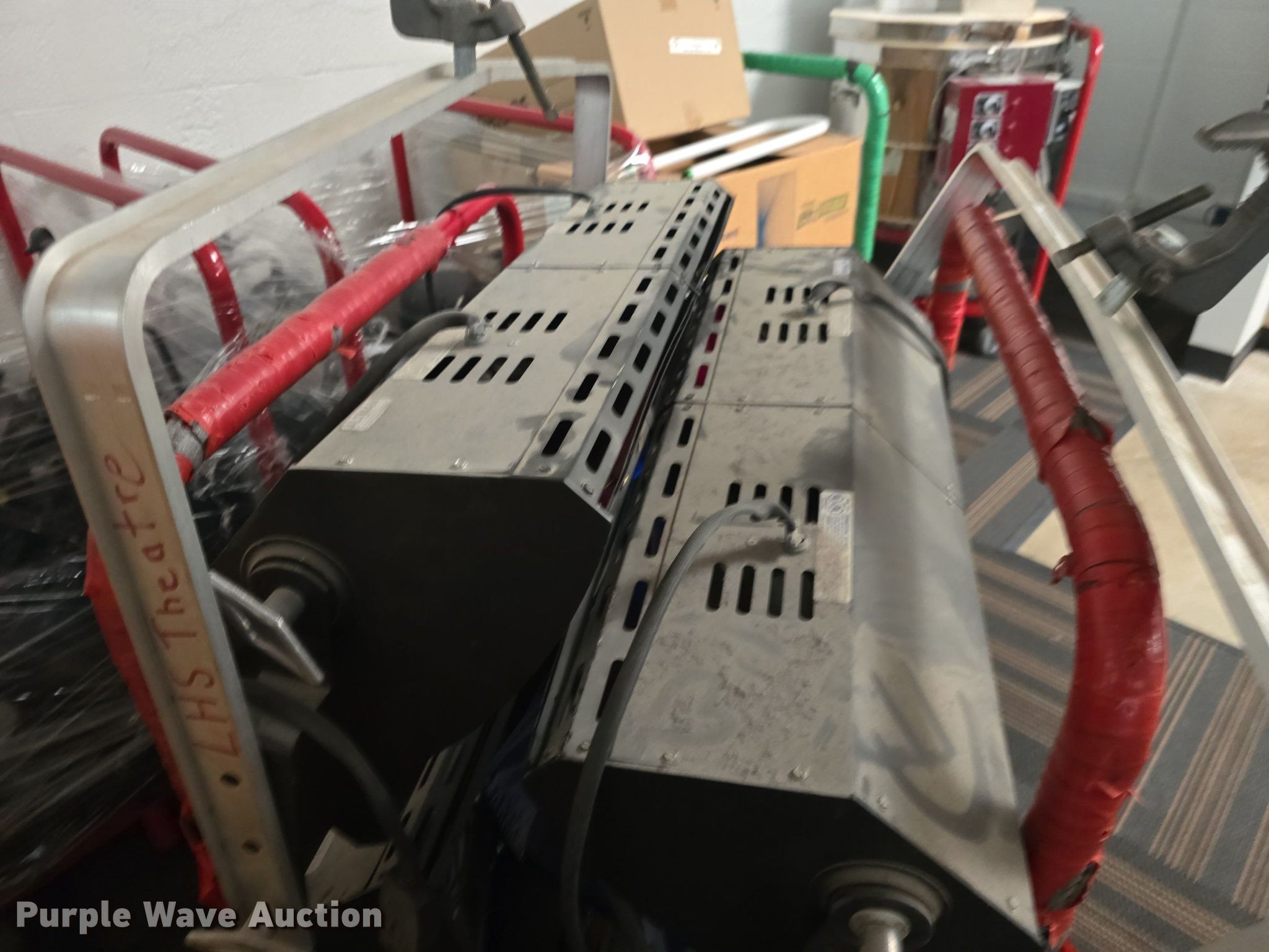 Purple Wave is selling a used Building Materials in Kansas. This item is a (4) Atlman stage lights with the following: Width: 32", Spotlights, Carts not included
