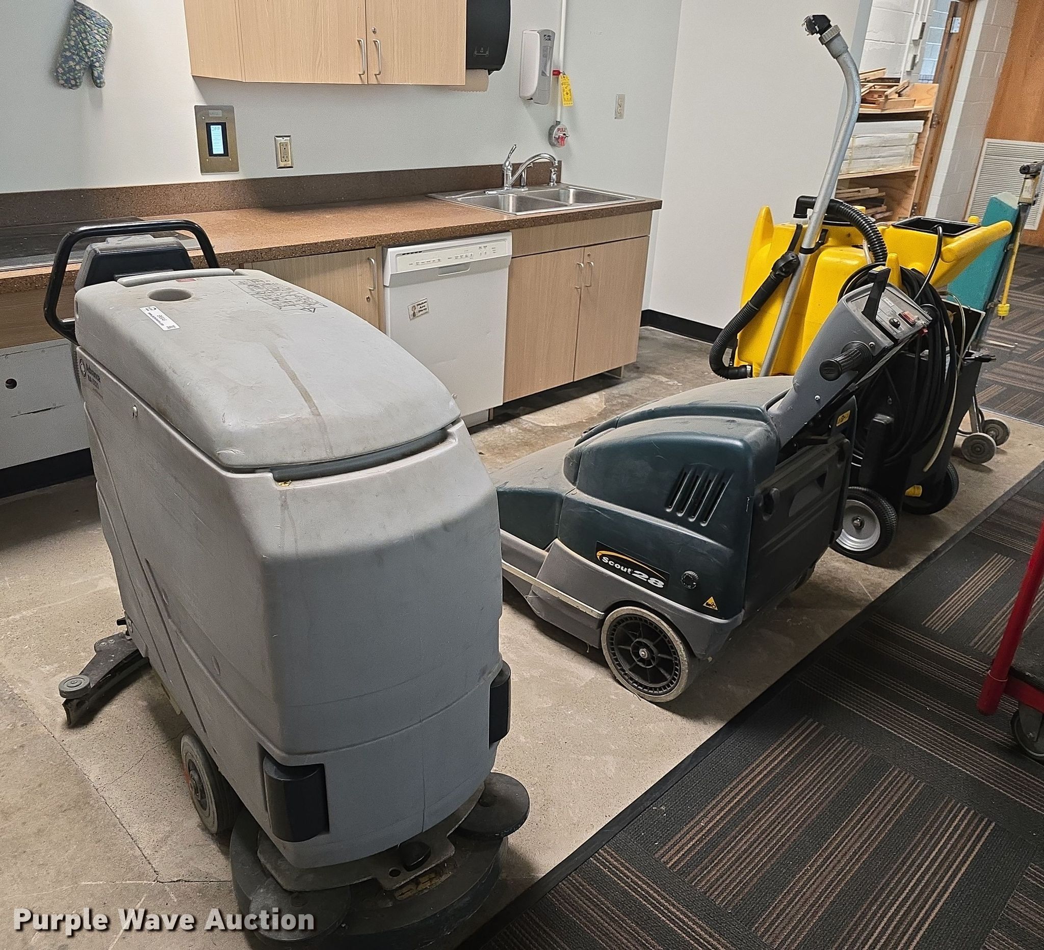 Purple Wave is selling a used All Other Household Items in Kansas. This item is a Janitorial equipment with the following: Advance BA5321 floor scrubber, Nobles Scout 28 sweeper, Kaivac cleaning systems cart, Service master buffer