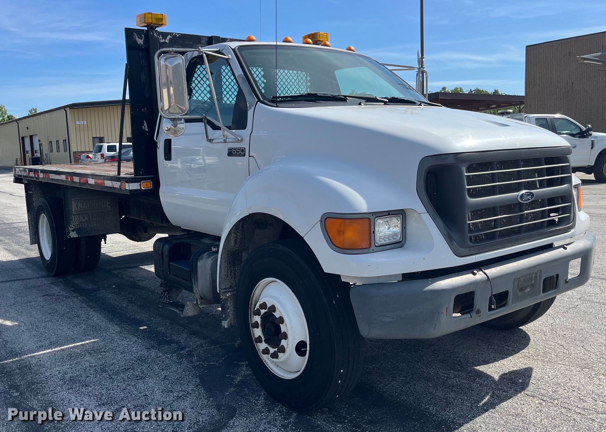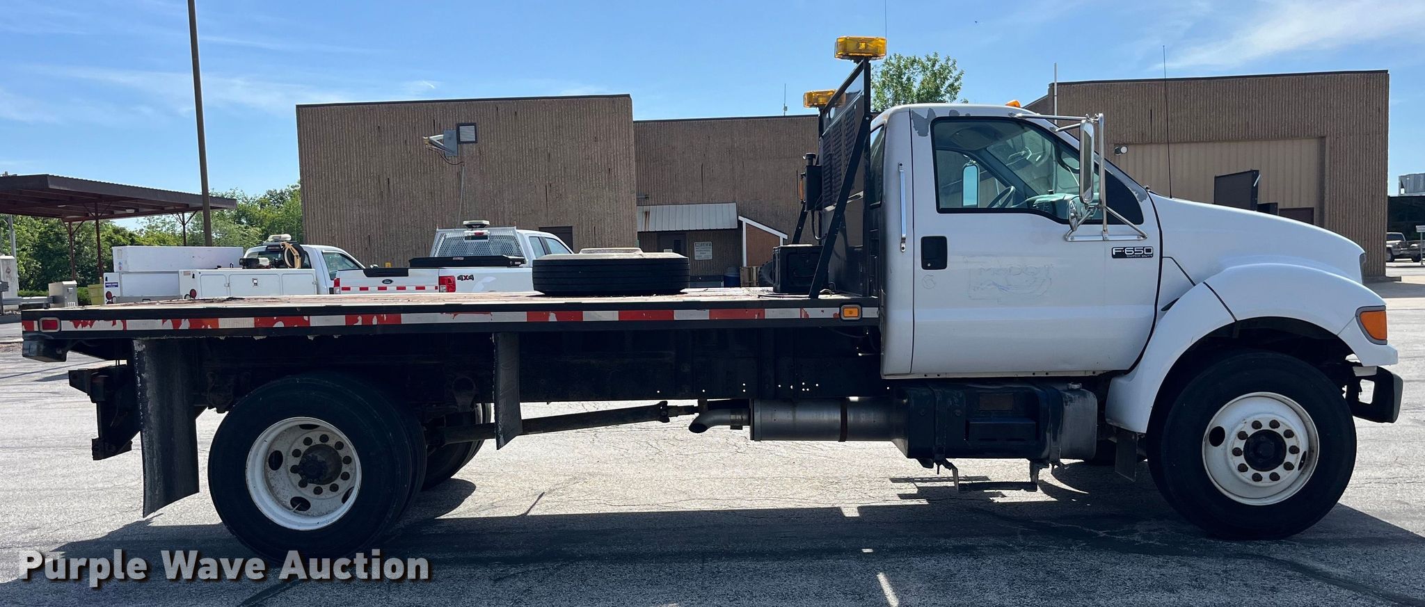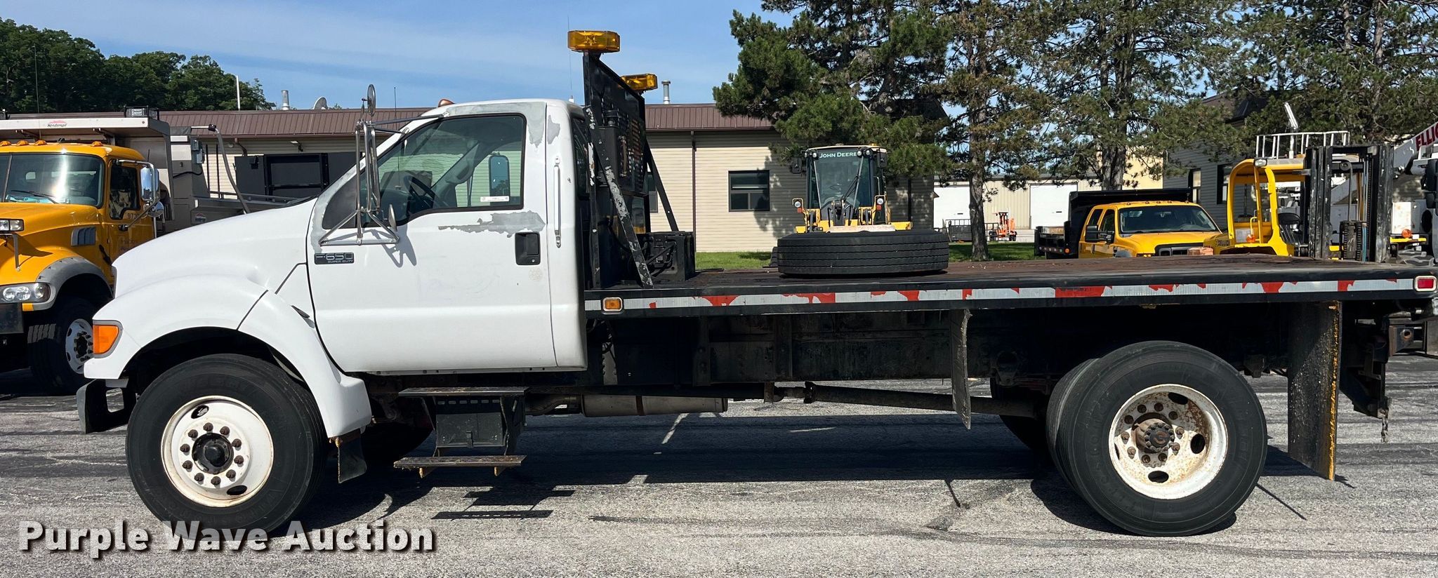Purple Wave is selling a used Flat Bed Truck in Missouri. This item is a 2003 Ford F650 Super Duty XL flatbed truck with the following: Miles: 180,215 on odometer, Hours: 7,632 on meter, VIN: 3FDNF65853MB01540