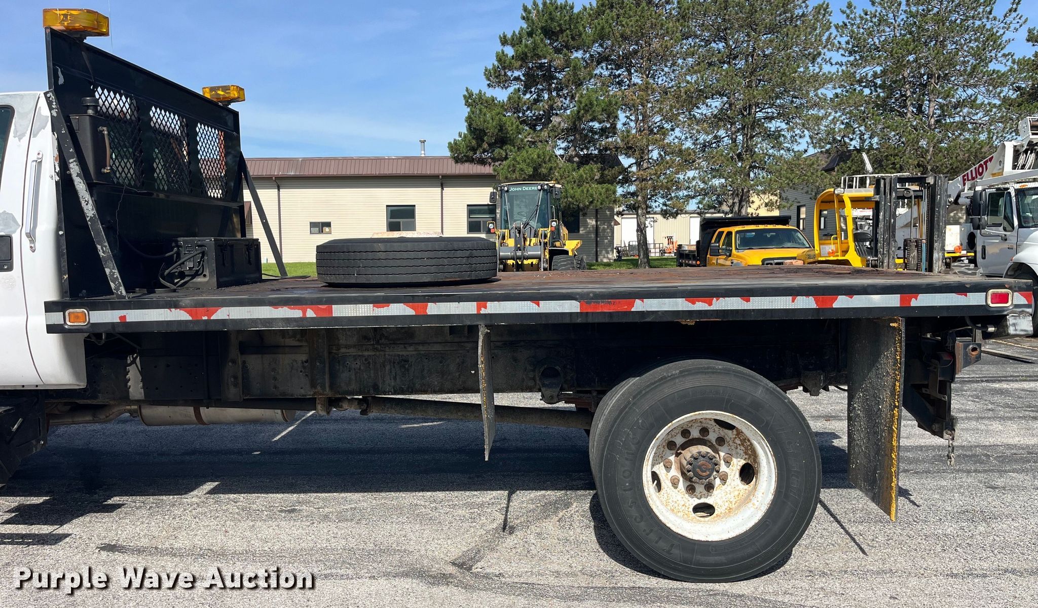 This 2003 Ford F650 Super Duty XL flatbed truck will sell to the highest bidder regardless of price.