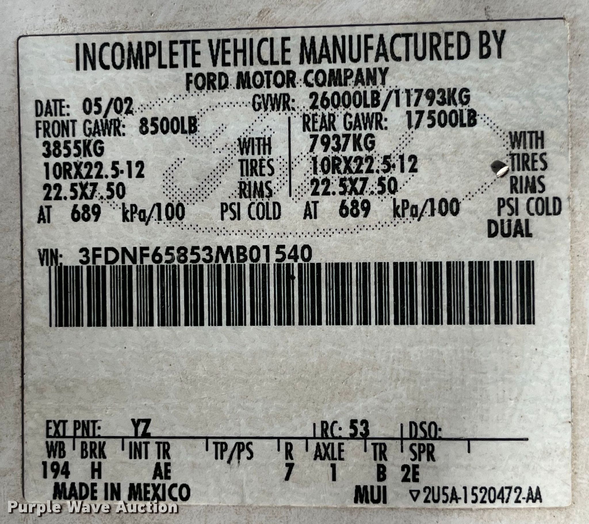 • VIN: 3FDNF65853MB01540