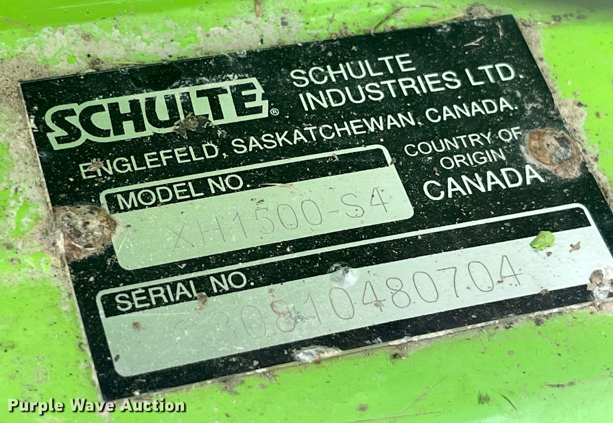 Schulte XH1500-S4 batwing rotary mower. Serial: C30810480704. Features Width: 15', PTO: 1000. Tires Size: 6.50-10. Brookfield Township. Brookfield, MO 64628