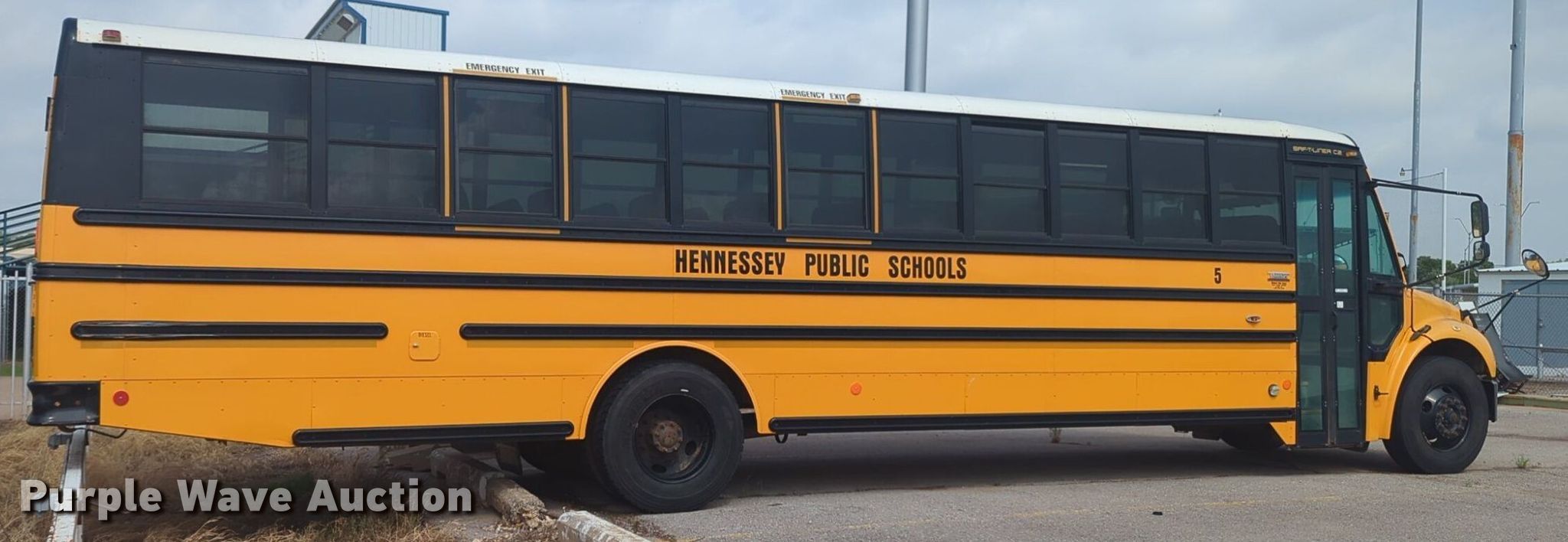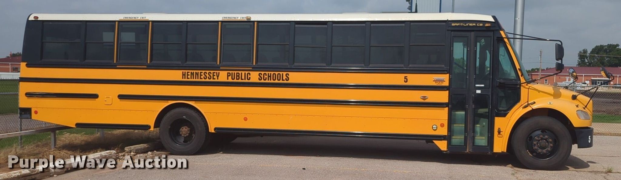 2010 Thomas B2 school bus. Miles: 77,266 on odometer, VIN: 4UZABRDU1ACAK7528. Engine Cummins, Displacement: 6.7L, Cylinders: 6, Fuel type: Diesel. Transmission Automatic. Chassis Axles: Single, Suspension: Spring, Brakes: Hydraulic, GVWR: 29,800 lbs. Interior AC, Heat, Heated mirrors, Cruise control, Electric passenger sliding door, Passengers: 71, Adult seats: 22. Tires Size: 11R22.5. Notes Dead battery. Oklahoma title. Title distribution may be delayed up to 14 days from verification of funds. Hennessey Public Schools. 604 East Oklahoma Street. Hennessey, OK 73742