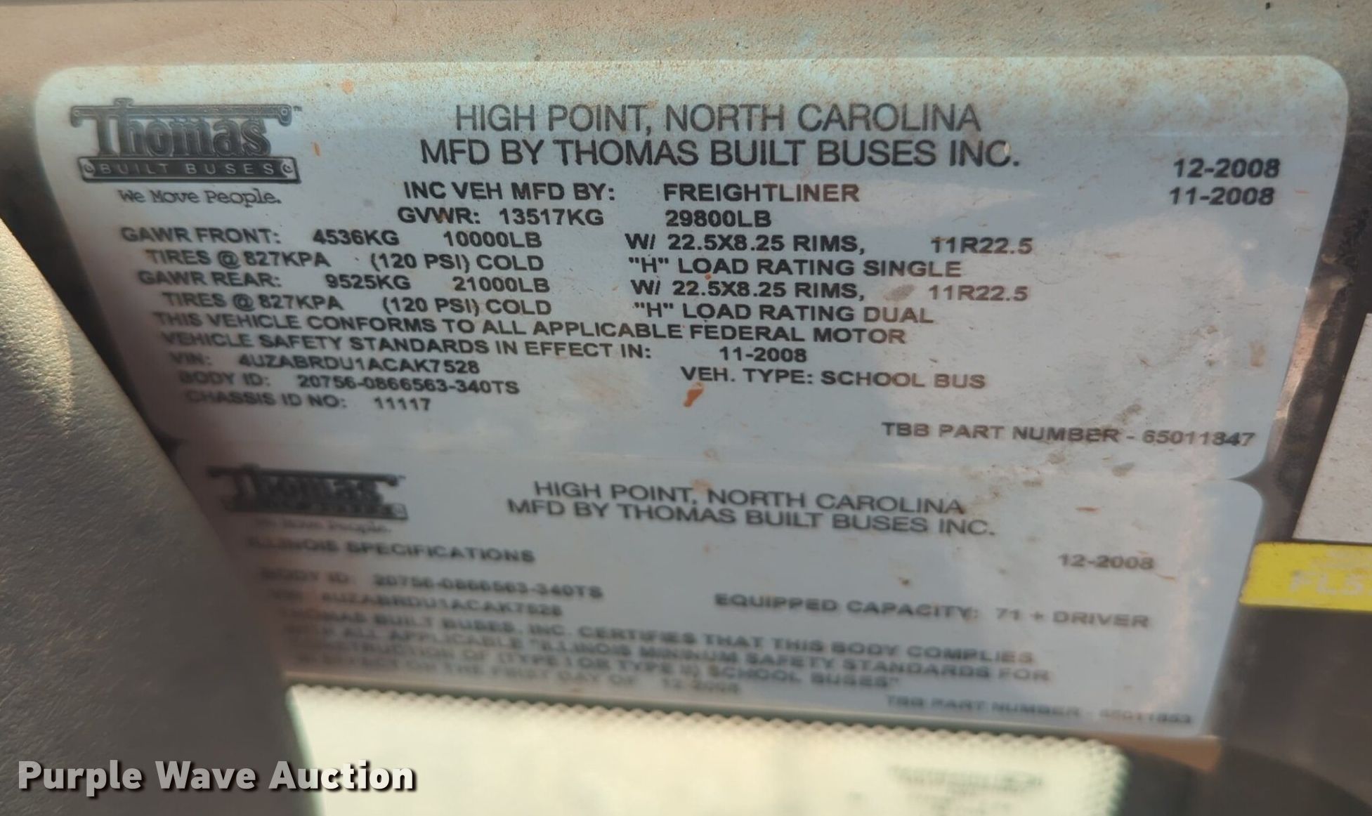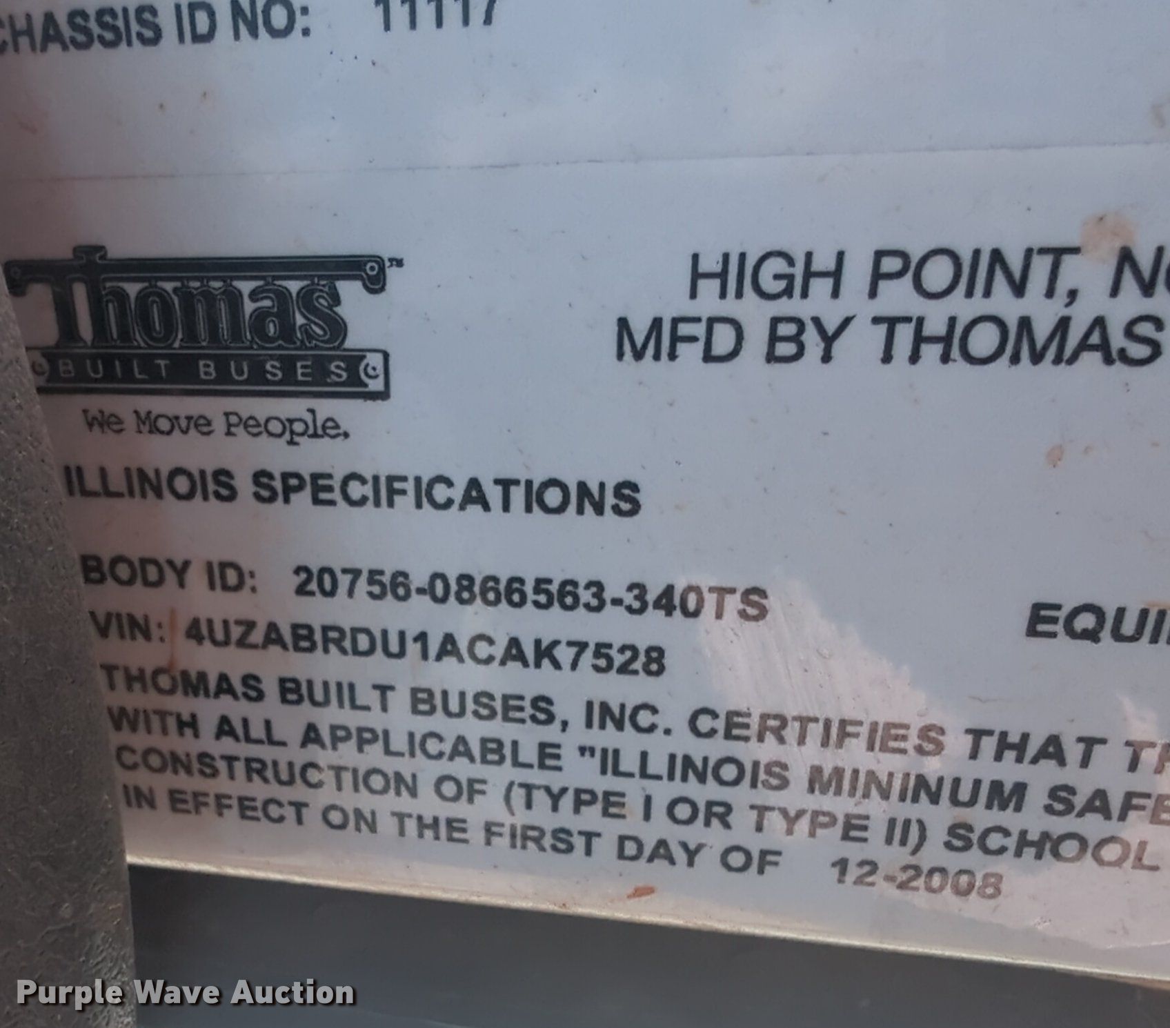 Purple Wave is selling a used Bus in Oklahoma. This item is a 2010 Thomas B2 school bus with the following: Miles: 77,266 on odometer, VIN: 4UZABRDU1ACAK7528