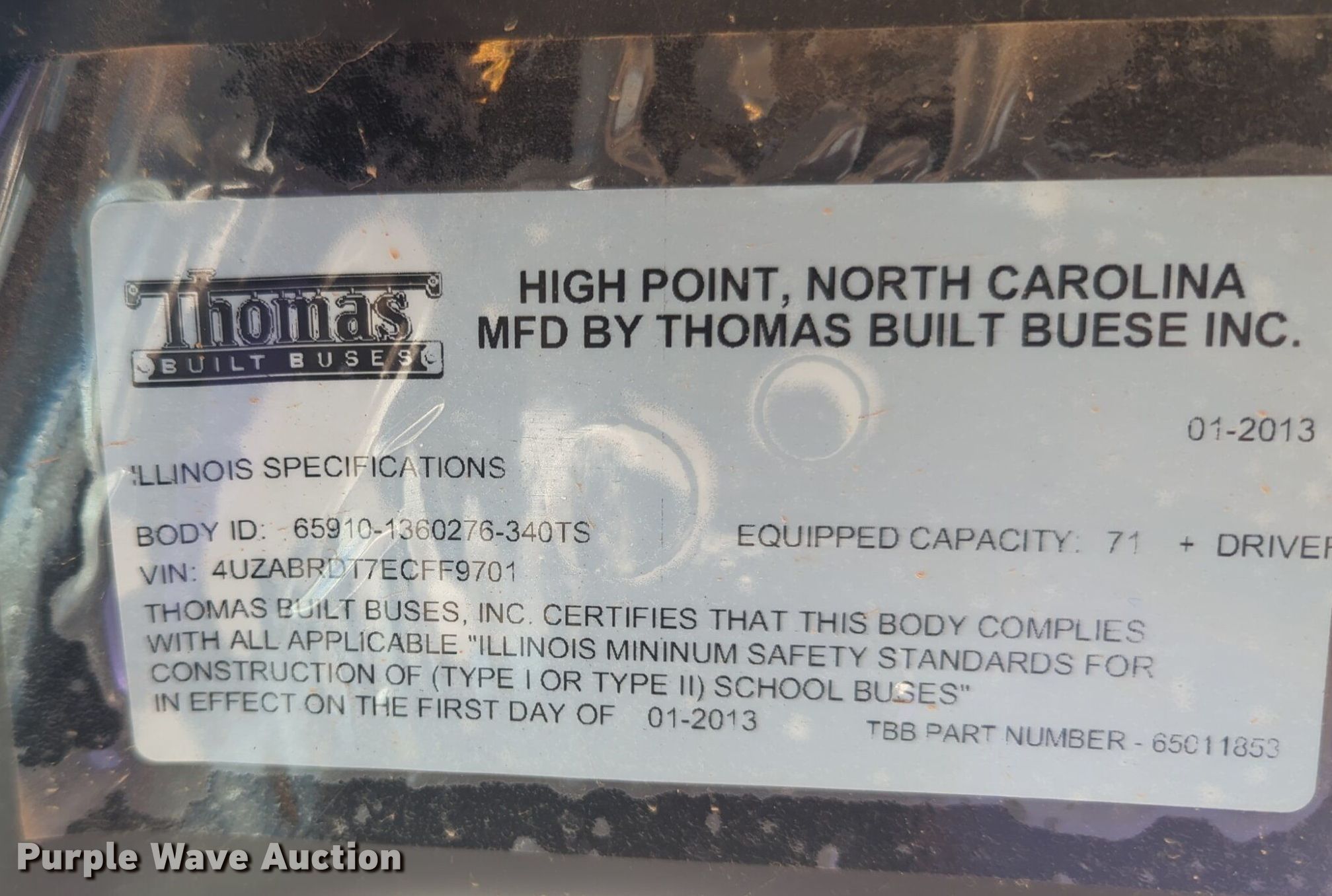 Purple Wave is selling a used Bus in Oklahoma. This item is a 2014 Freightliner B2 school bus with the following: Miles: 85,482 on odometer, VIN: 4UZABRDT7ECFF9701