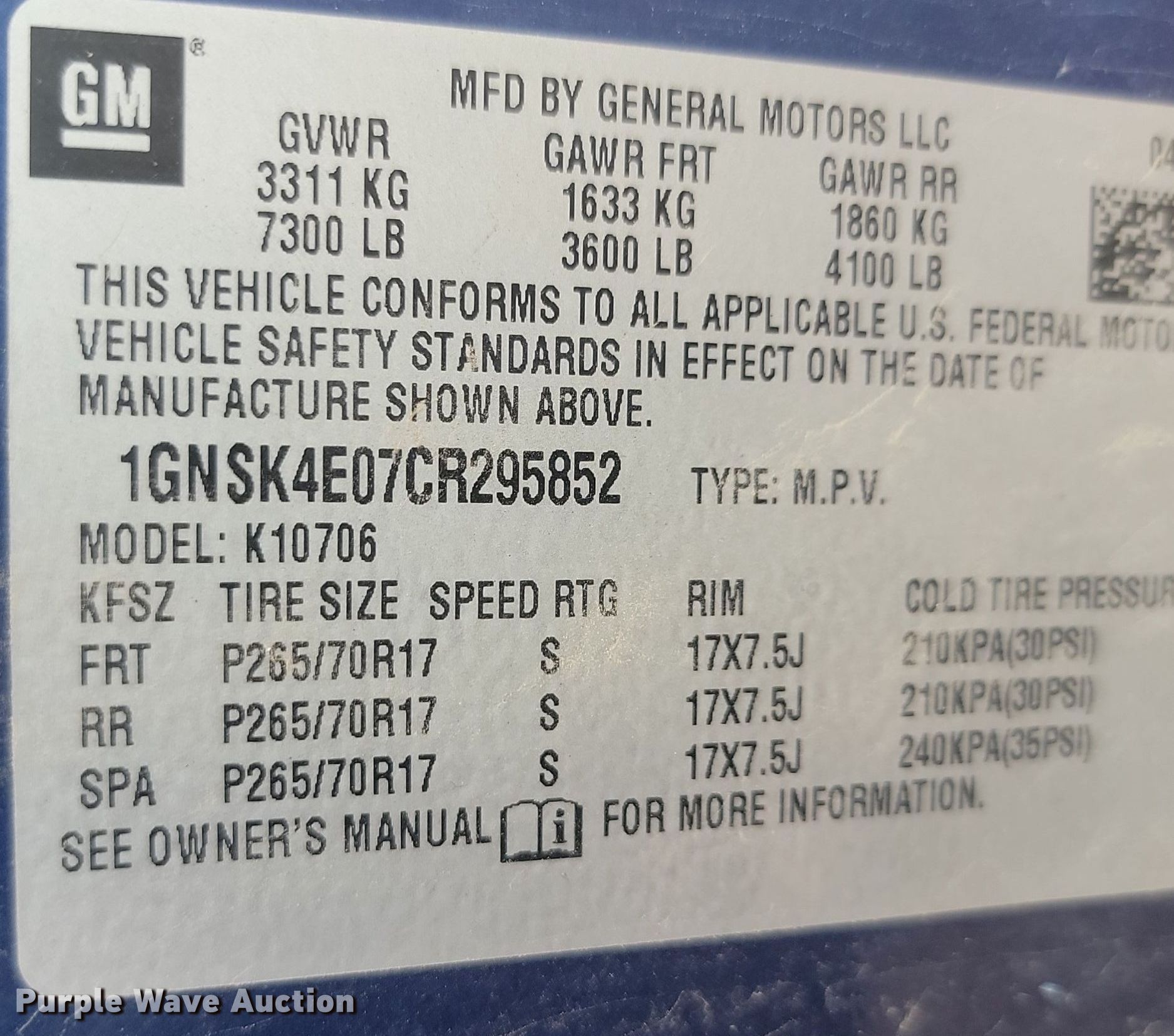 Purple Wave is selling a used Passenger Vehicle in South Dakota. This item is a 2012 Chevrolet Tahoe SUV with the following: Miles: 144,120 on odometer, VIN: 1GNSK4E07CR295852