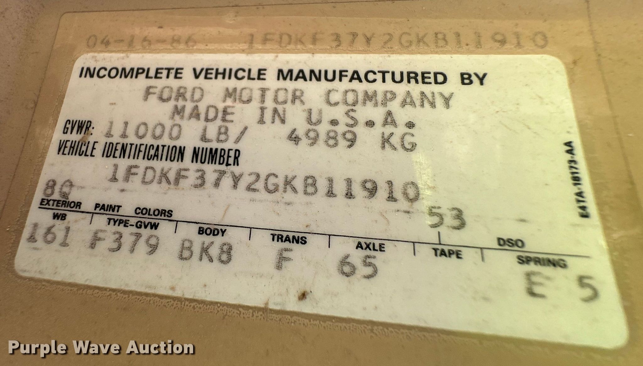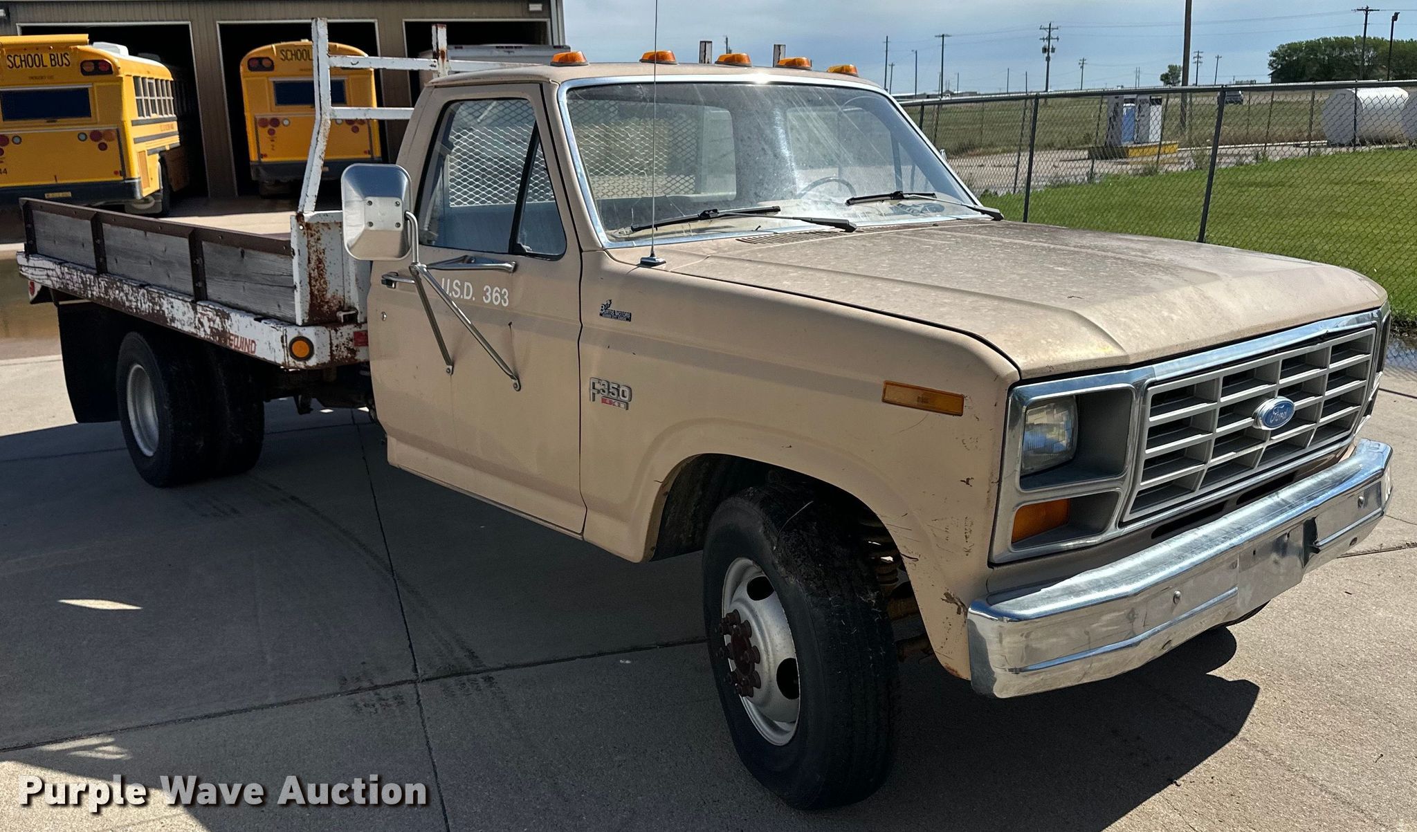 1986 Ford F350 dump flatbed pickup truck. Miles: 47,232 on odometer, VIN: 1FDKF37Y2GKB11910. Engine Displacement: 4.9L L6 OHV, Cylinders: 6, Fuel type: Gas. Transmission Manual, Speed: 4. Interior Heat. Features Dump flatbed 12' L x 94" W. Tires Size: 215/85R16. Notes Dead battery, Possible starter issues, Non-operational unit. Kansas title. Title distribution may be delayed up to 14 days from verification of funds. USD 363 Holcomb. Holcomb, KS 67851