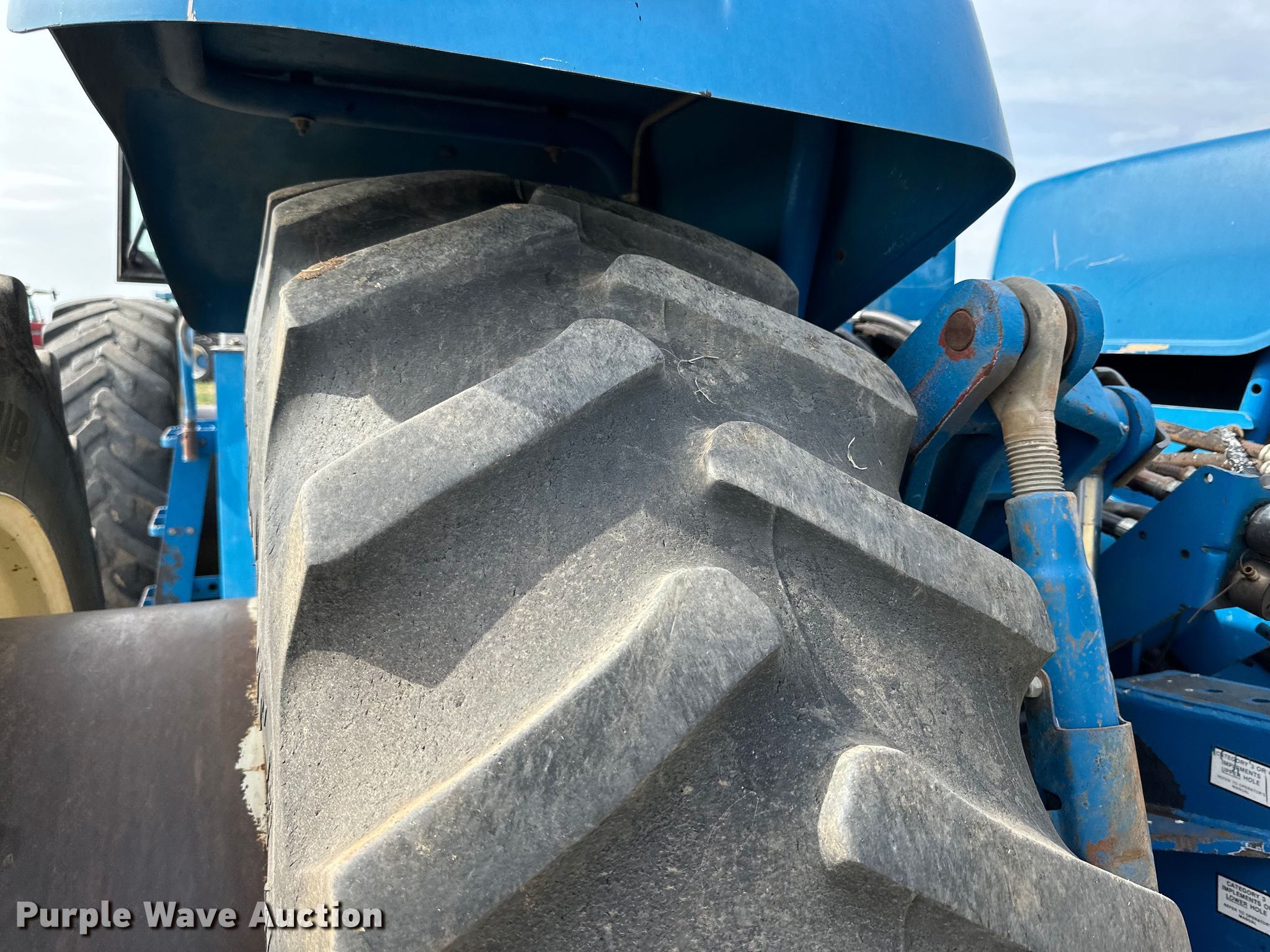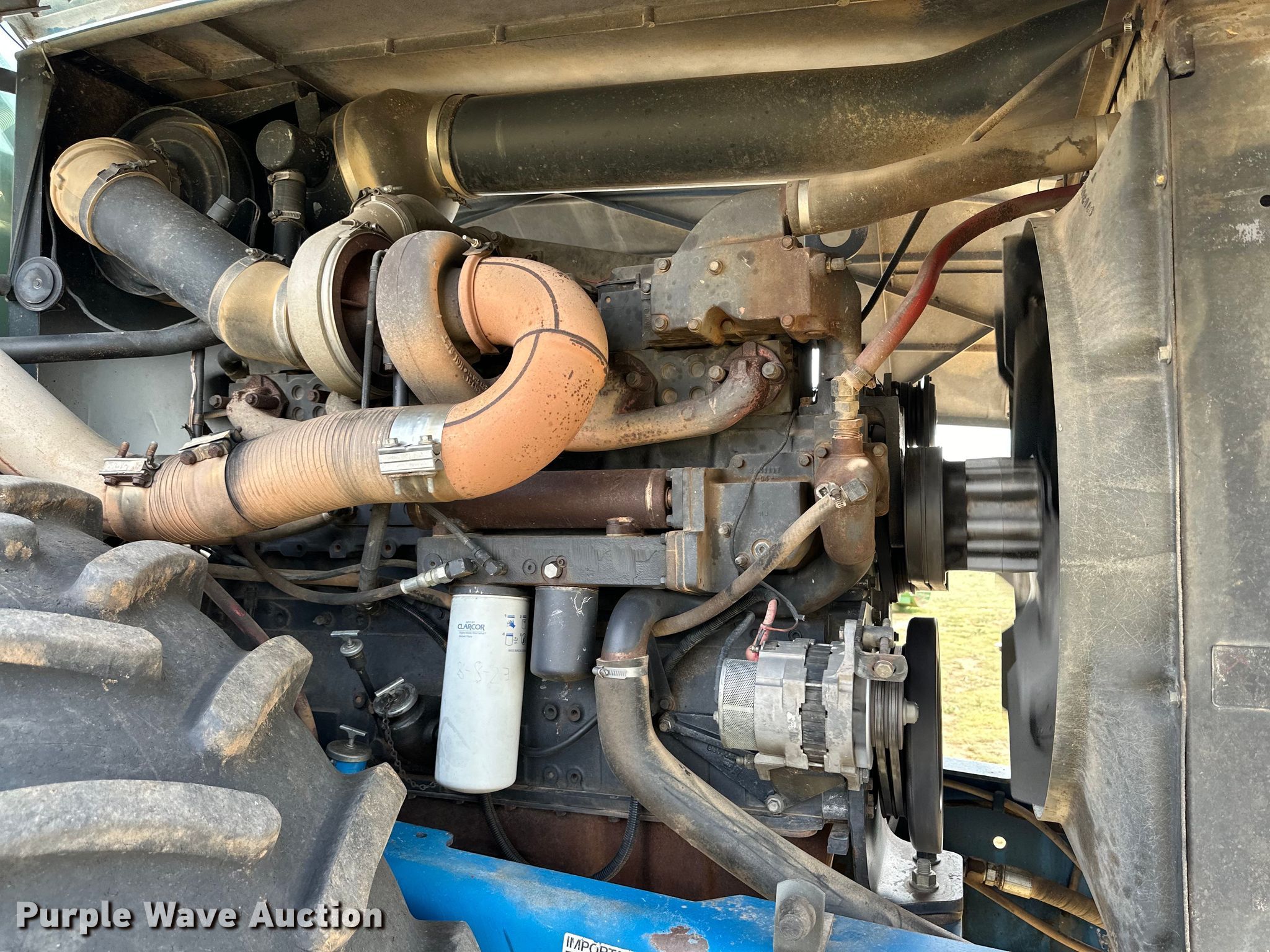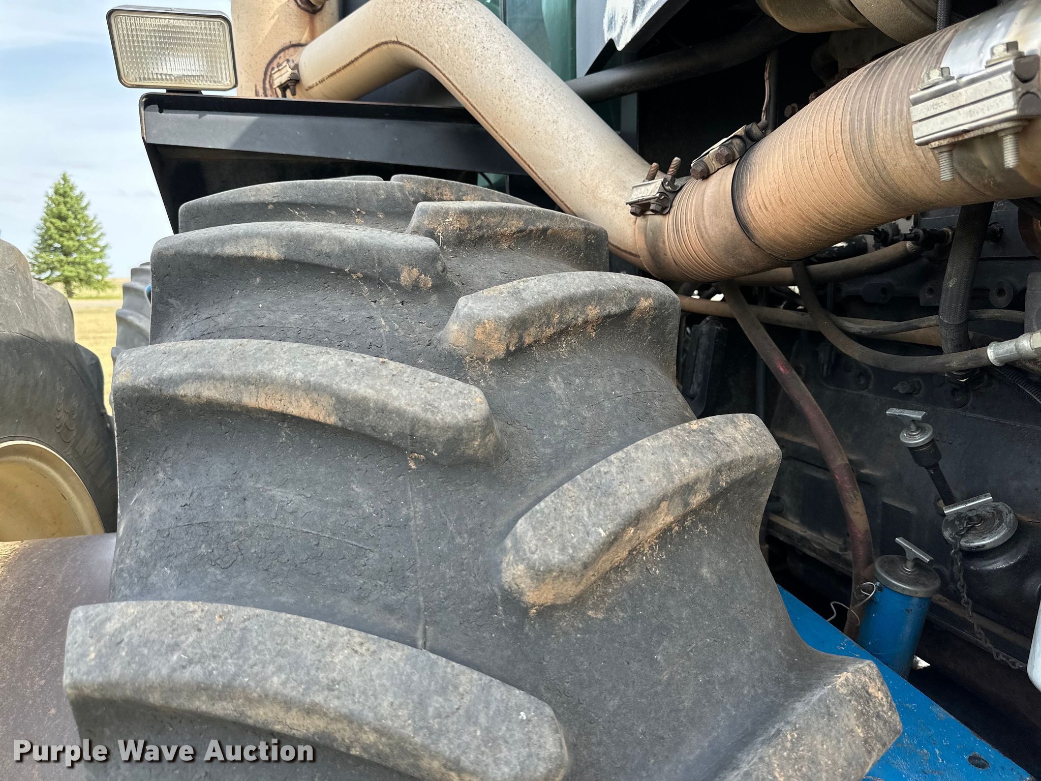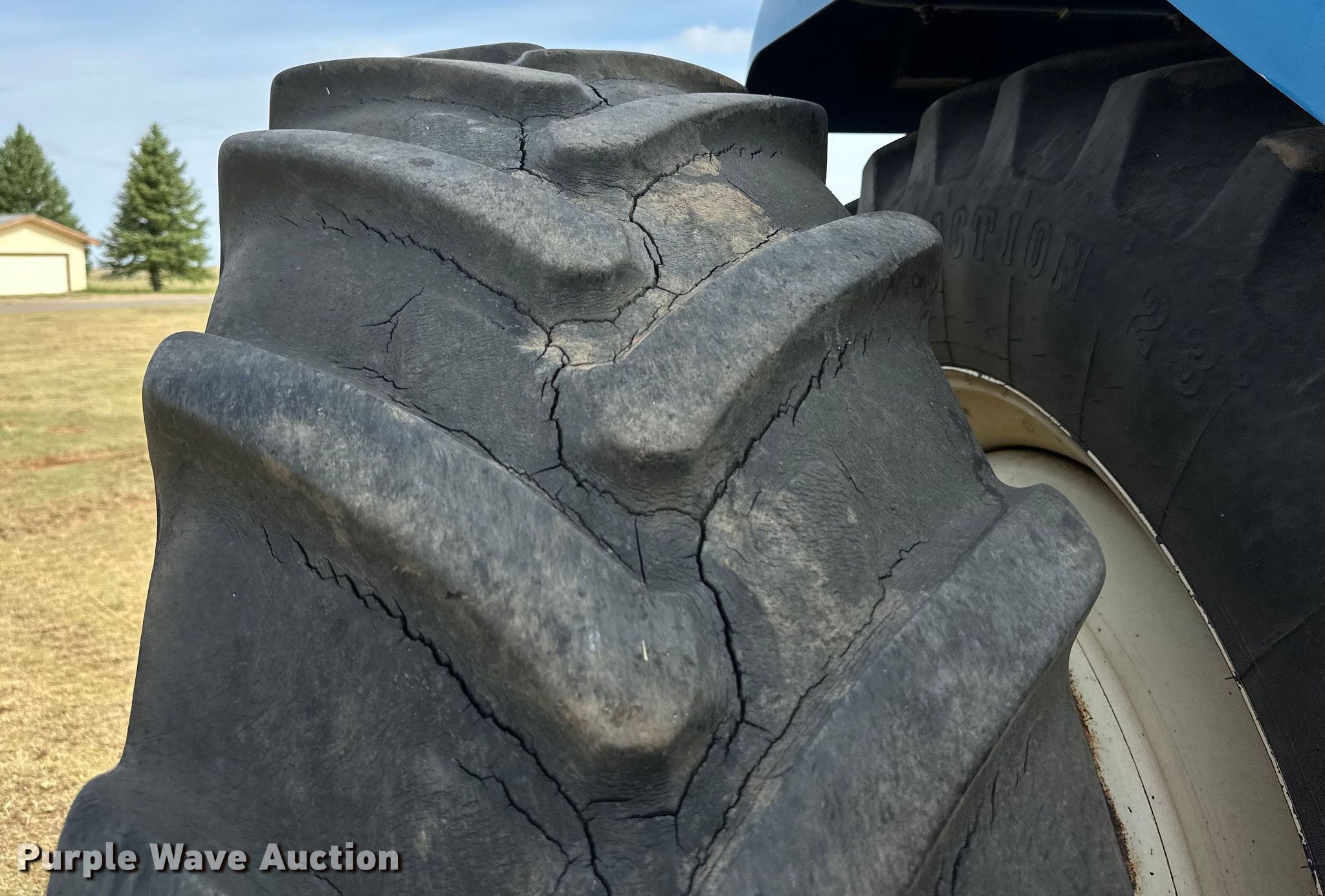 1997 New Holland 9682 4WD tractor. Hours: Unknown, Serial: D105938. Engine Cummins, Displacement: 14.0L, Cylinders: 6, Fuel type: Diesel. Transmission Synchro, 12F - 4R. Operators station AC, Heat. Features Three point Top link, Quick attach, Seven pin outlet, Hydraulic remote sets Rear: 4. Tires Size: 480/80R46, Duals. Notes Non-operational hour meter display, broken. Pursuant to New Mexico law, Purple Wave will not be collecting sales taxes on any of the purchases made in this business liquidation auction. Estate of Robert J. Podzemny. Sedan, NM 88436