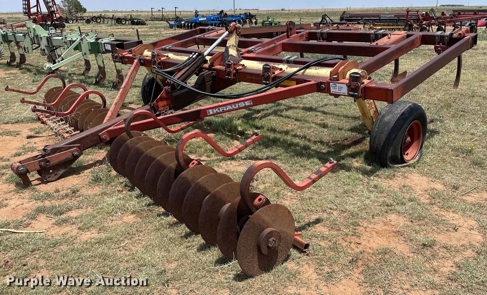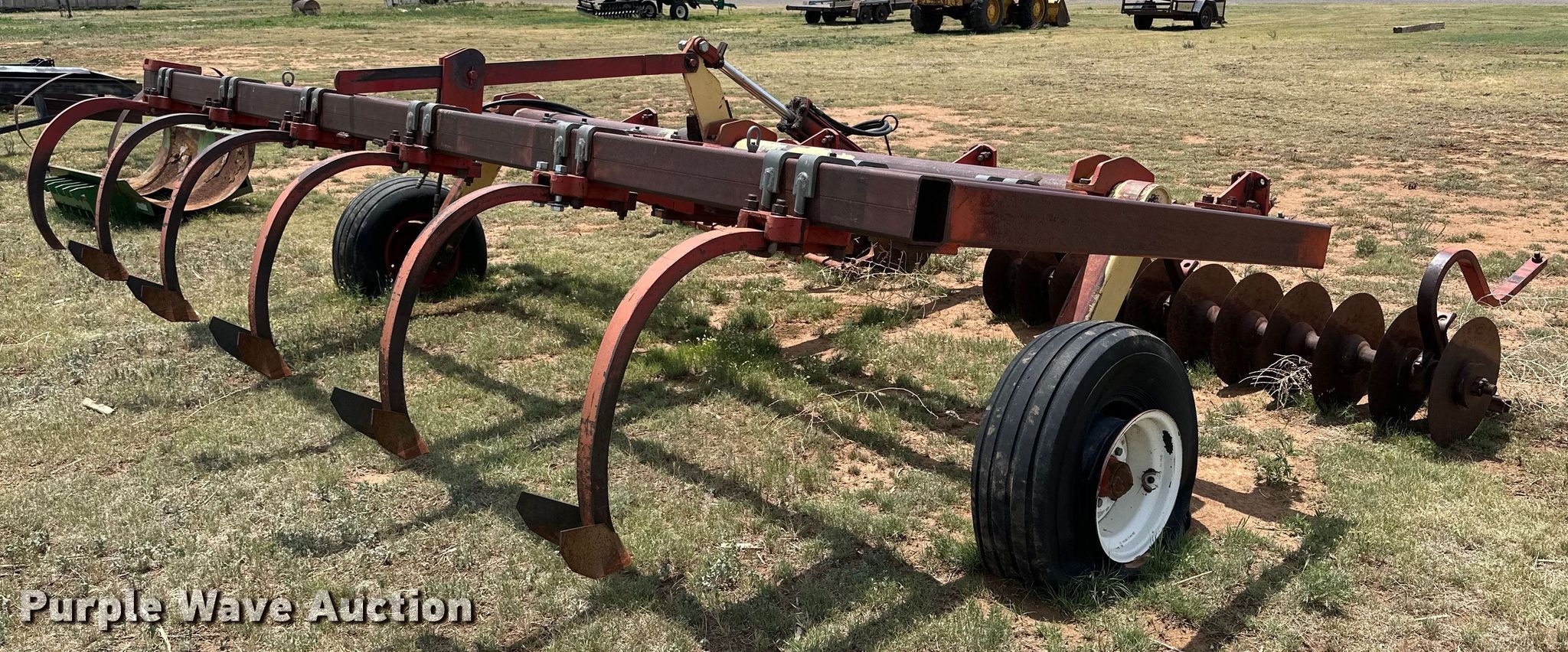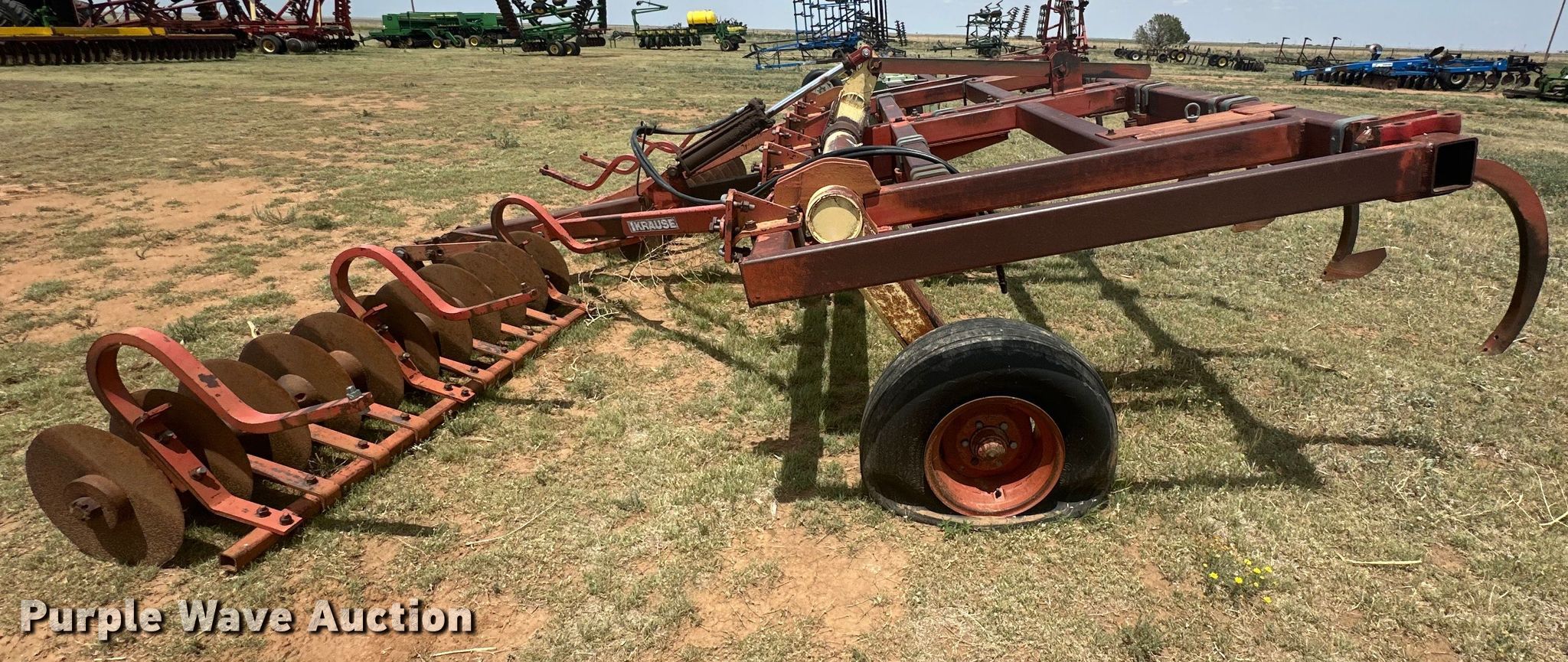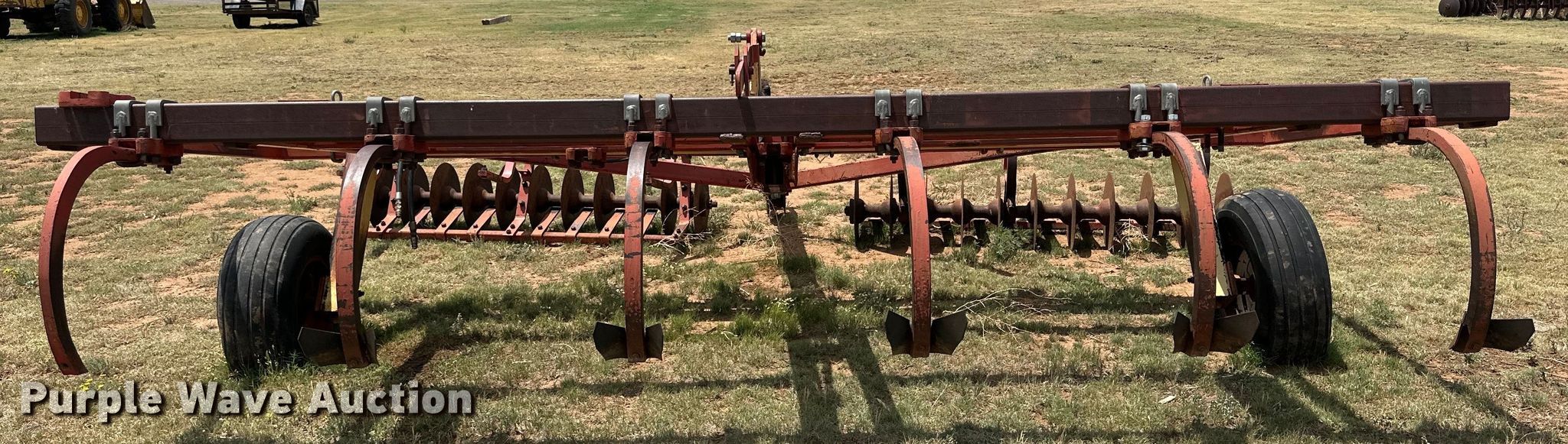 Krause 2871 field cultivator. Overall width: 15', Serial: 3618. Features Shanks: 5, Sweep width: 8", Operation Hydraulic lift, 18" disk Spacing: 8", (2) 7' bars. Tires Tire size: 12.5-15. Pursuant to New Mexico law, Purple Wave will not be collecting sales taxes on any of the purchases made in this business liquidation auction. Estate of Robert J. Podzemny. Sedan, NM 88436