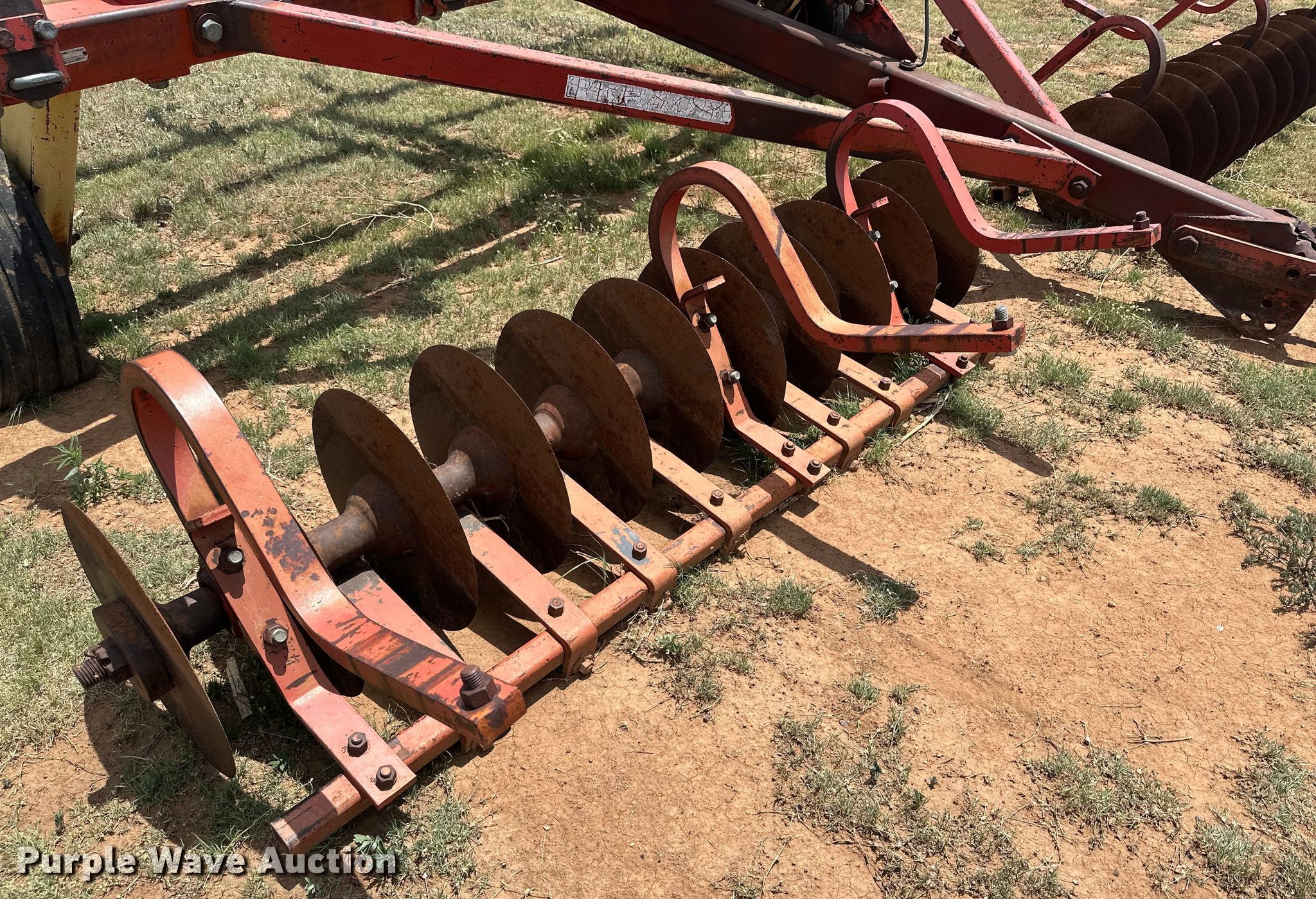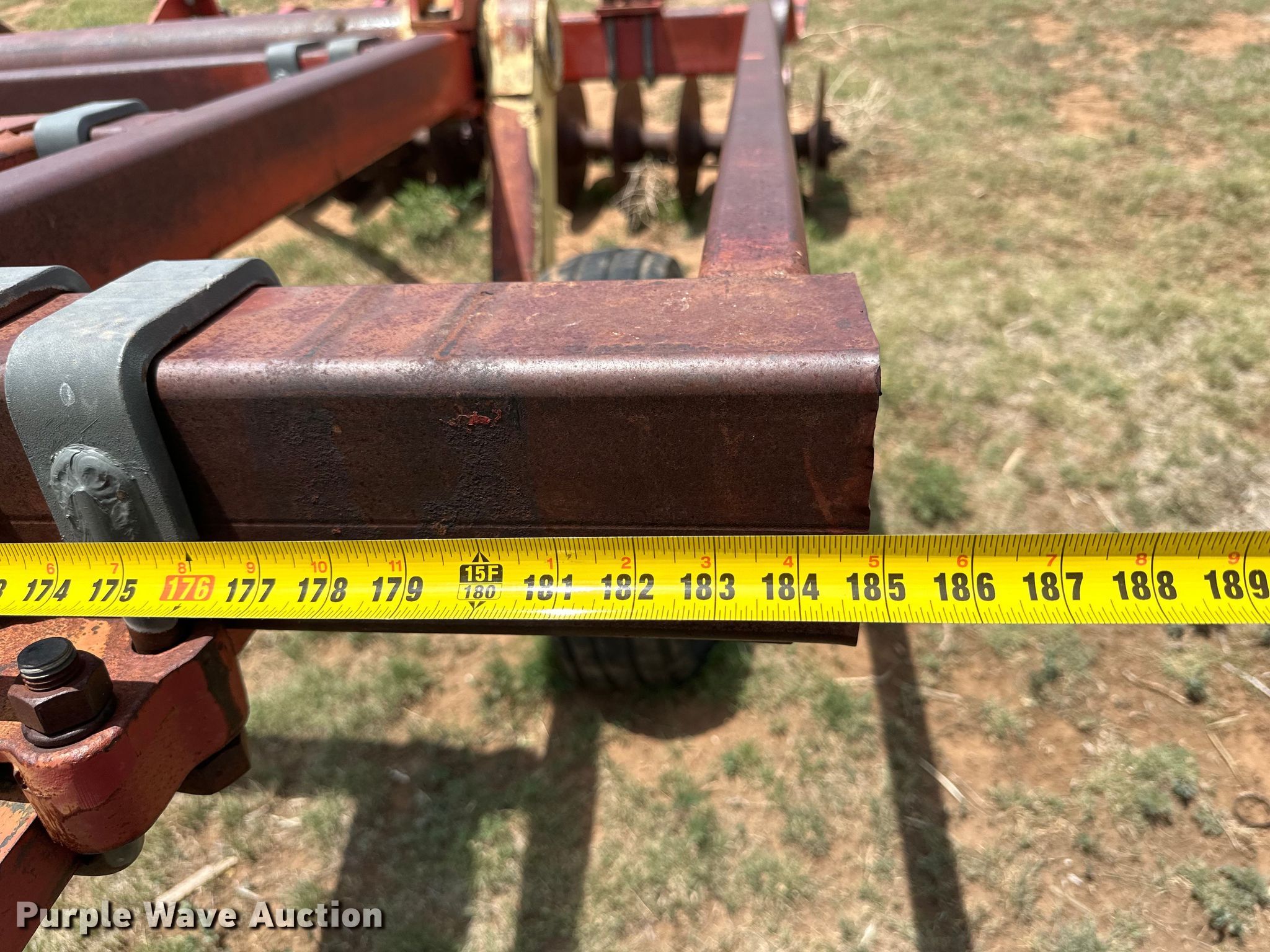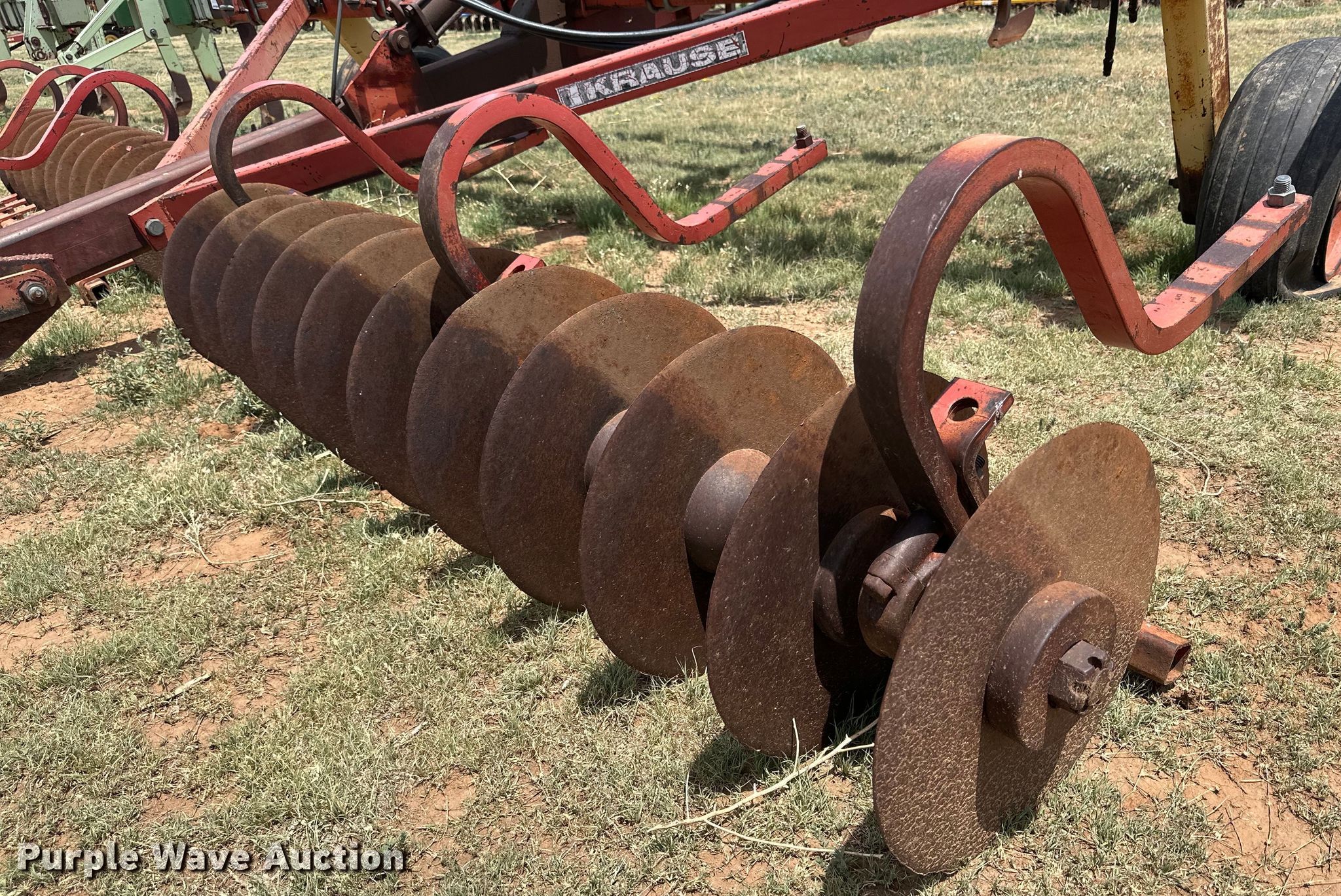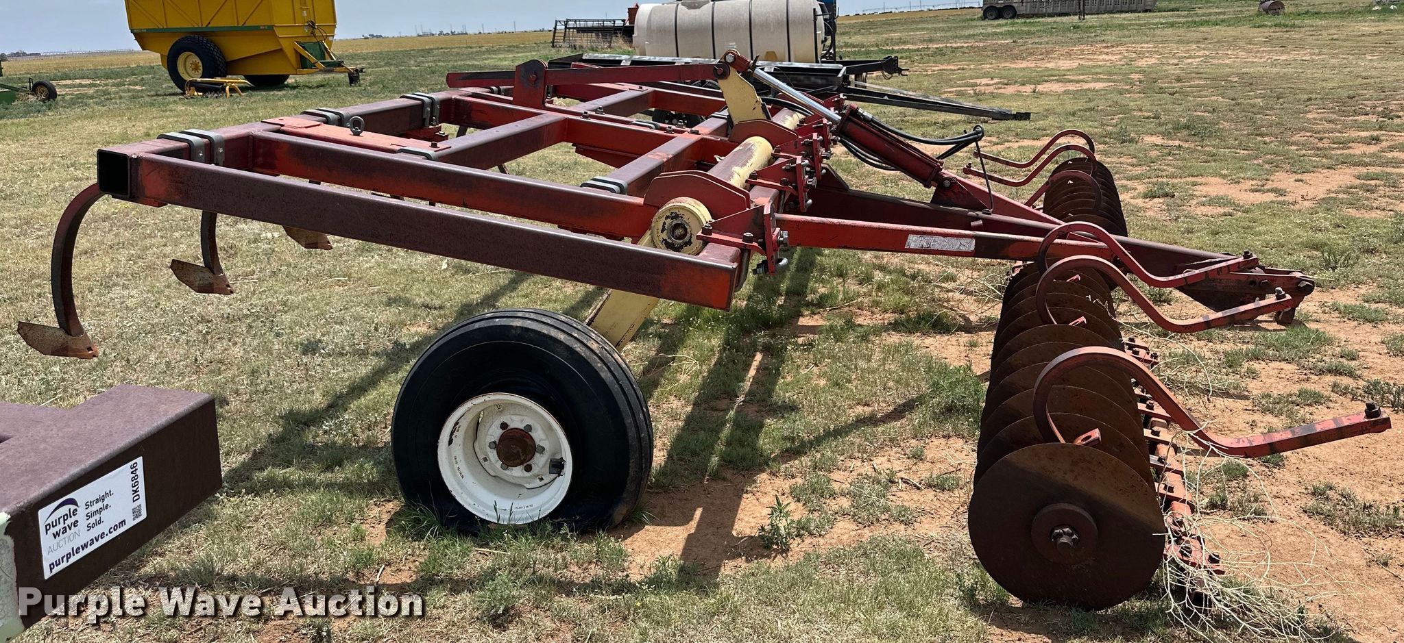 Krause 2871 field cultivator. Overall width: 15', Serial: 3618. Features Shanks: 5, Sweep width: 8", Operation Hydraulic lift, 18" disk Spacing: 8", (2) 7' bars. Tires Tire size: 12.5-15. Pursuant to New Mexico law, Purple Wave will not be collecting sales taxes on any of the purchases made in this business liquidation auction. Estate of Robert J. Podzemny. Sedan, NM 88436