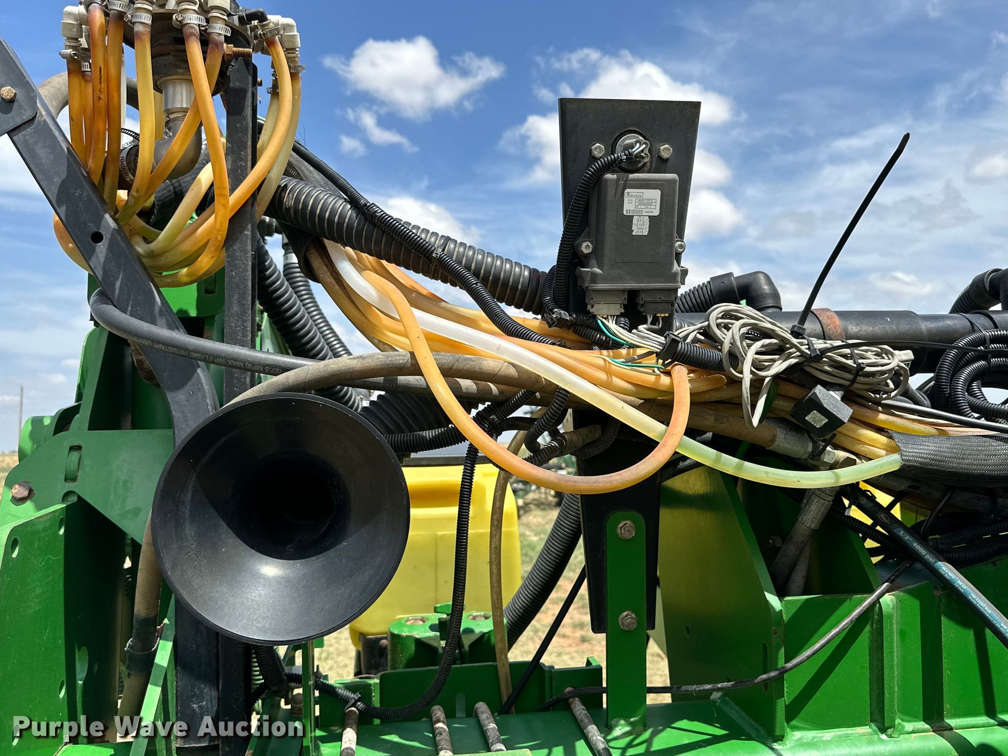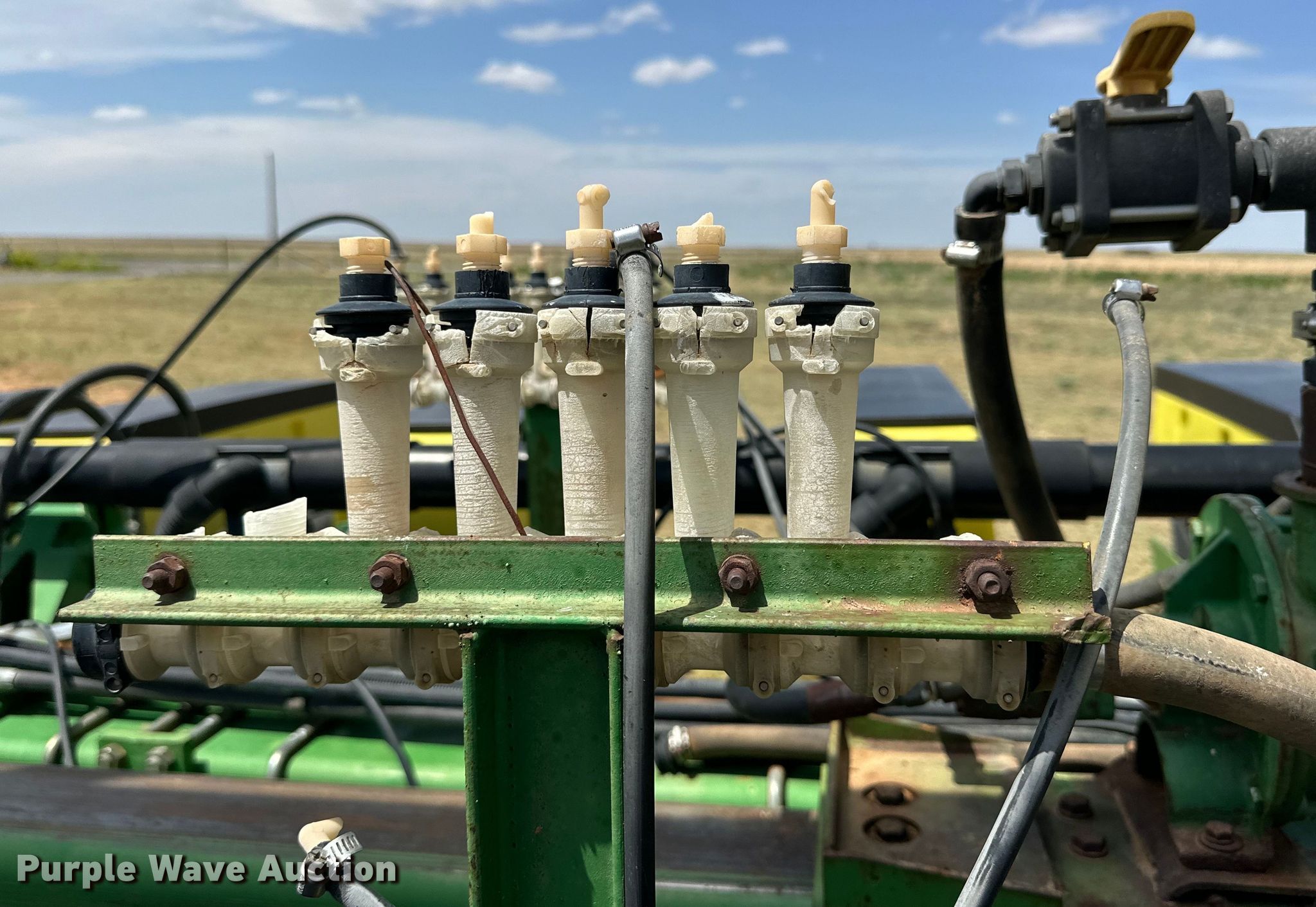 John Deere 1770NT planter. Width: 37', Row units: 16, Row spacing: 30". Features Frame Hitch: Two point, Marker arm, Hydraulic fold Pivot fold, Seed delivery Individual seed hoppers, Row units Meter drive: Ground, Down pressure: Spring, Row cleaners, No-till coulters, Disk openers: Double, Gauge wheels: Double, Closing system: Double Type: Rubber, Fertilizer/ insecticide Fertilizer Liquid capacity: 600 gallons, Application method: Coulter, Coulter type: Off-set, Pump: Piston. Tires Transport tire size: 10.00-15 Quantity: 8. Pursuant to New Mexico law, Purple Wave will not be collecting sales taxes on any of the purchases made in this business liquidation auction. Estate of Robert J. Podzemny. Sedan, NM 88436