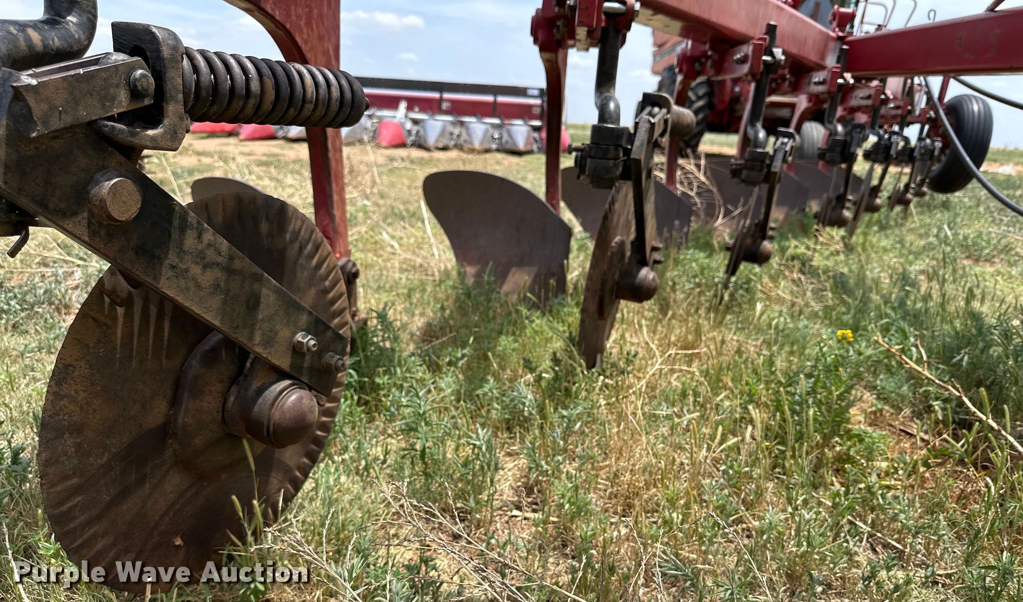 Purple Wave is selling a used Plow in New Mexico. This item is a Case IH 720 seven bottom plow with the following: 18" coulters, Hydraulic lift, Hitch: Three point