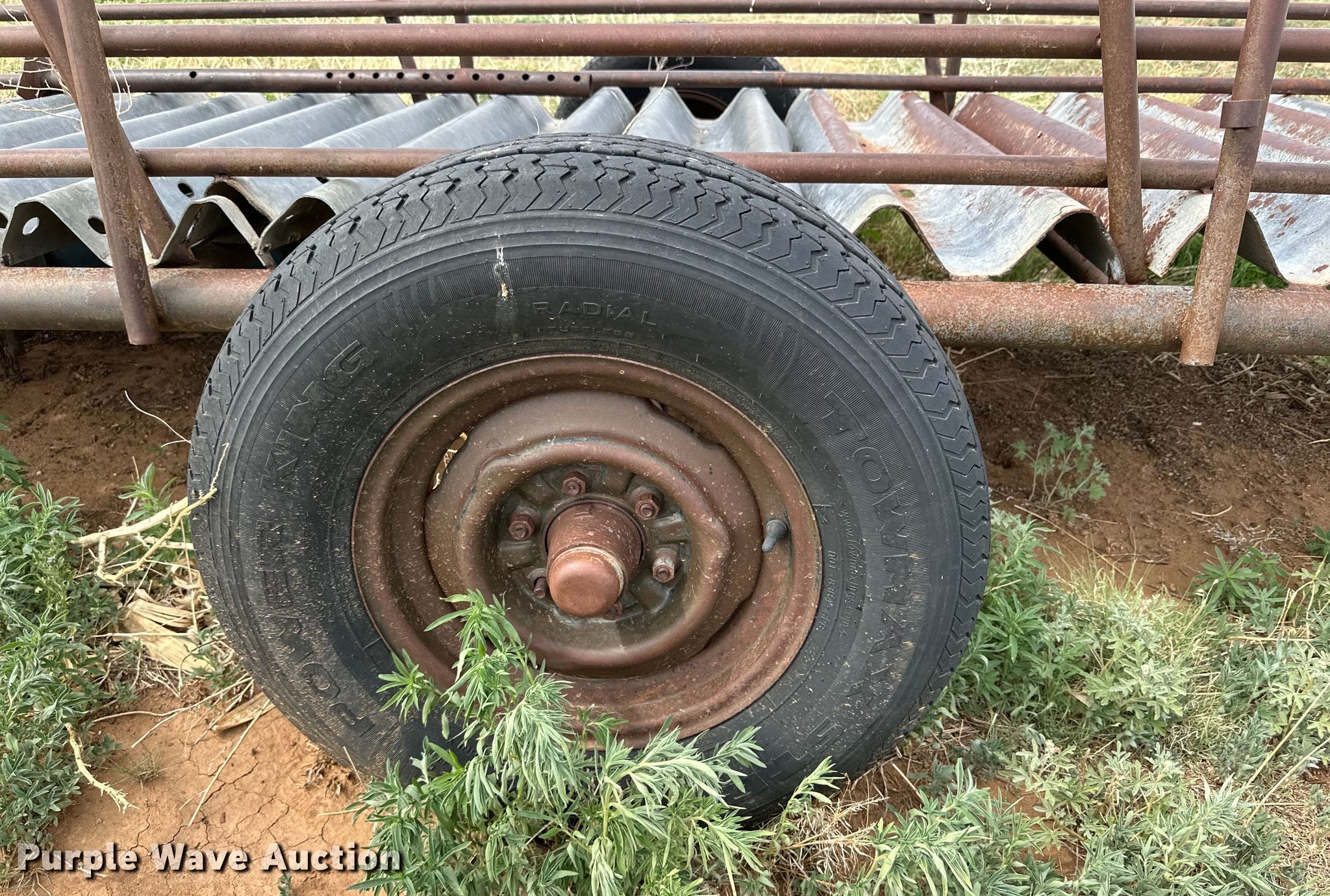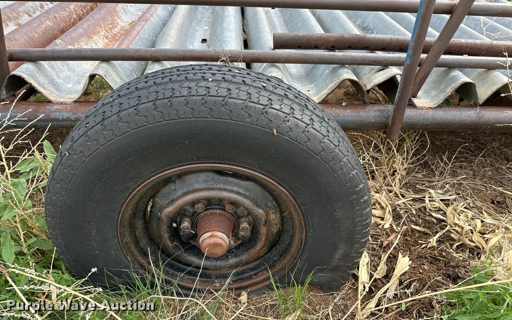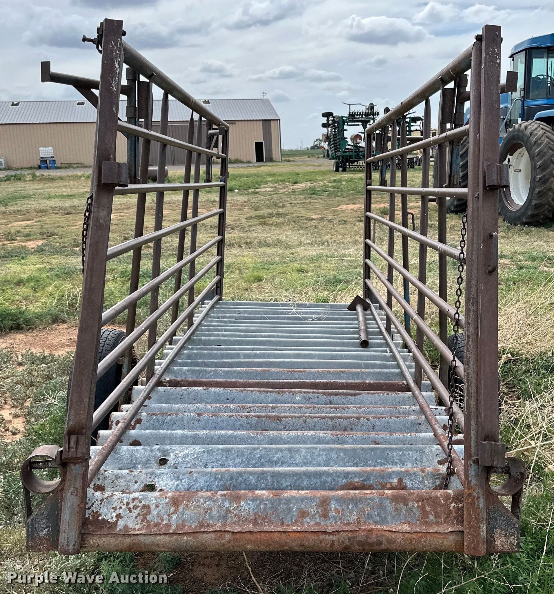 Shop Built loading chute. Dimensions. Chute: 12' L x 42" W, Overall: 16' L x 82" W. Tires Size: 225/75R15. Pursuant to New Mexico law, Purple Wave will not be collecting sales taxes on any of the purchases made in this business liquidation auction. Transfer of ownership documentation will be a bill of sale. Estate of Robert J. Podzemny. Sedan, NM 88436