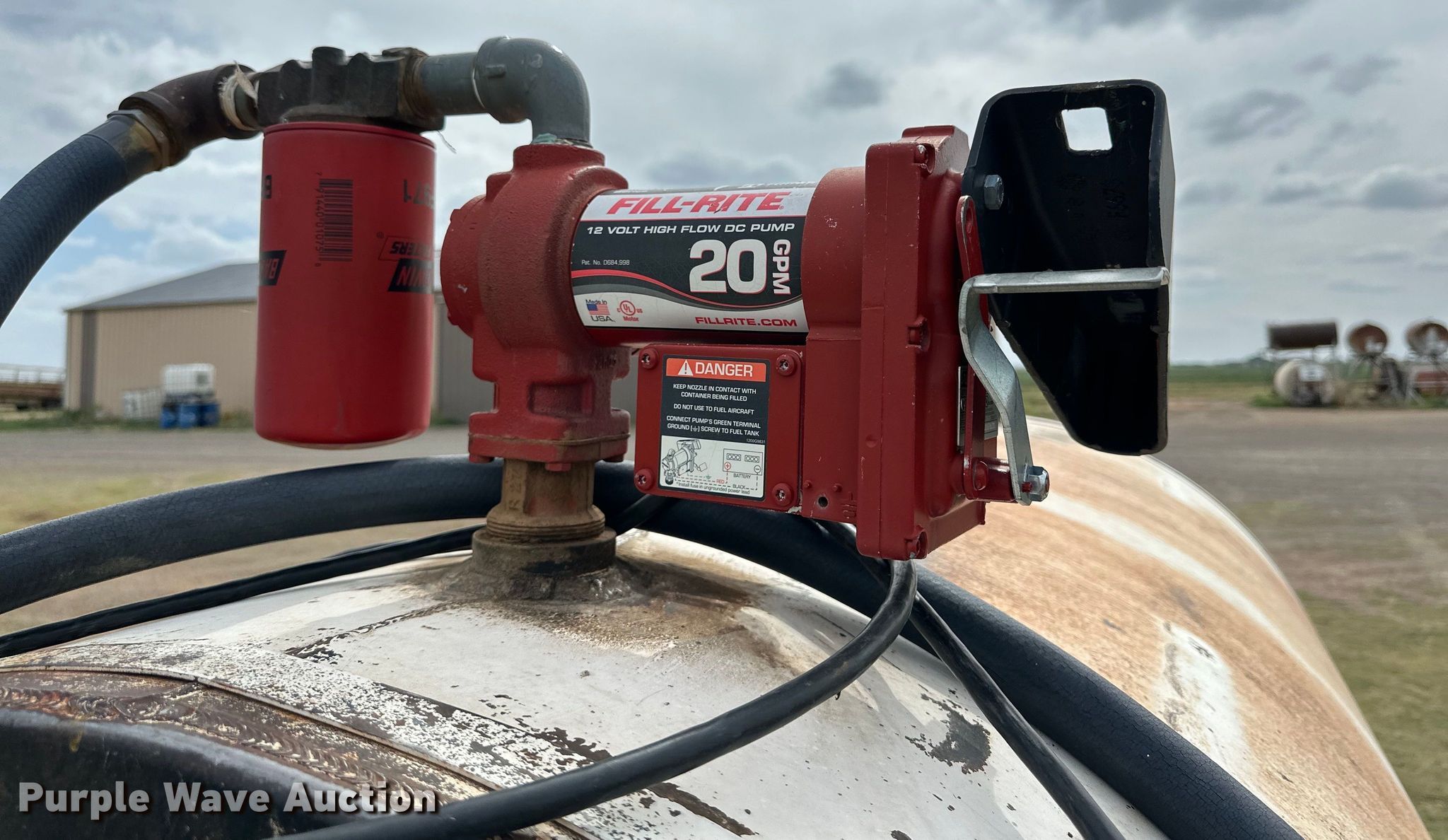 Diesel tank trailer. Dimensions. Overall: 12' L x 6' W. Features Tank type: Steel, Pump Fill-Rite. Chassis Ball hitch: 2", Landing gear: Single, Suspension: Spring, Axles: Tandem. Tires Steel wheels, Size: 235/75R15. Pursuant to New Mexico law, Purple Wave will not be collecting sales taxes on any of the purchases made in this business liquidation auction. Transfer of ownership documentation will be a bill of sale. Estate of Robert J. Podzemny. Sedan, NM 88436